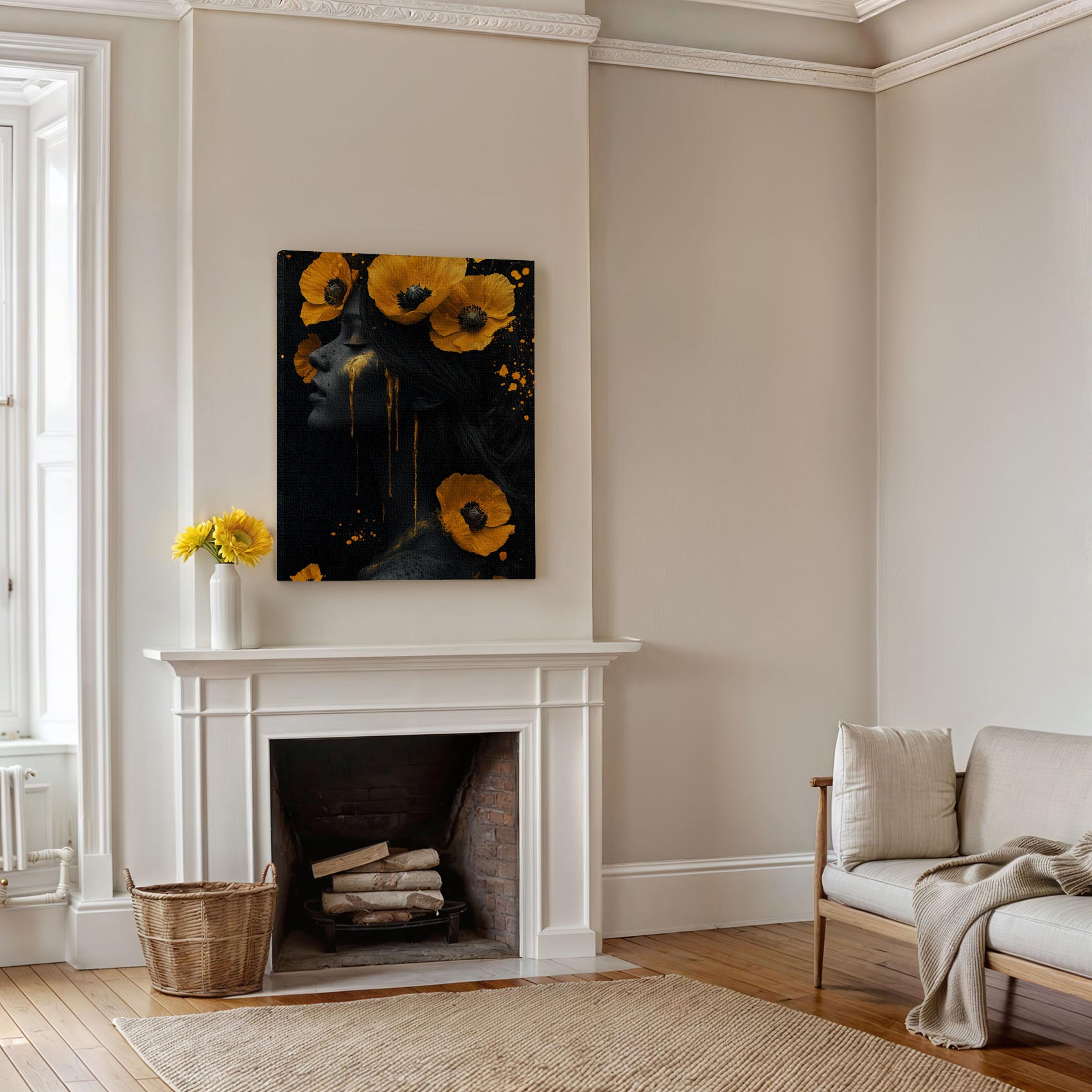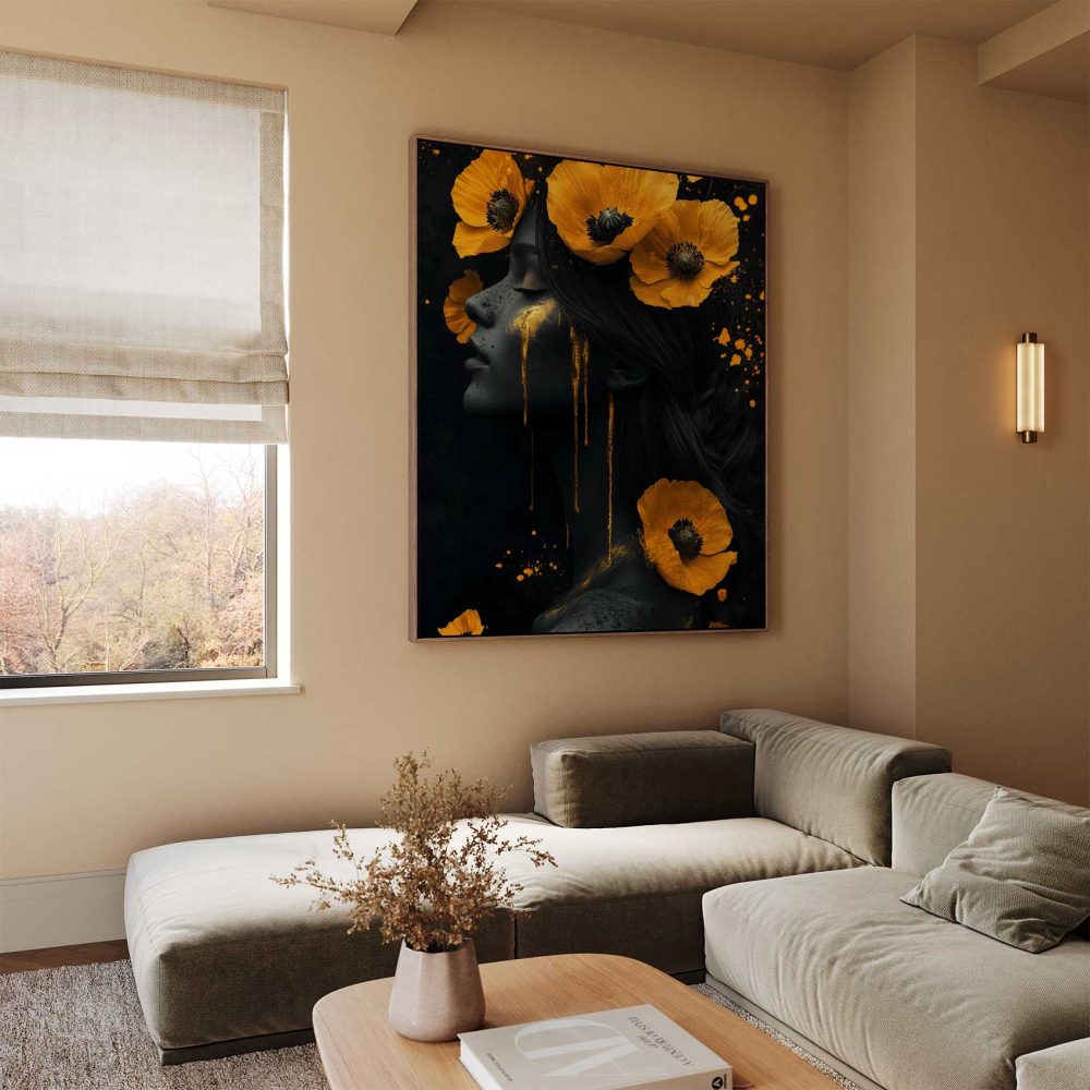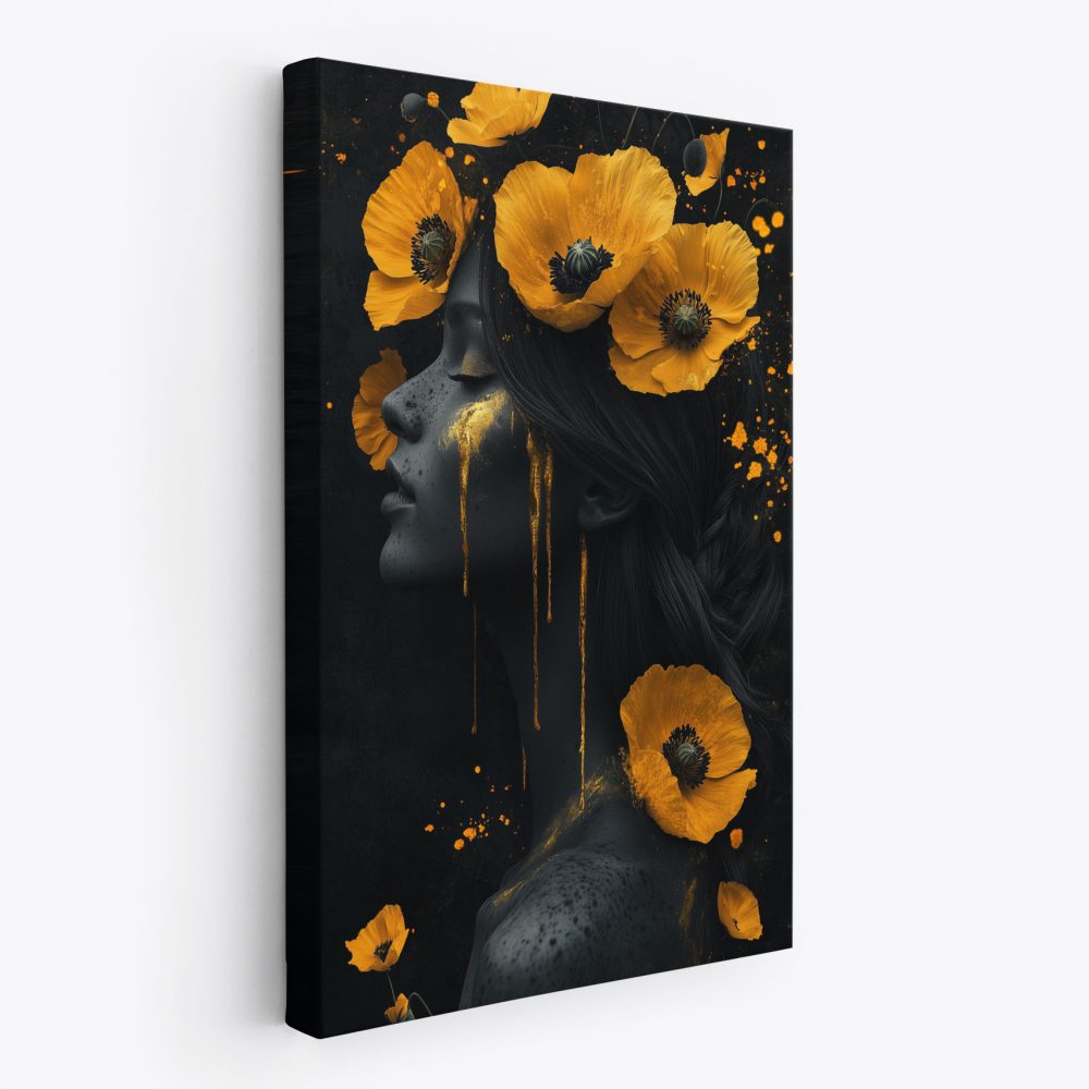 Terug naar collectie / Schilderijen / Bloemen Schilderij / Vrouw met gele bloemen hoofdband