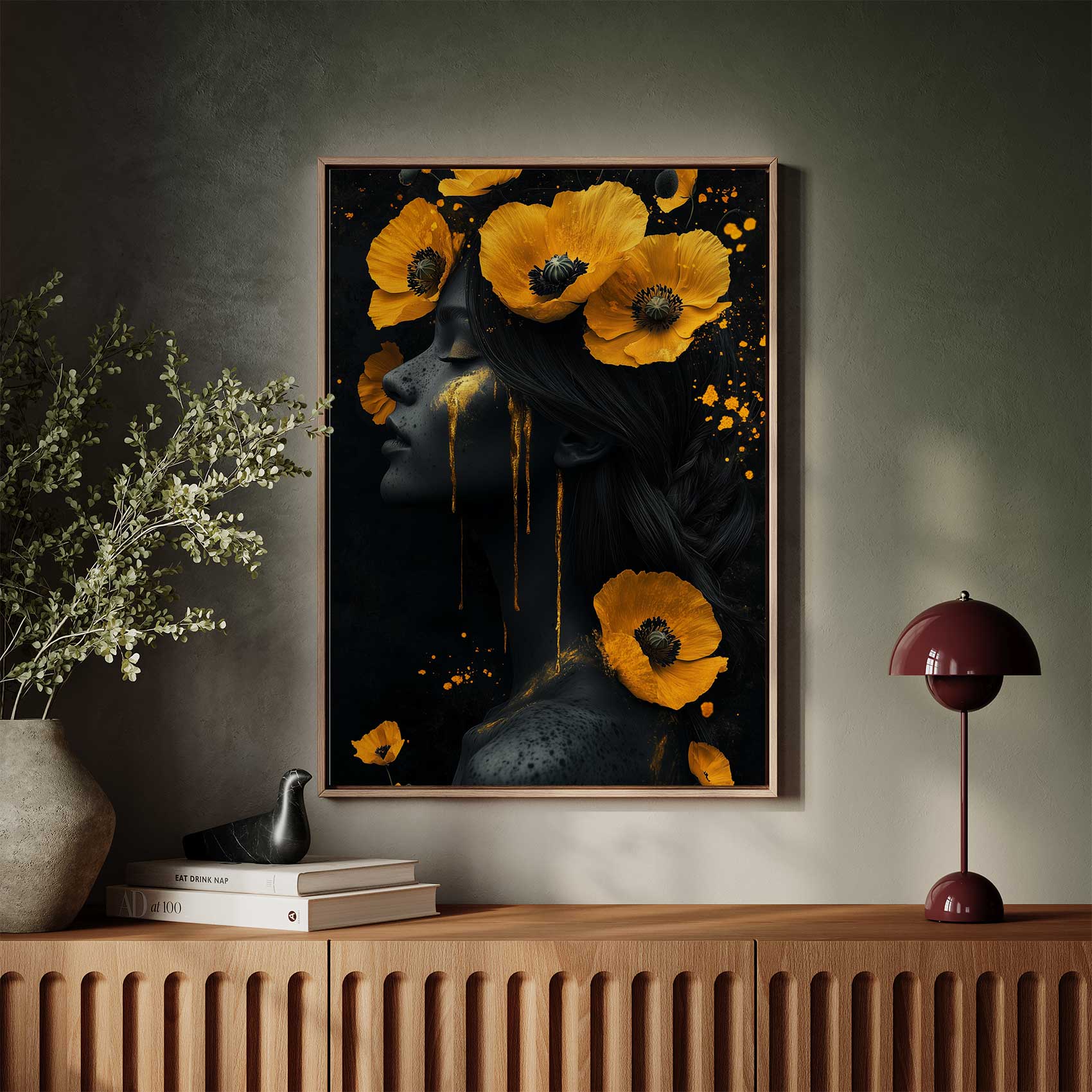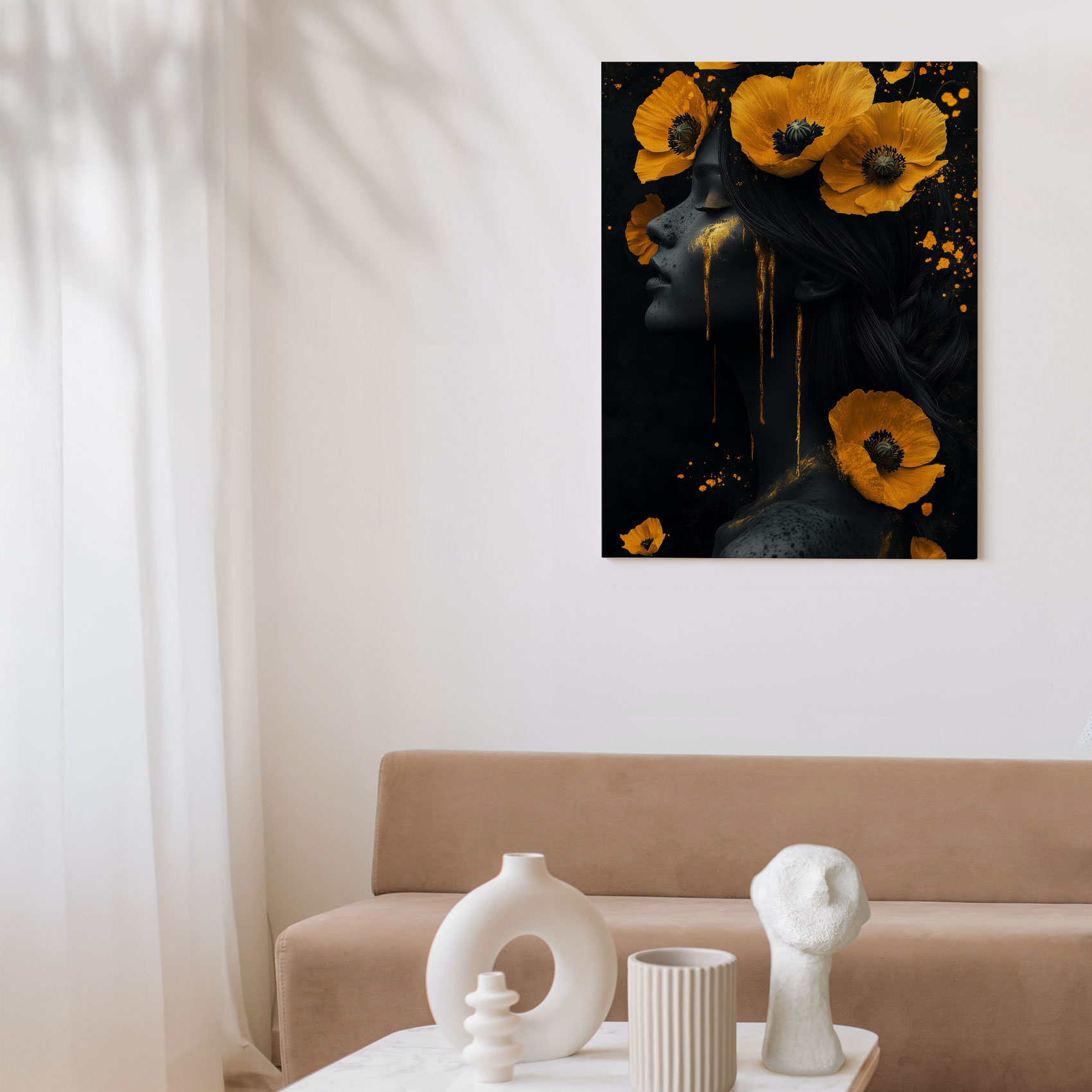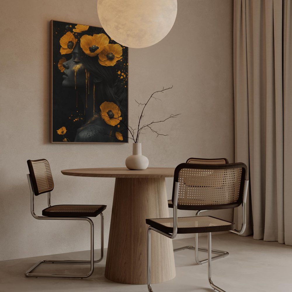Terug naar collectie / Schilderijen / Bloemen Schilderij / Vrouw met gele bloemen hoofdband