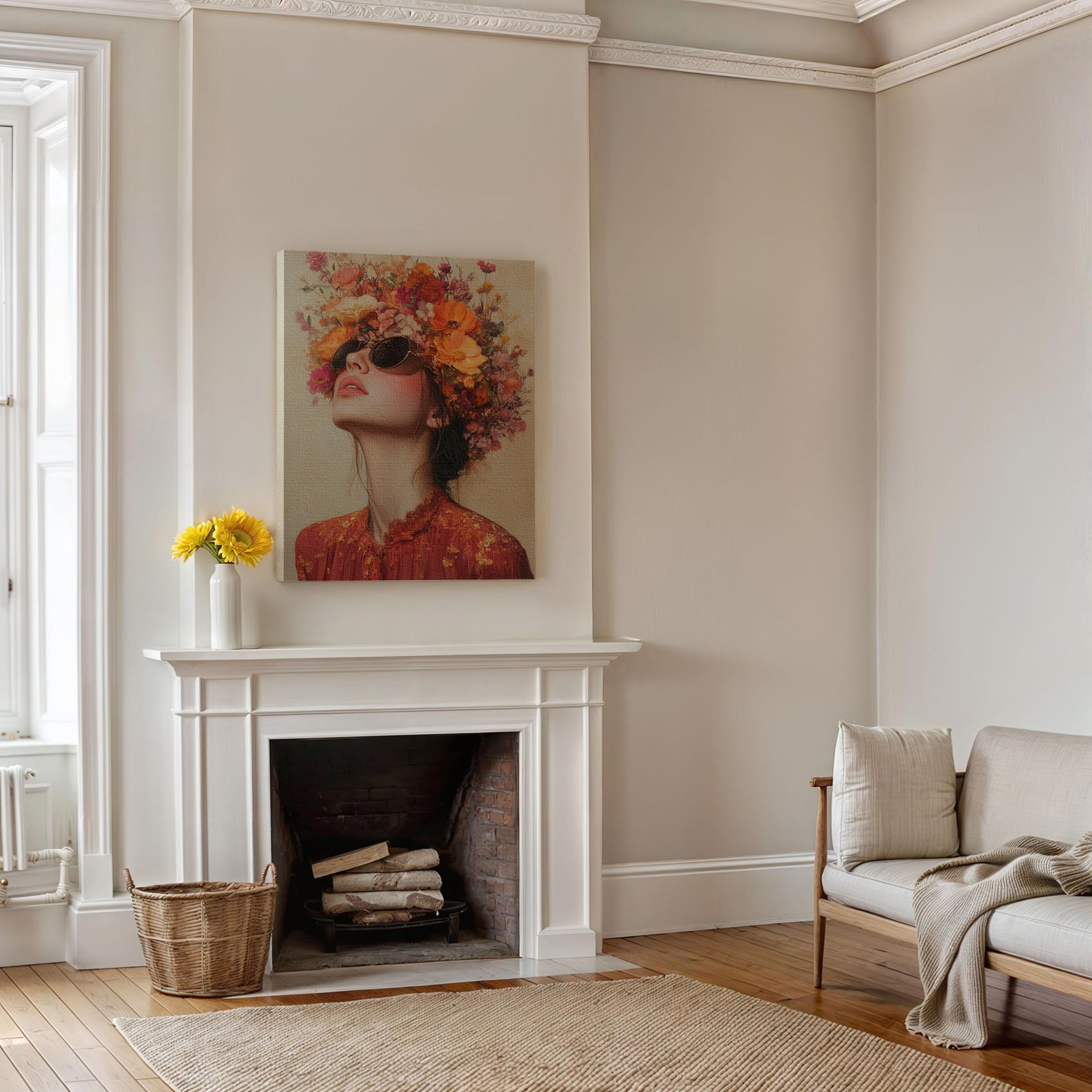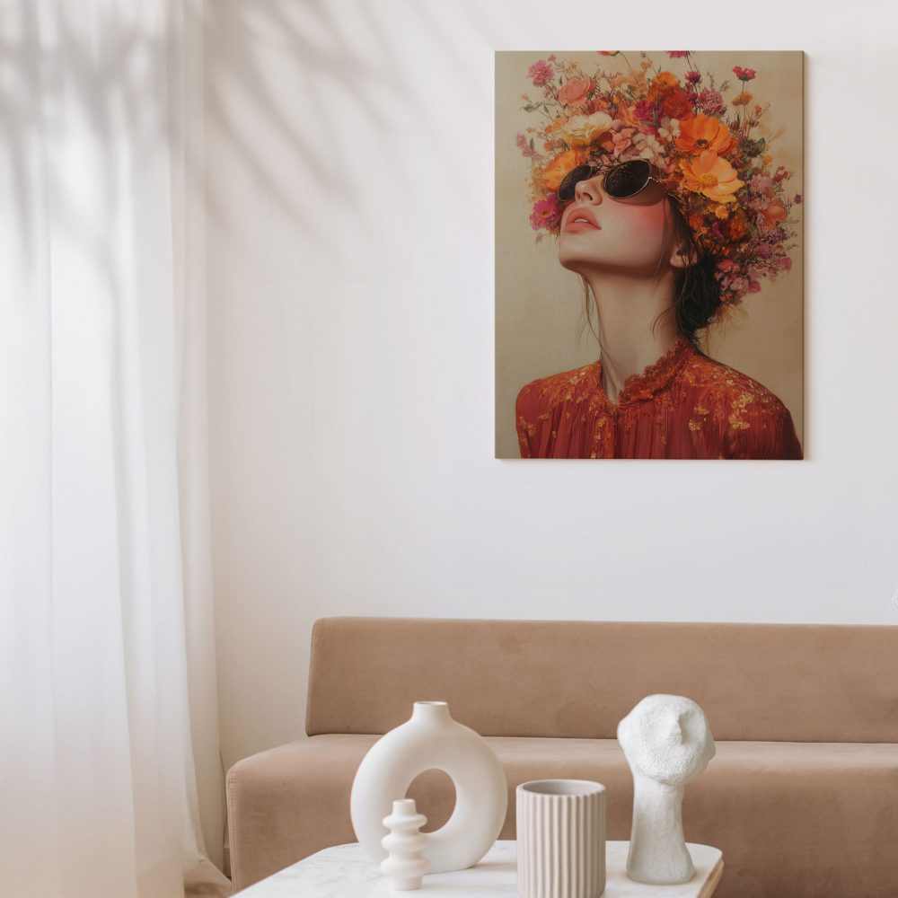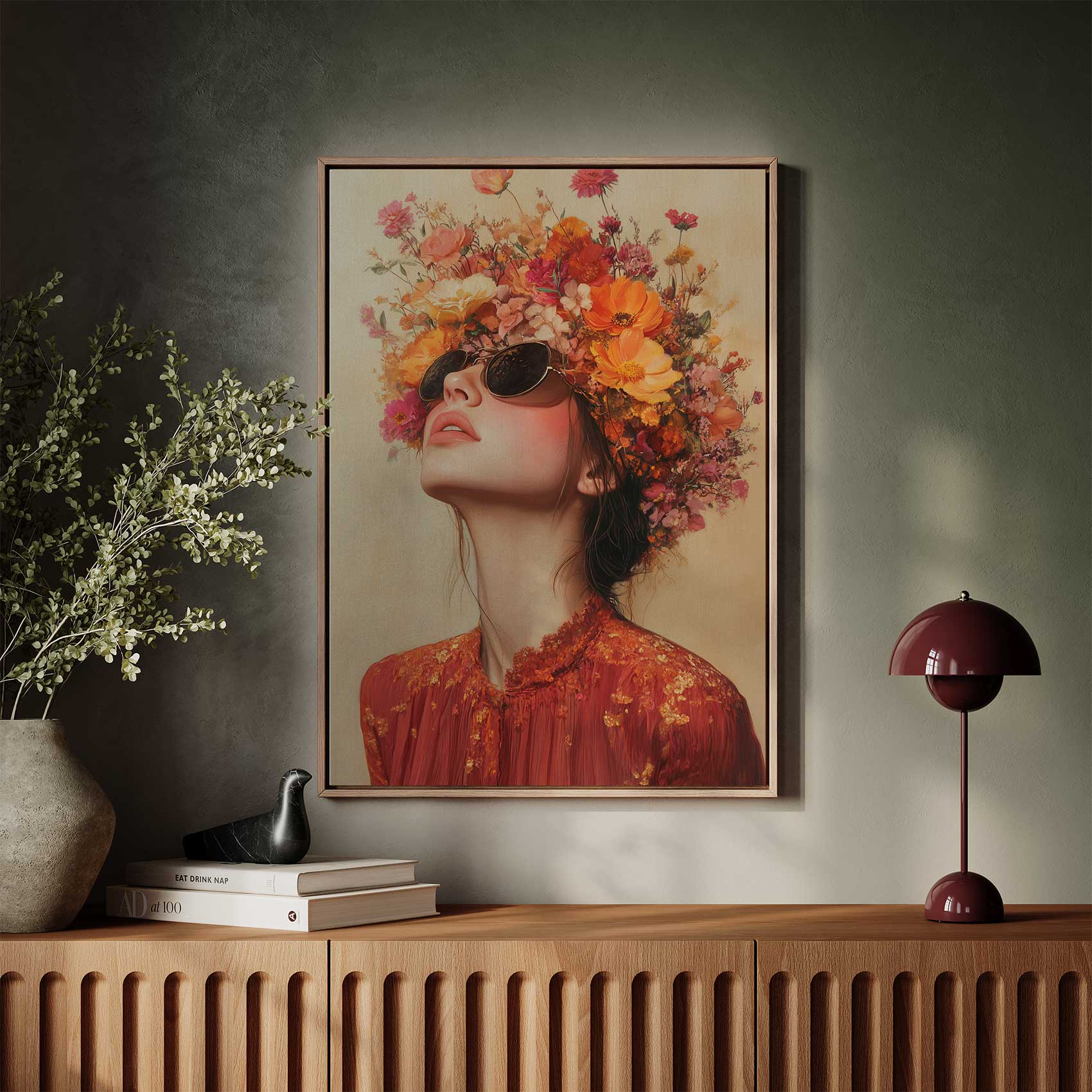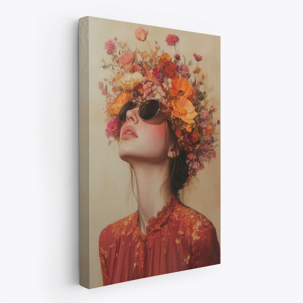 Terug naar collectie / Schilderijen / Bloemen Schilderij / Vrouw met kleurrijke bloemenkroon