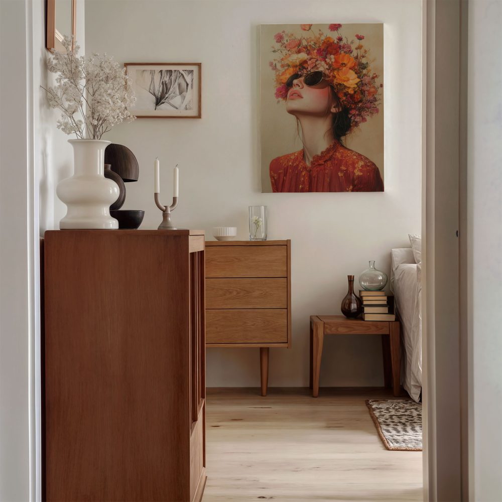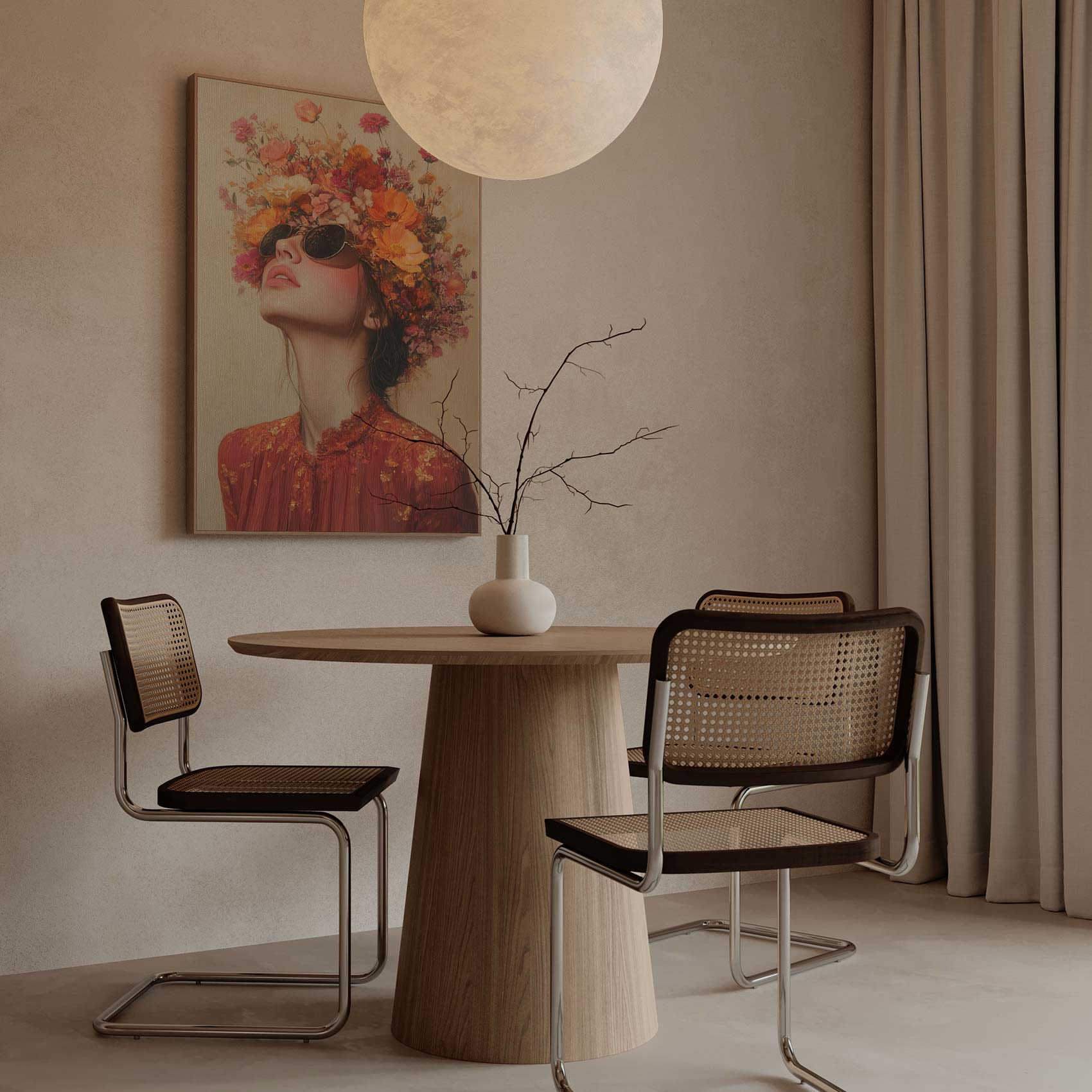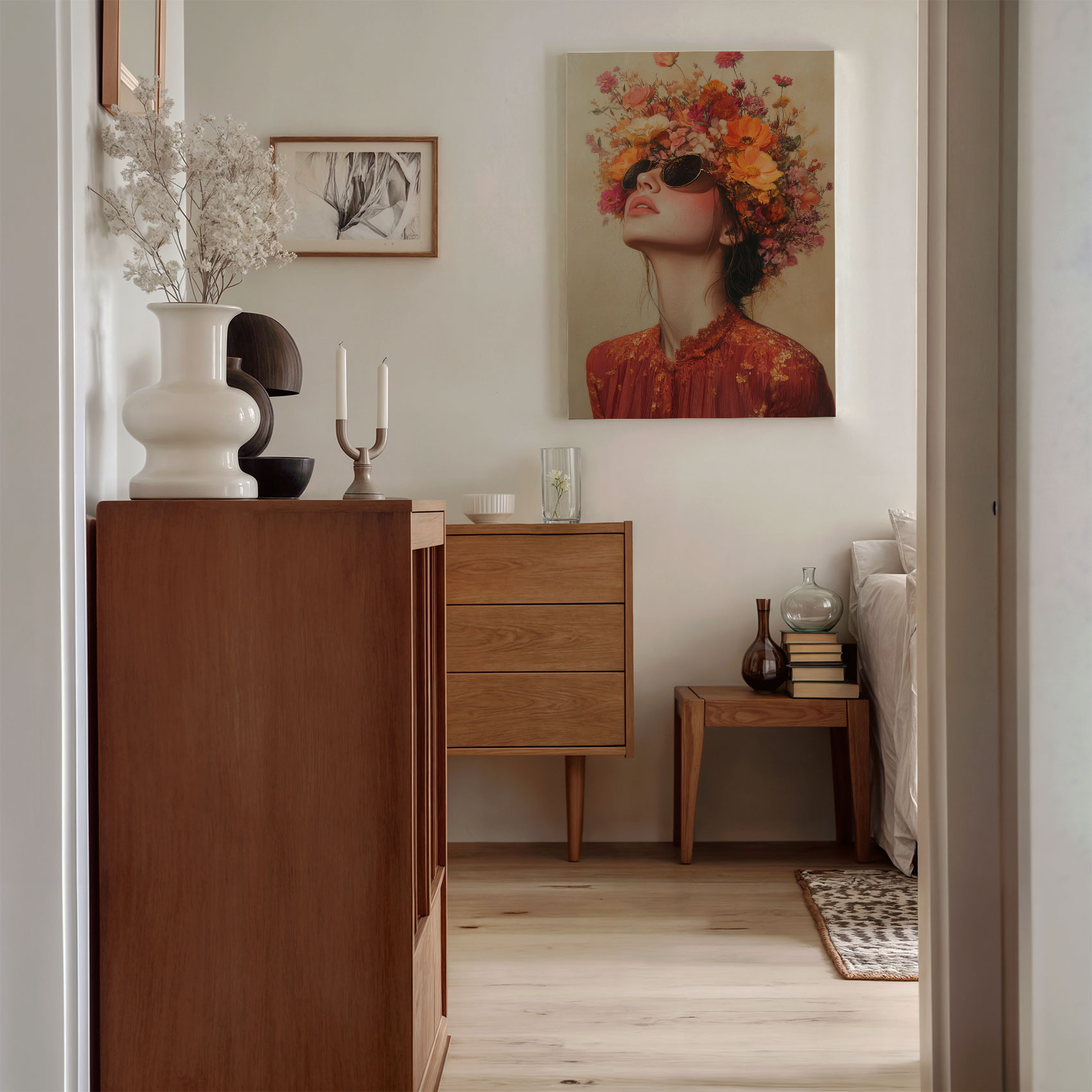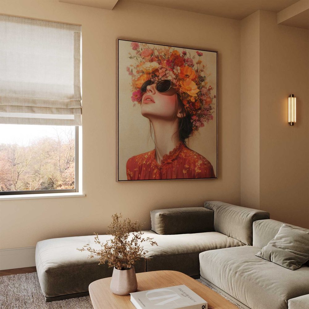 Terug naar collectie / Schilderijen / Bloemen Schilderij / Vrouw met kleurrijke bloemenkroon