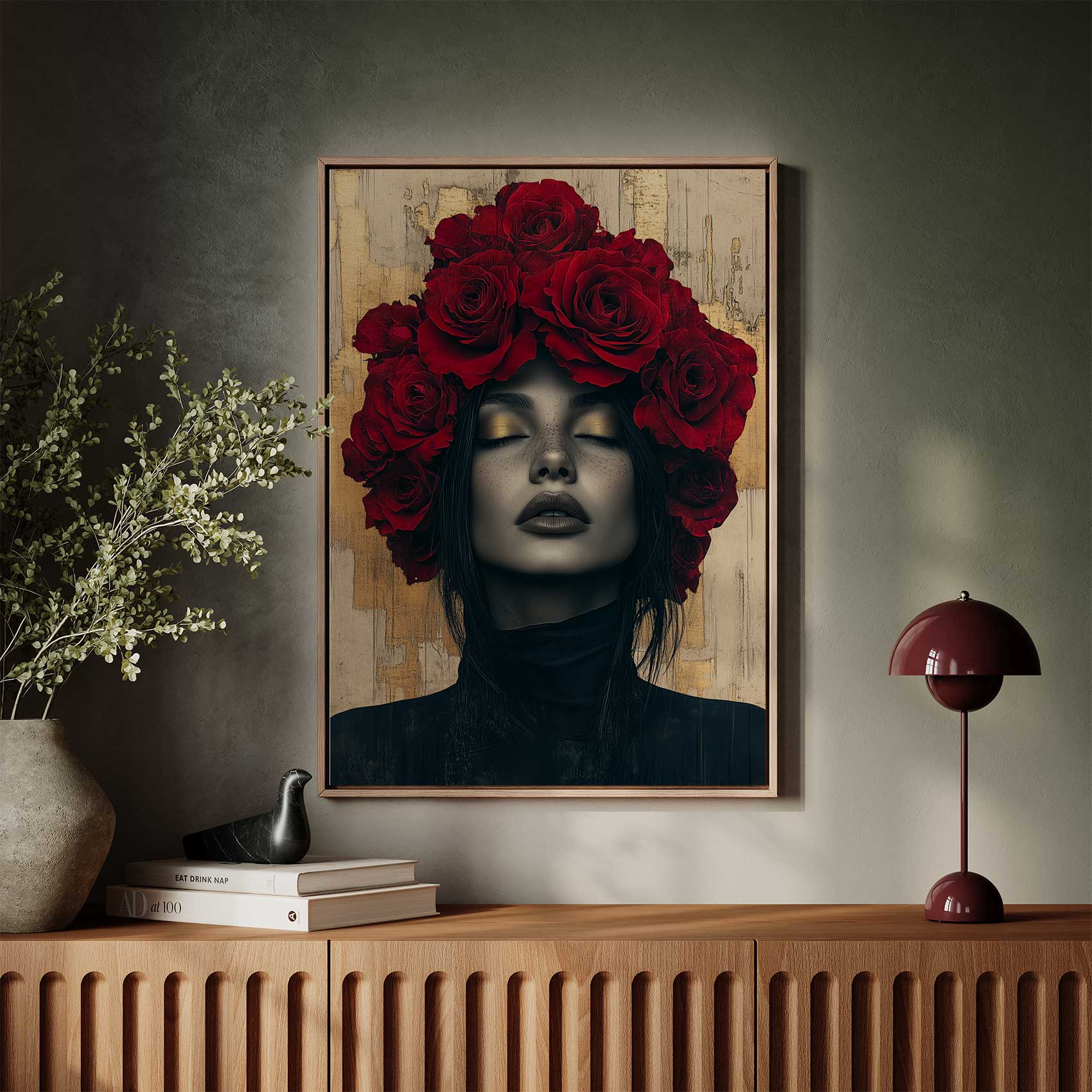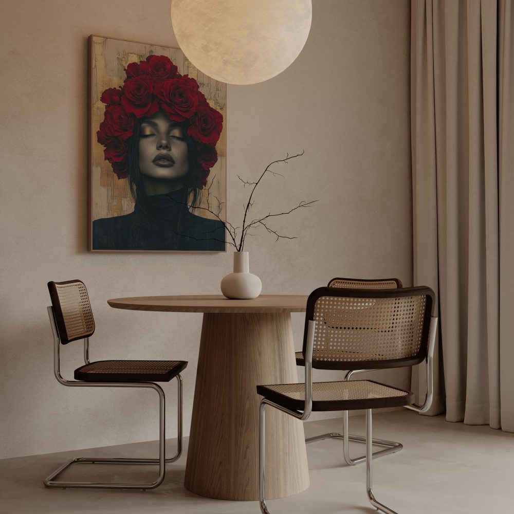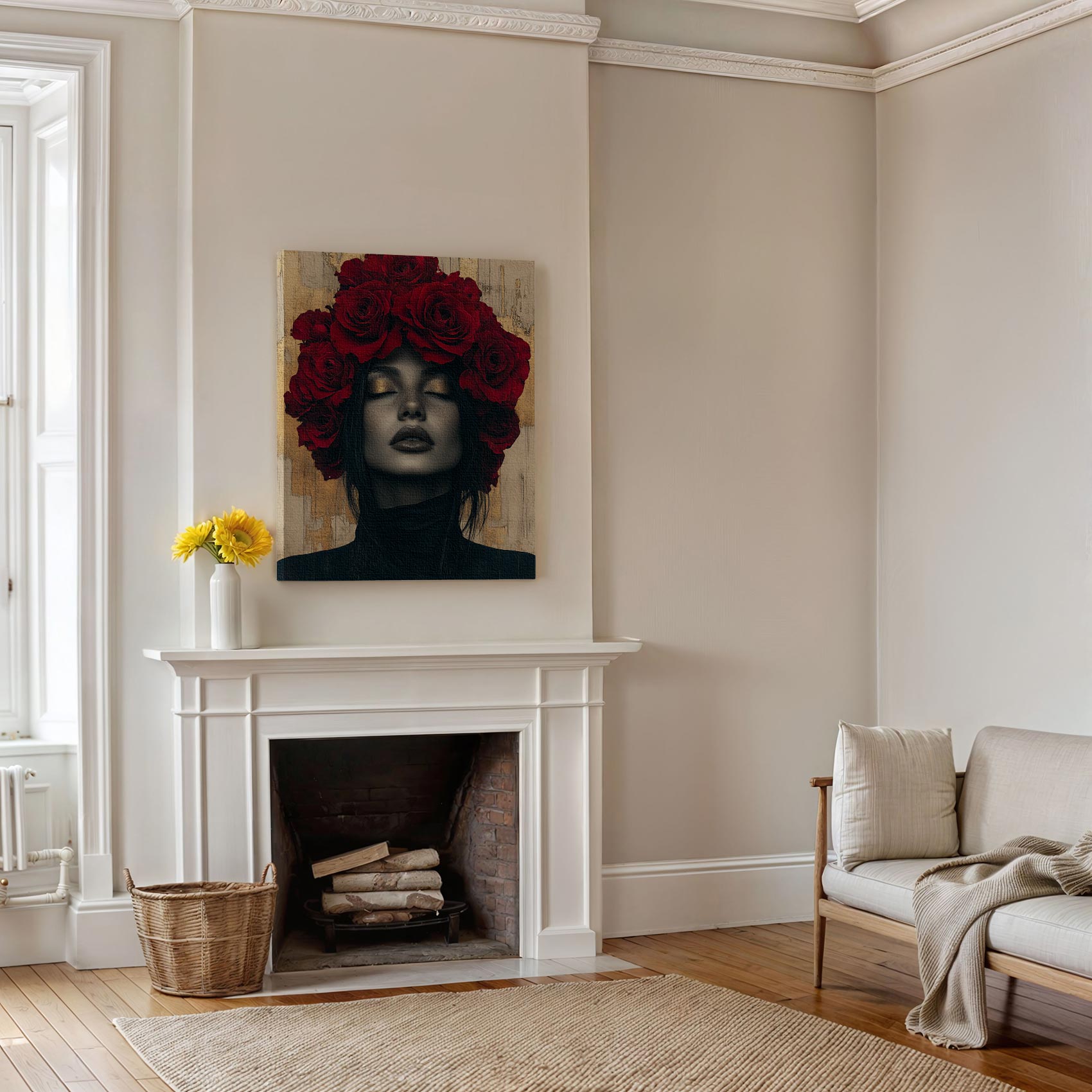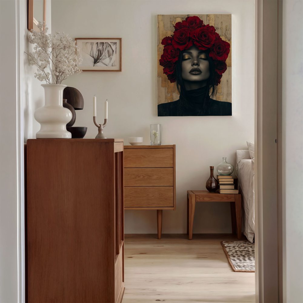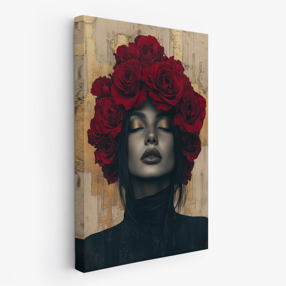 Terug naar collectie / Schilderijen / Bloemen Schilderij / Vrouw met rozen hoofdtooi