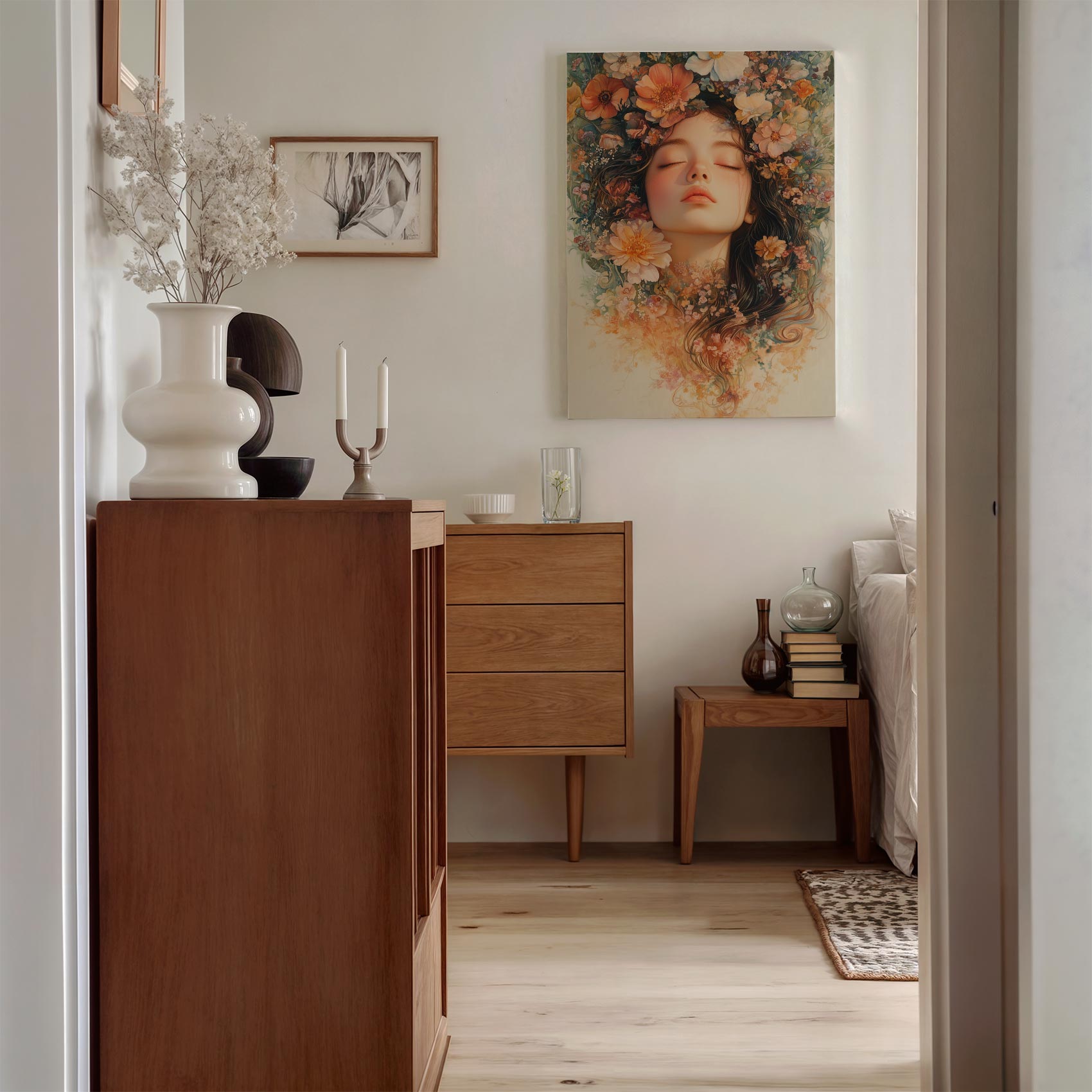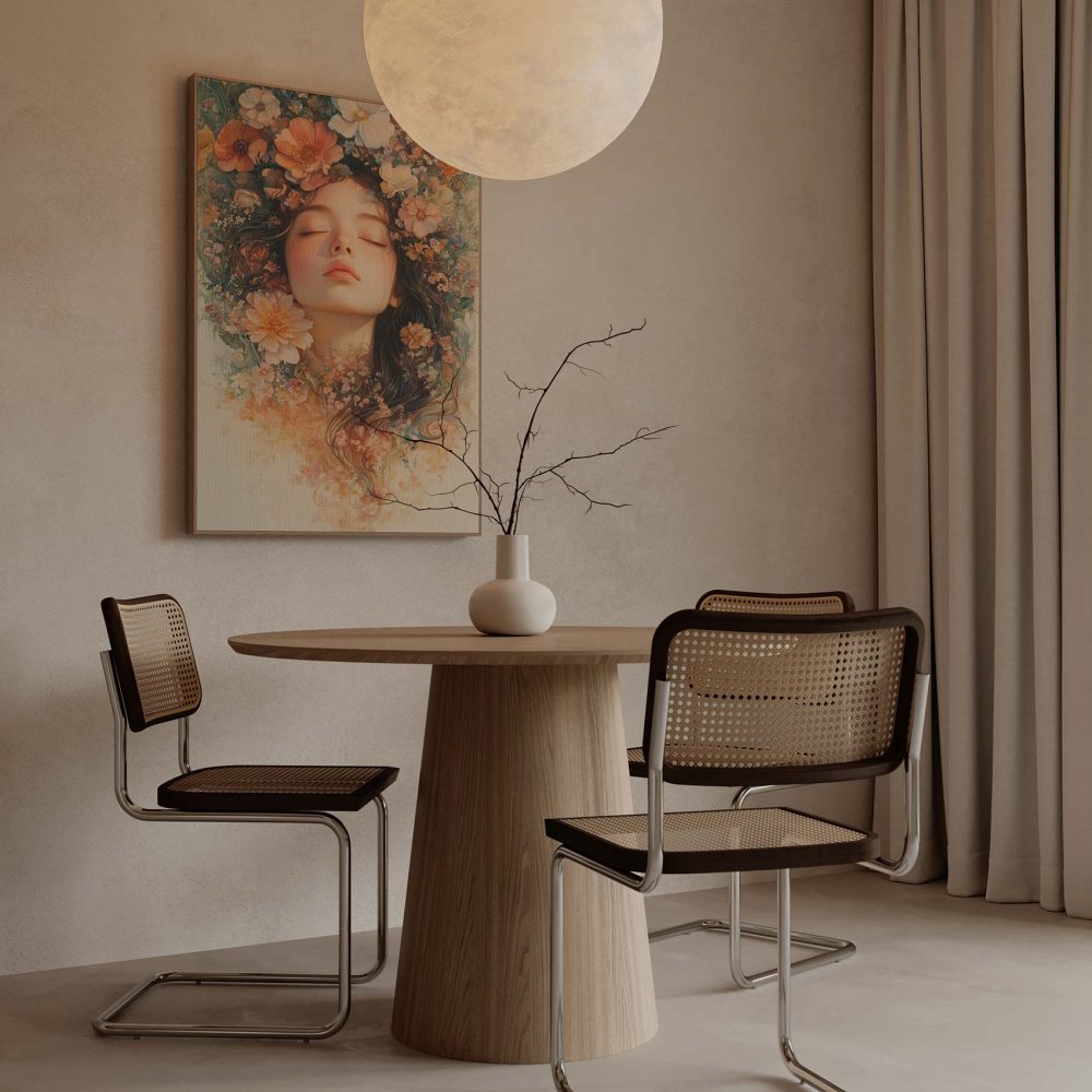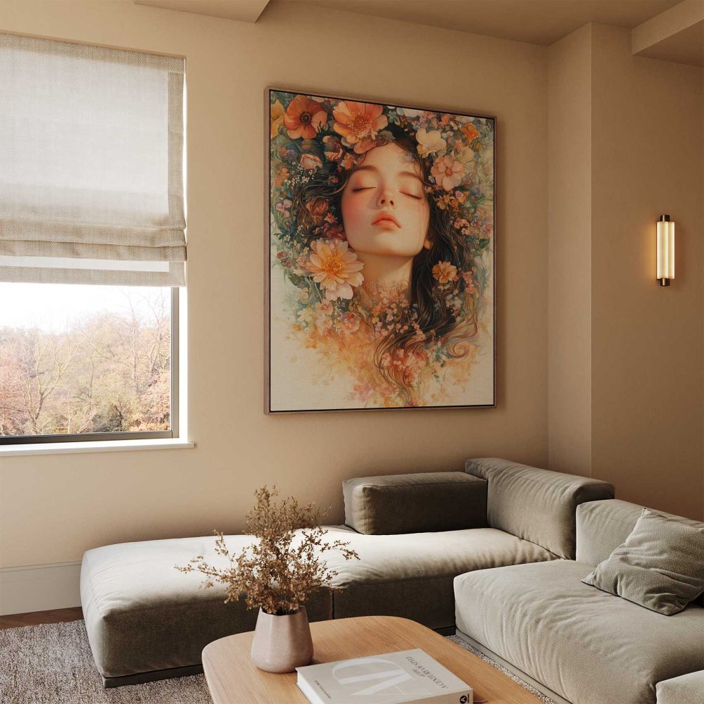 Vrouw omringd door bloemen