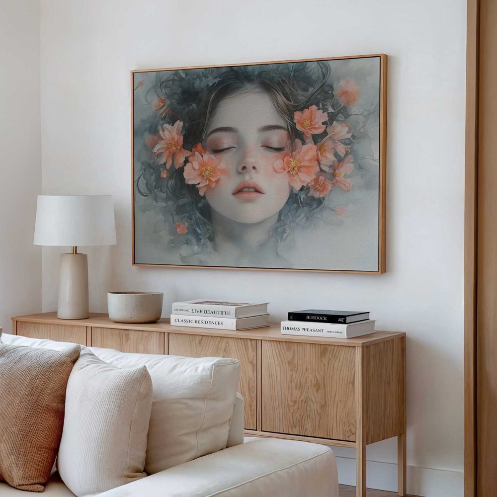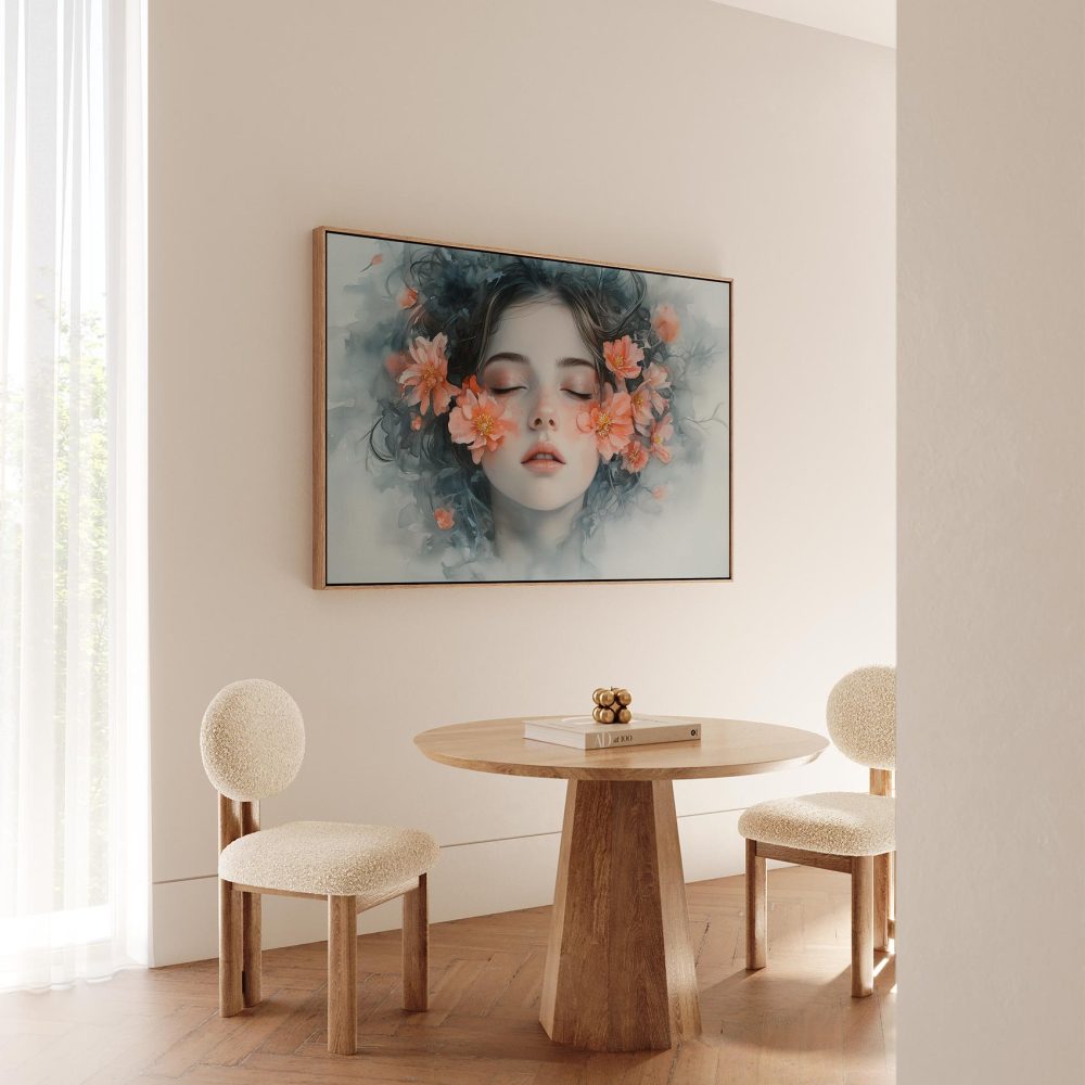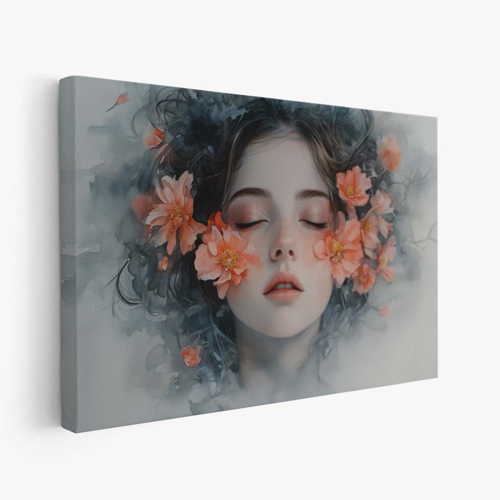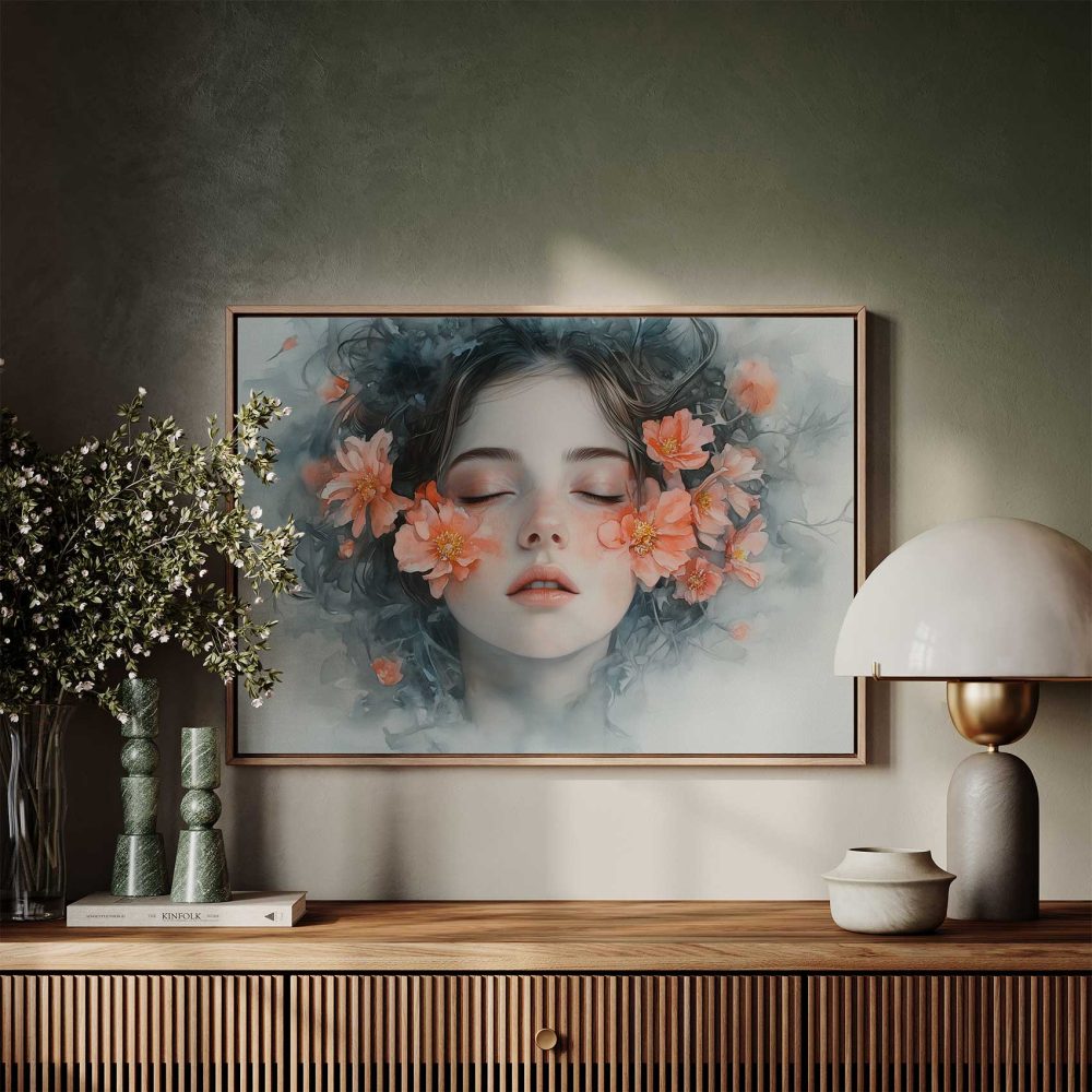 Terug naar collectie / Schilderijen / Bloemen Schilderij / Vrouw omringd door oranje bloemen