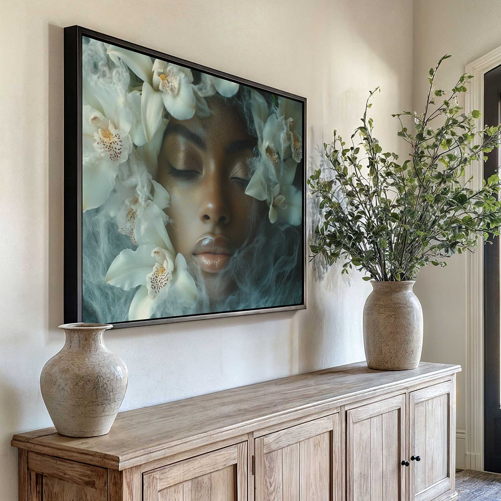 Terug naar collectie / Schilderijen / Bloemen Schilderij / Vrouw omringd door witte bloemen