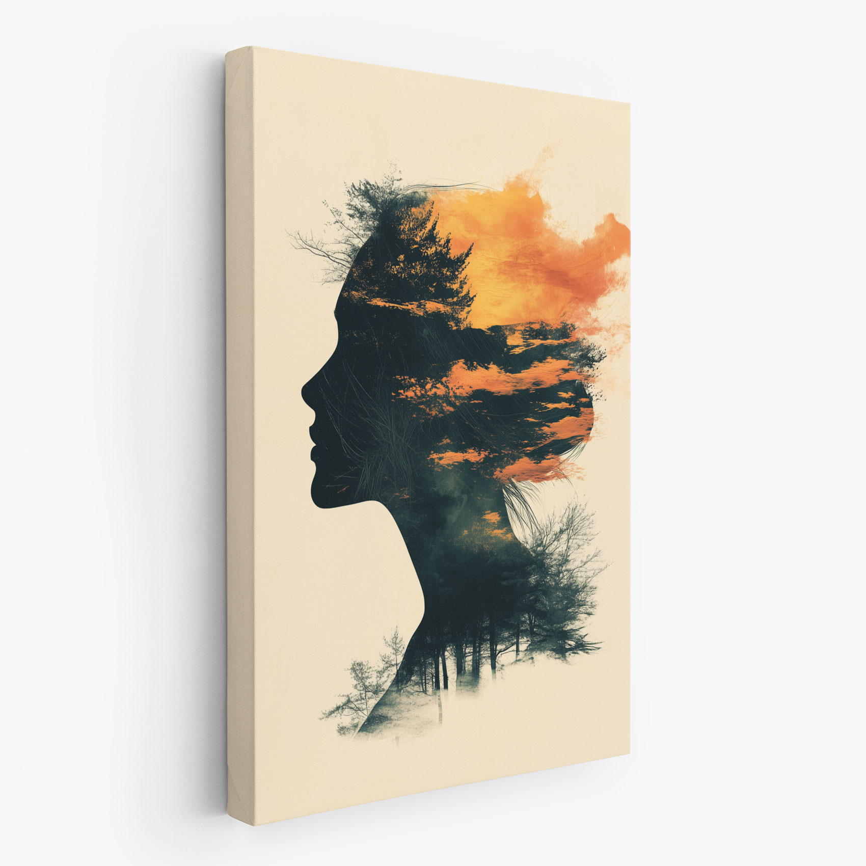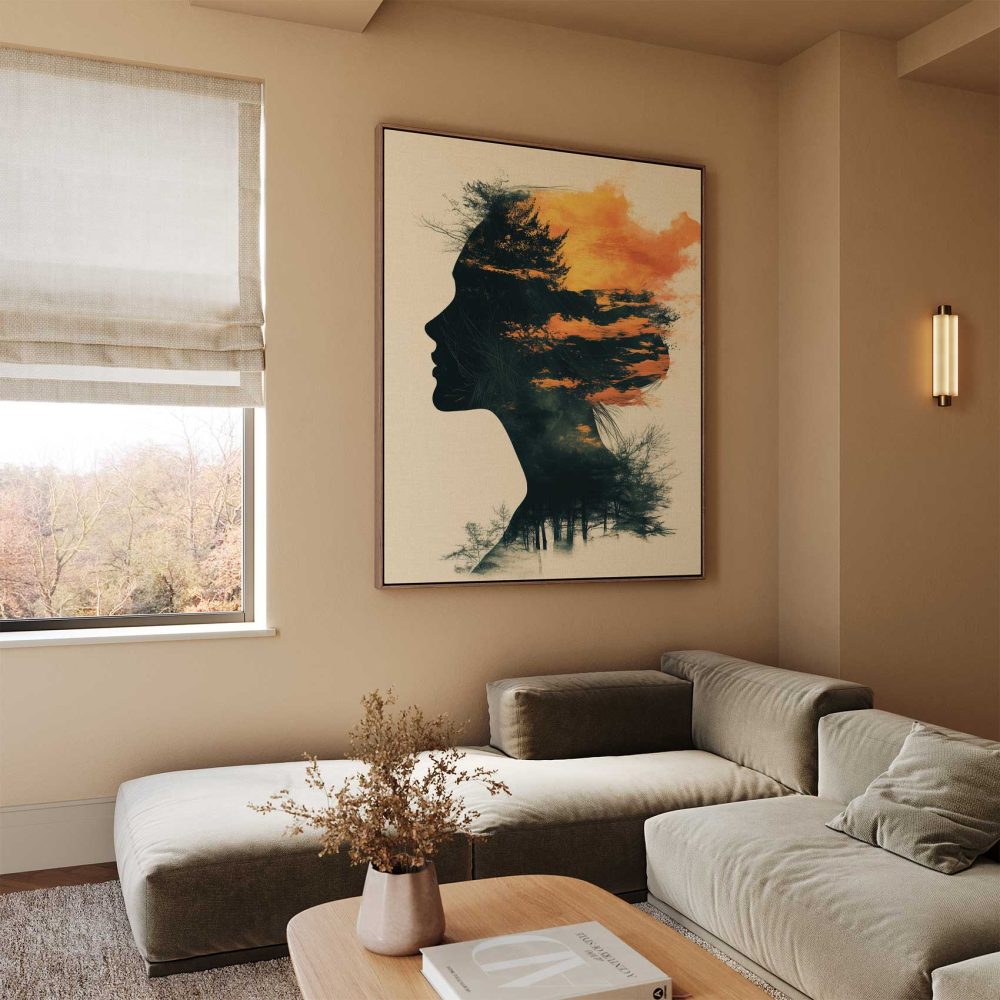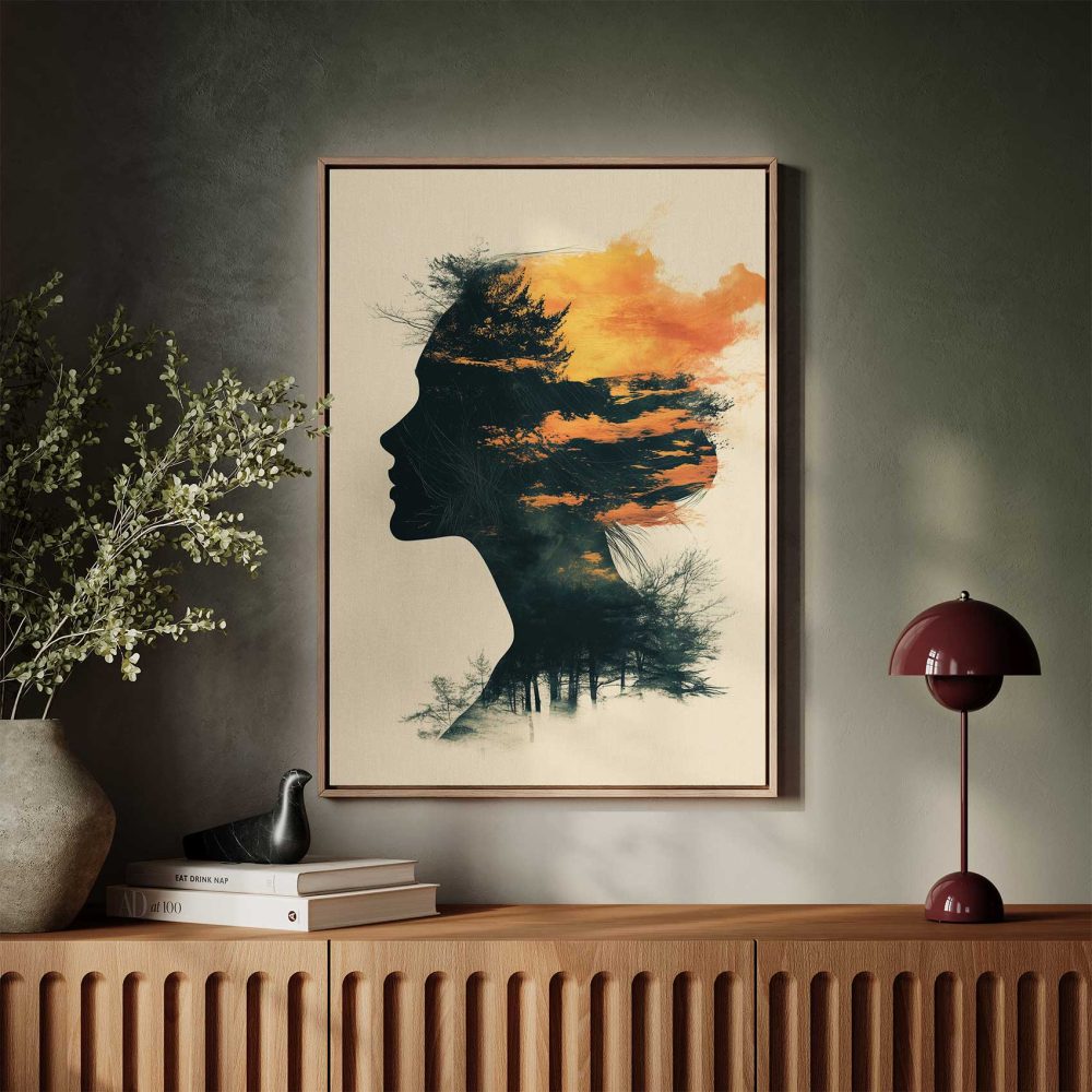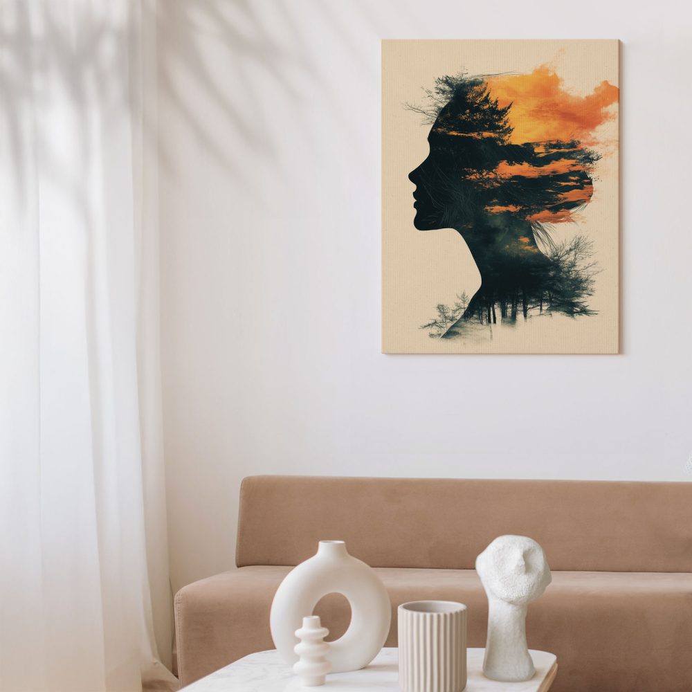 Terug naar collectie / Schilderijen / Abstract Schilderij / Vrouwensilhouet in oranje-zwart