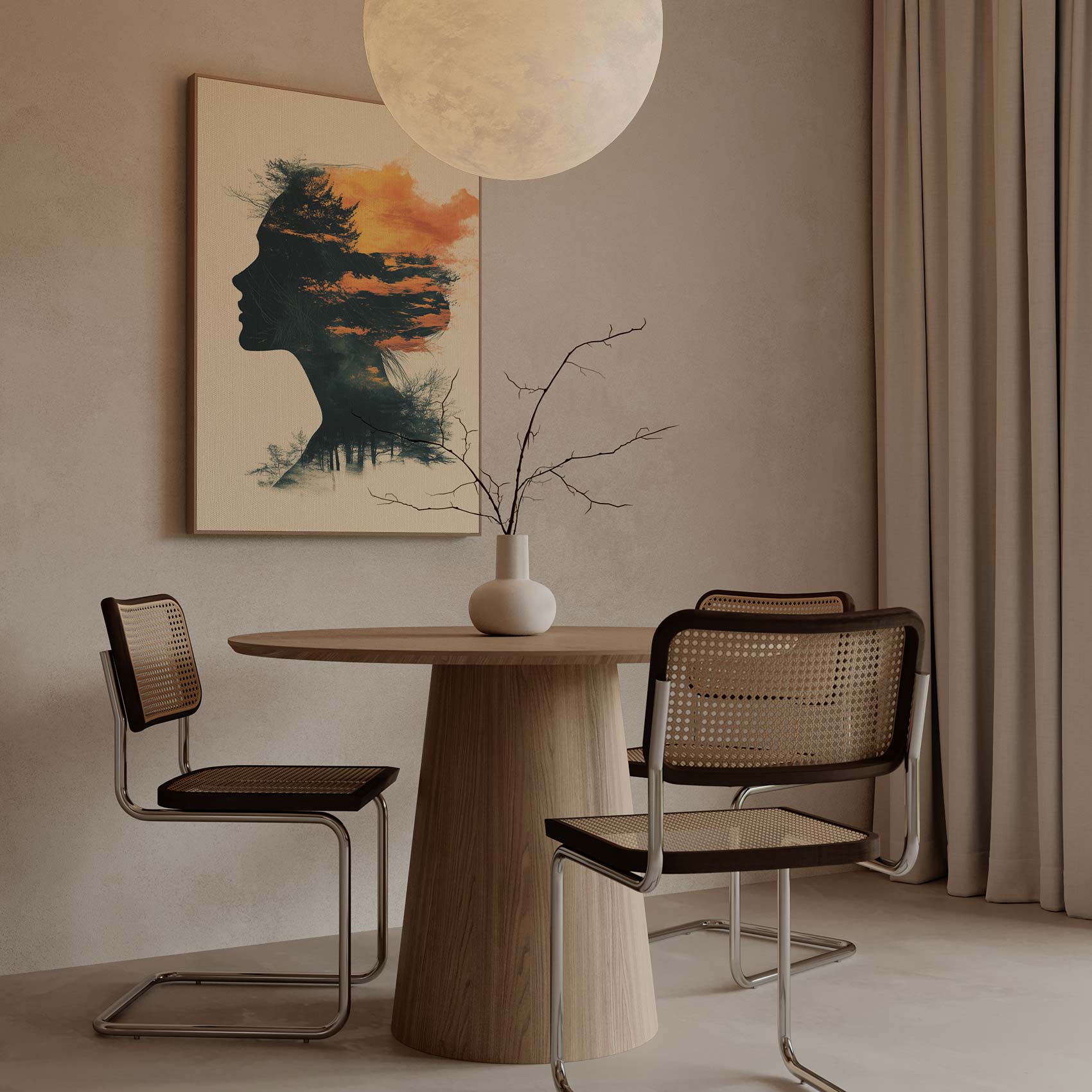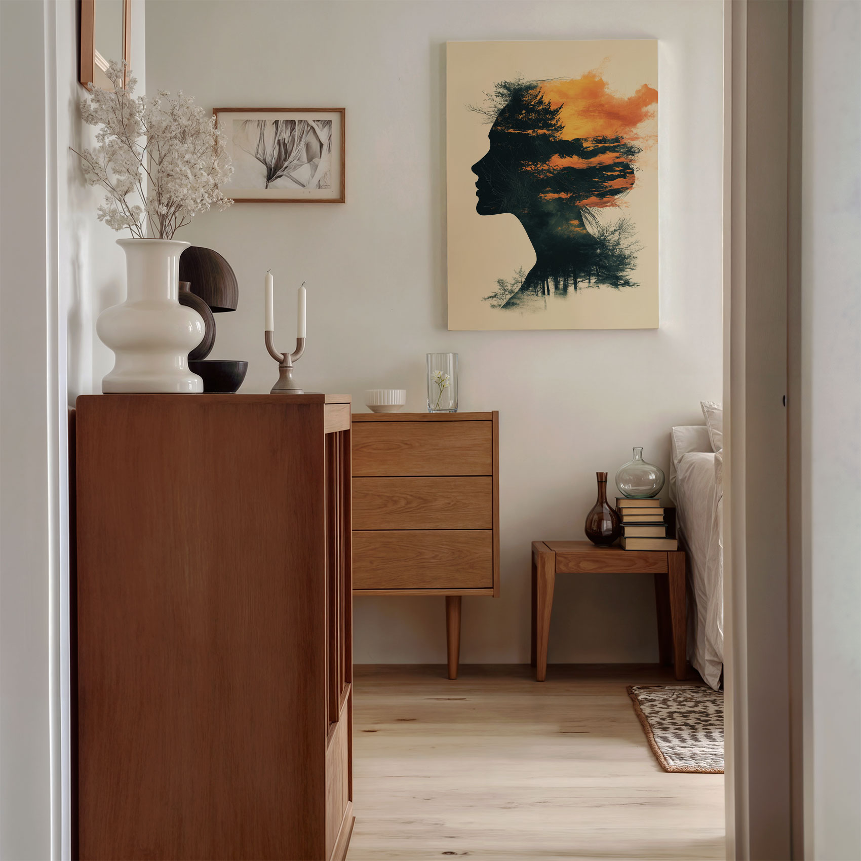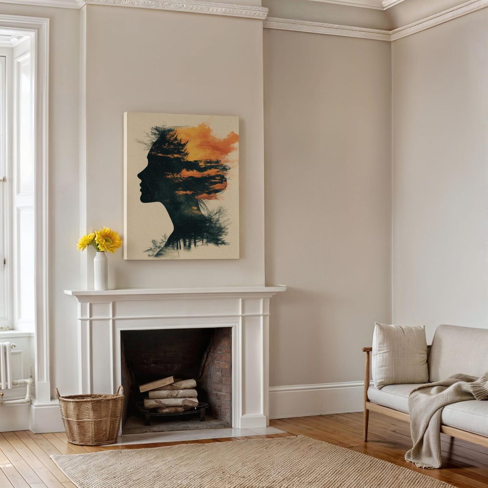 Terug naar collectie / Schilderijen / Abstract Schilderij / Vrouwensilhouet in oranje-zwart