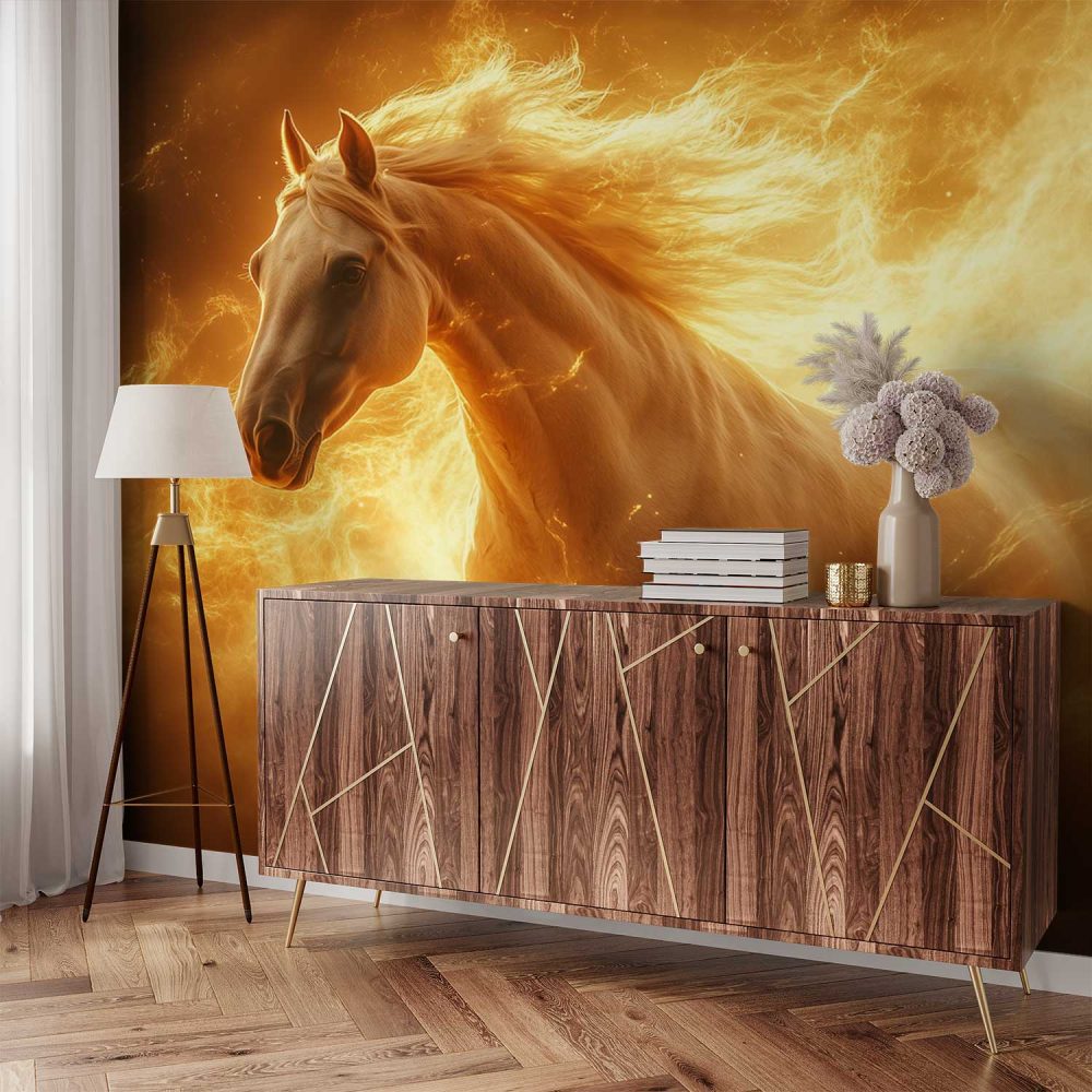 Terug naar collectie / Behang / Abstract behang / Vurig Galopperend Wit Paard behang