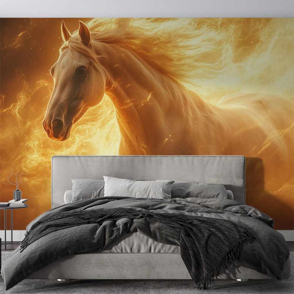 Vurig Galopperend Wit Paard behang