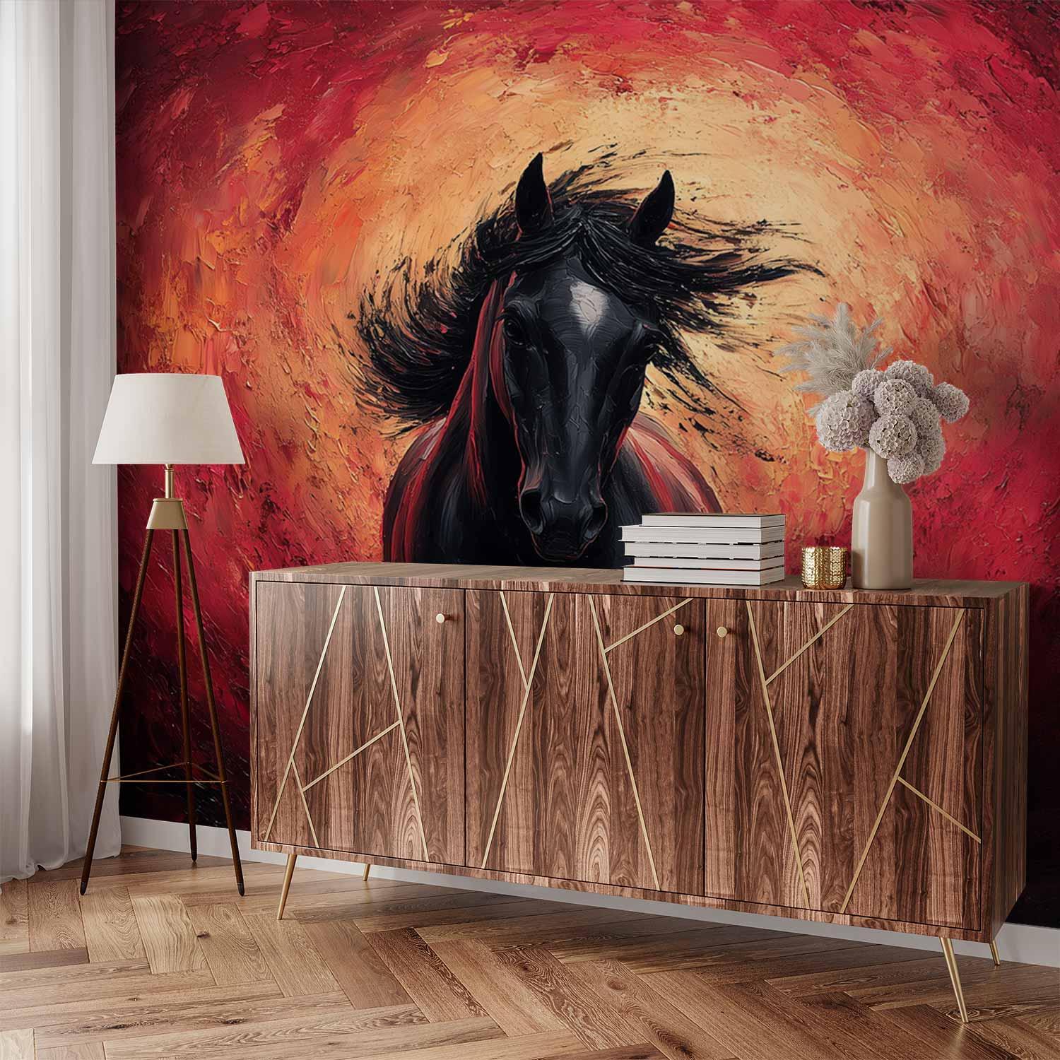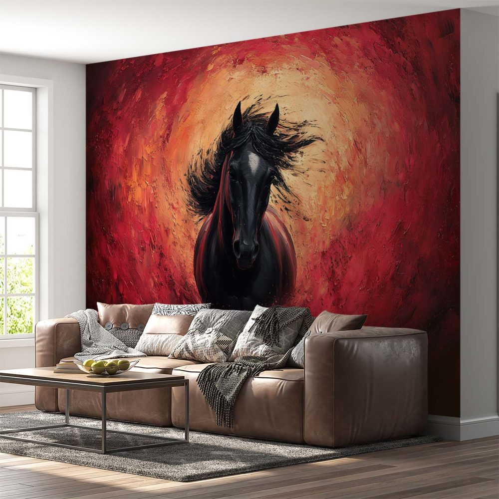 Vurig galopperend zwart paard behang