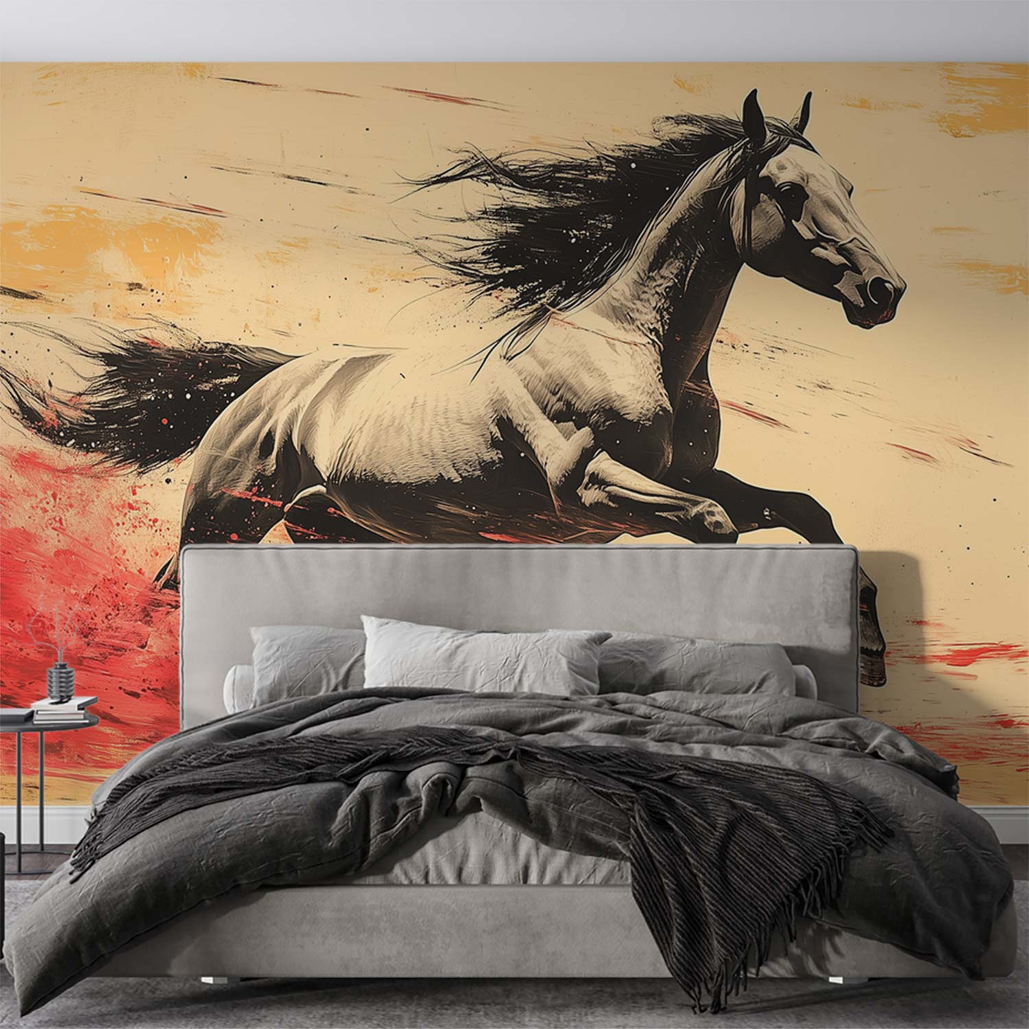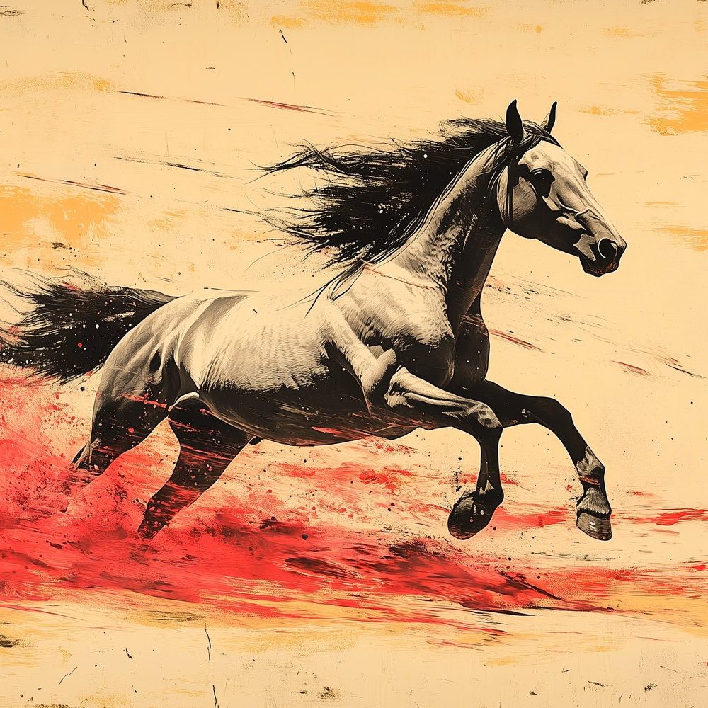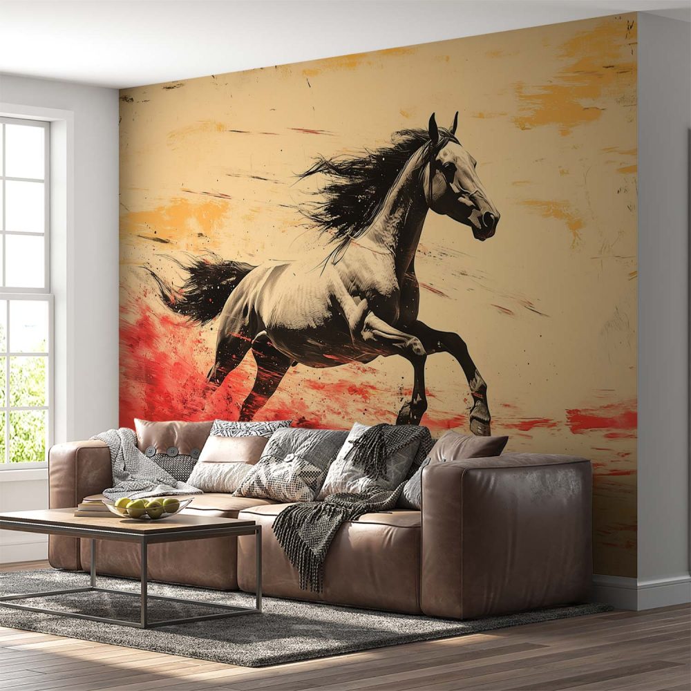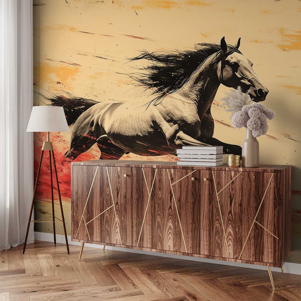Terug naar collectie / Behang / Vurig Galopperend Zwart-Wit Paard behang