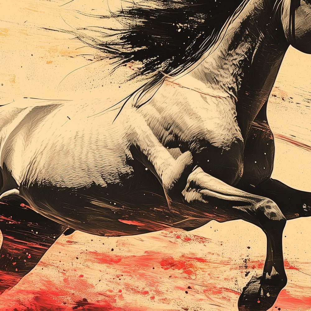 Vurig Galopperend Zwart-Wit Paard behang