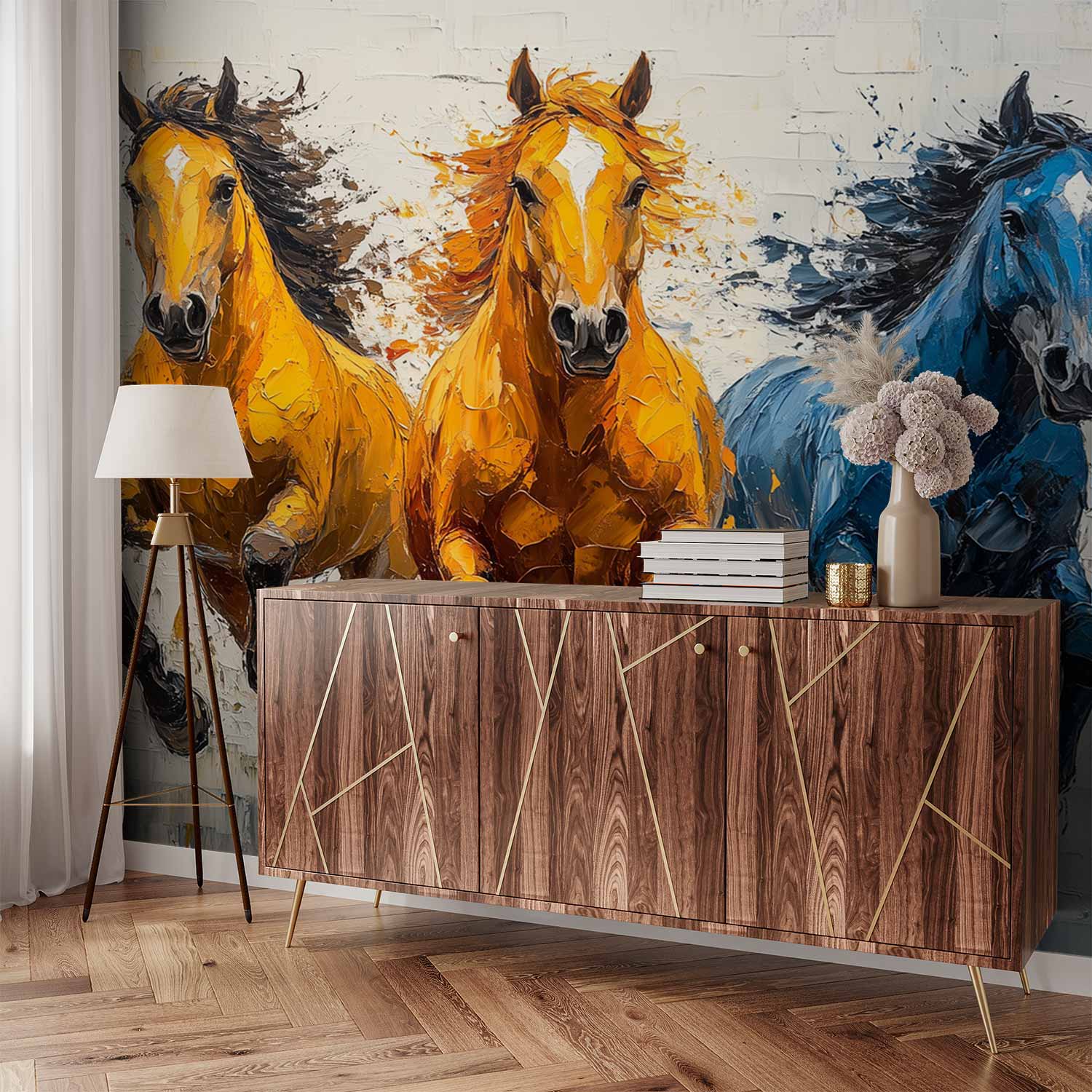Terug naar collectie / Behang / Abstract behang / Vurige Galopperende Paarden behang
