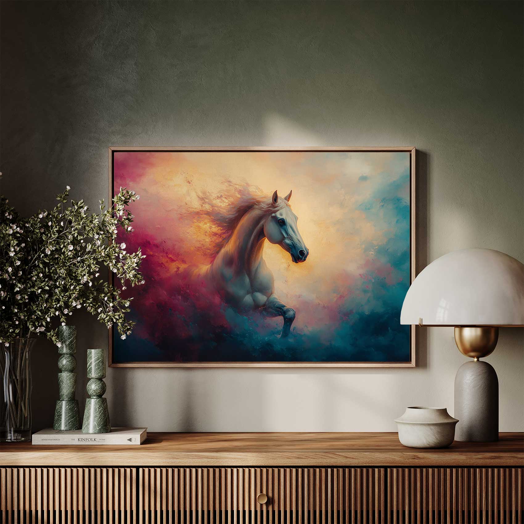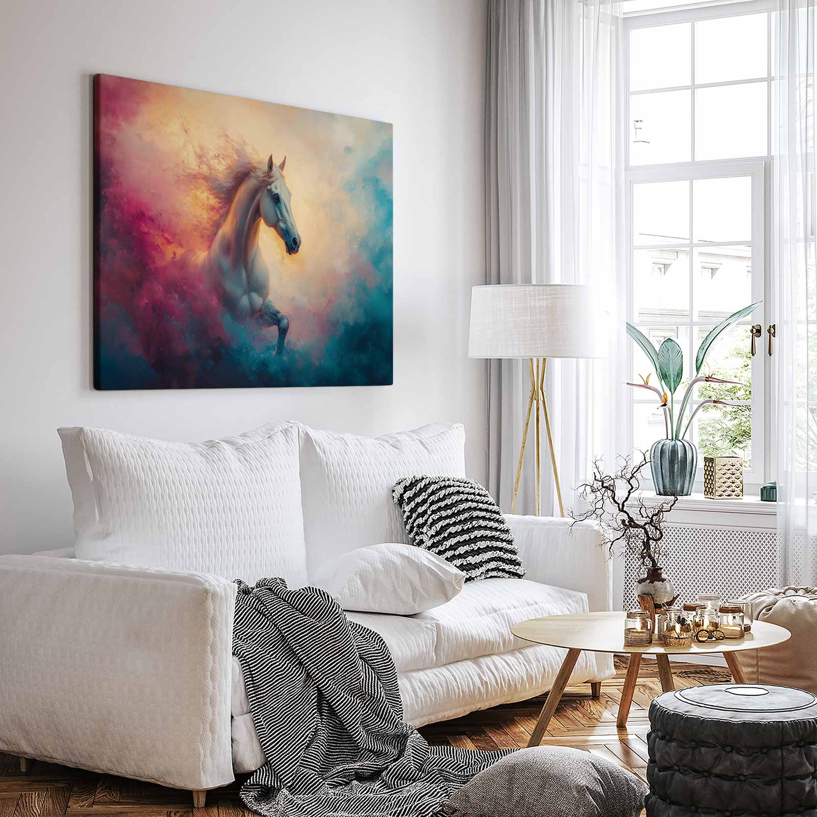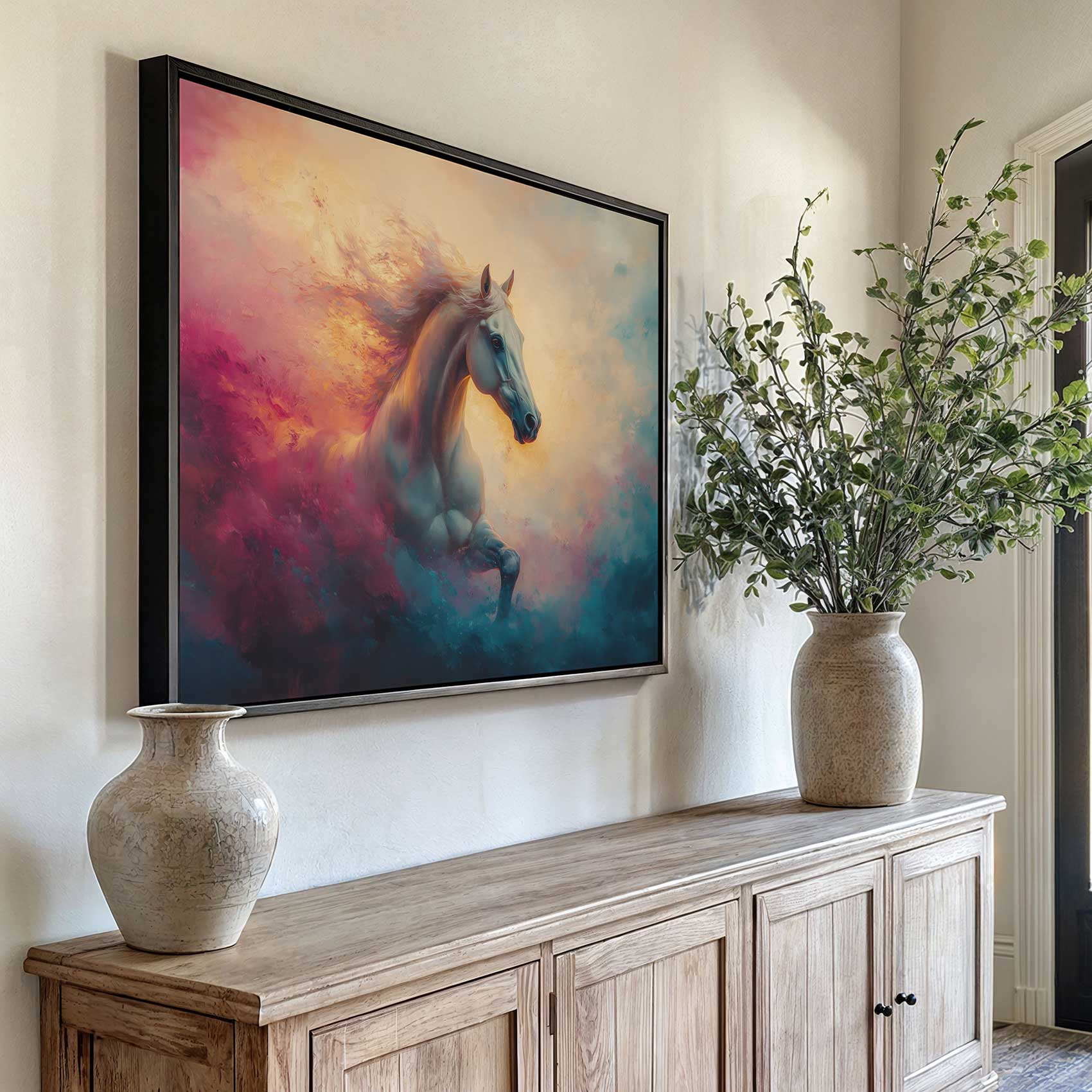 Terug naar collectie / Schilderijen / Abstract Schilderij / Vurige galopperende witte paard