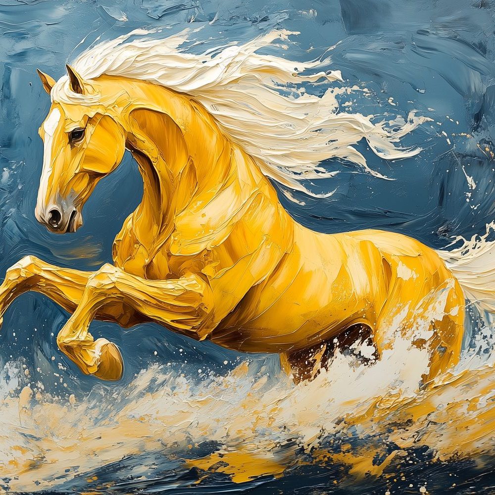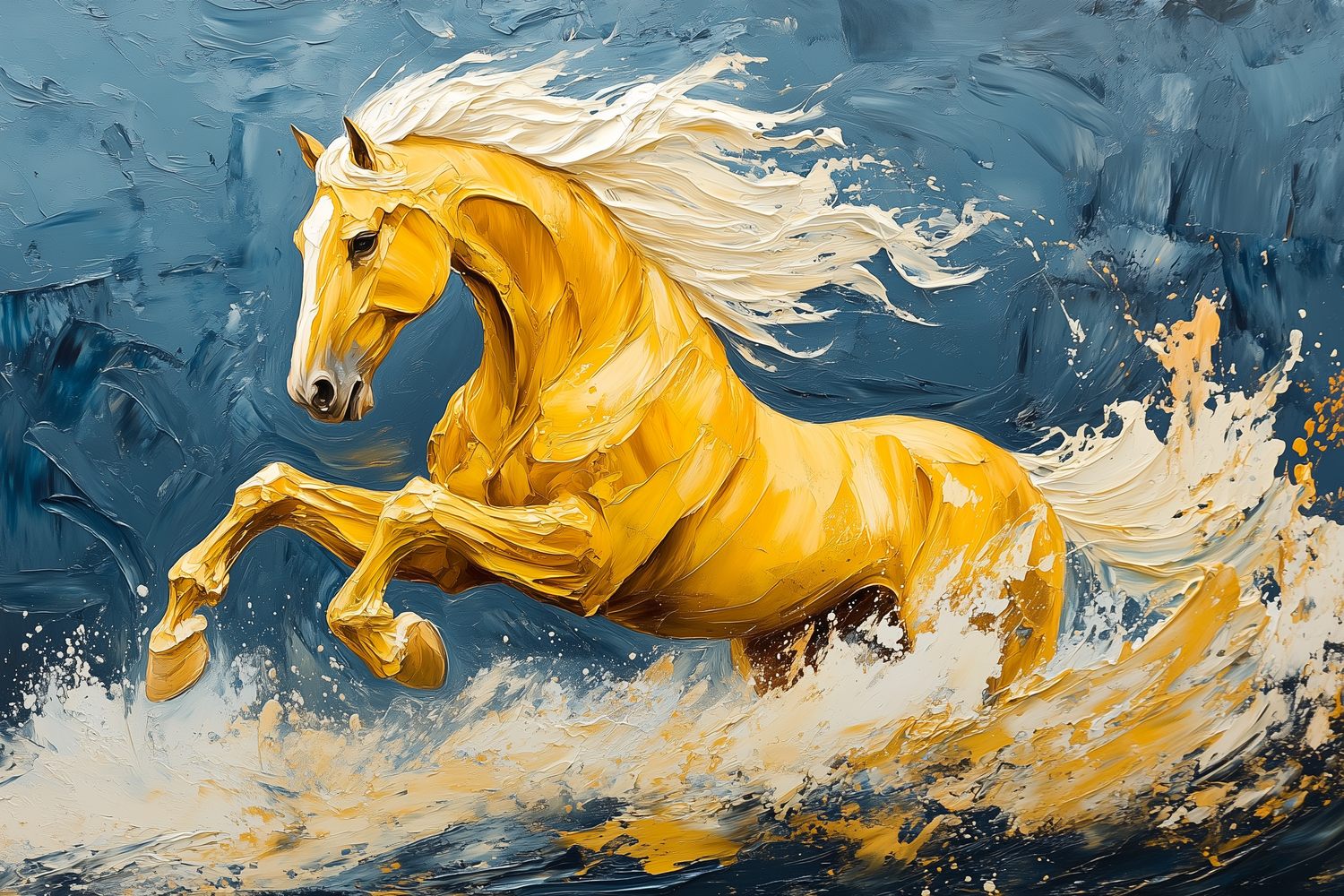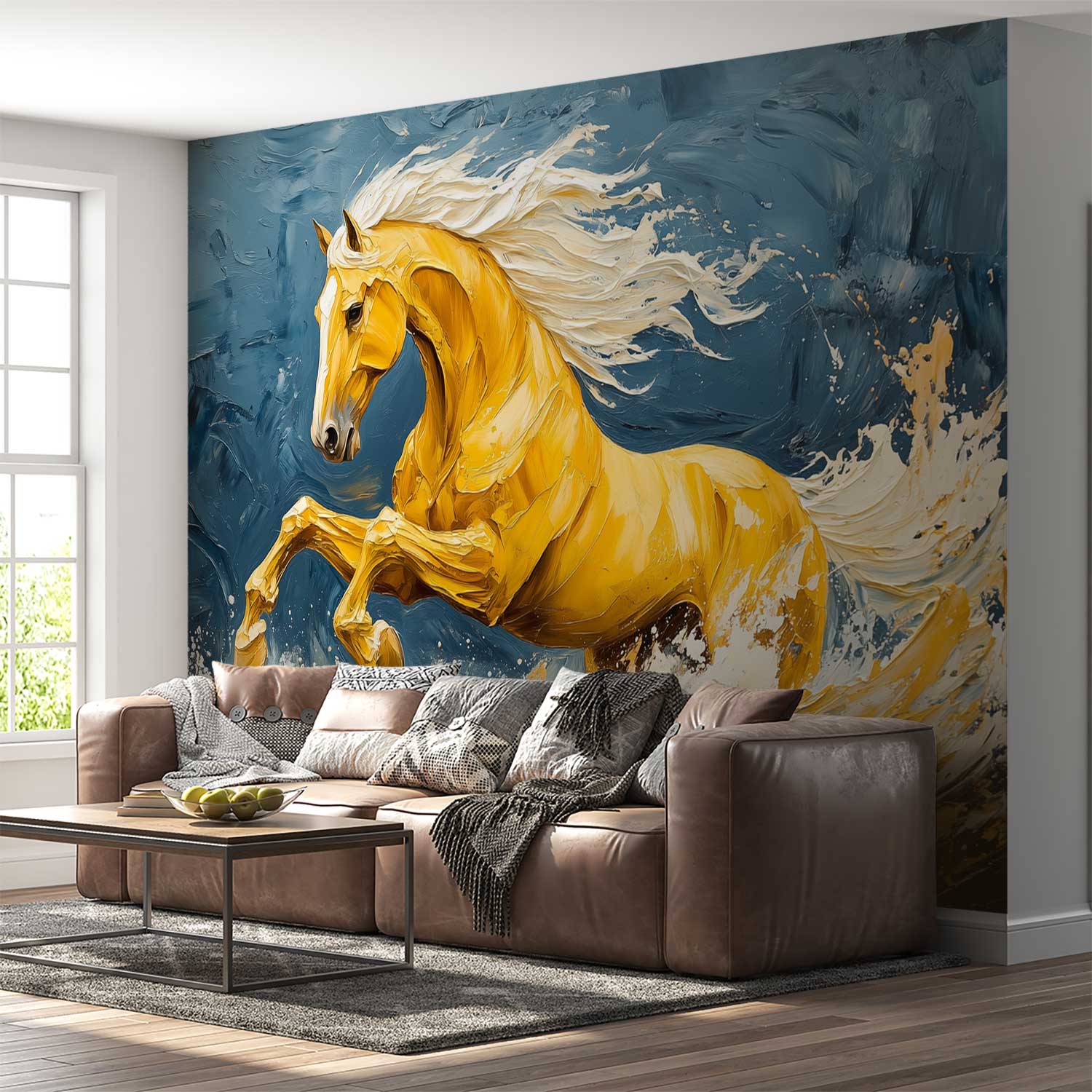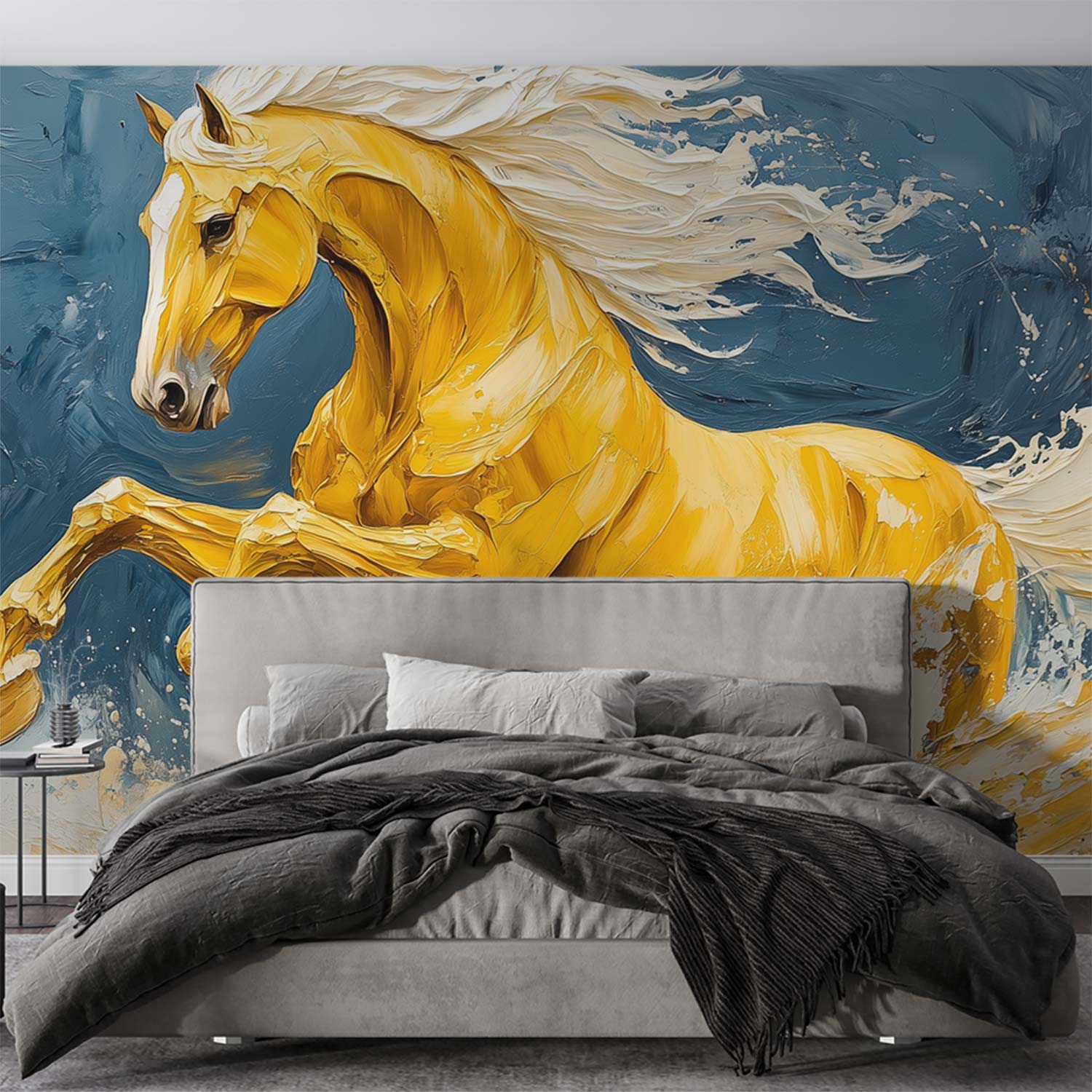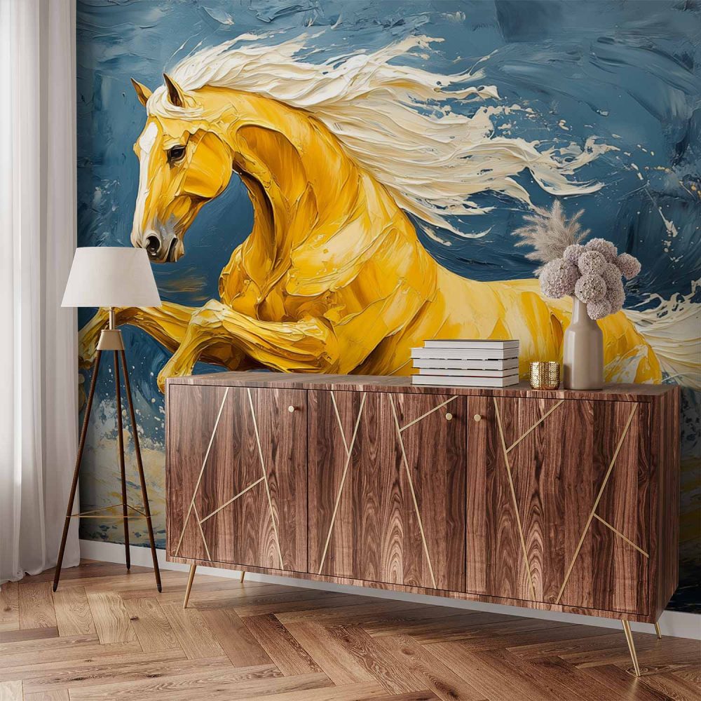 Terug naar collectie / Behang / Abstract behang / Vurige Gele Galopperende Paard behang