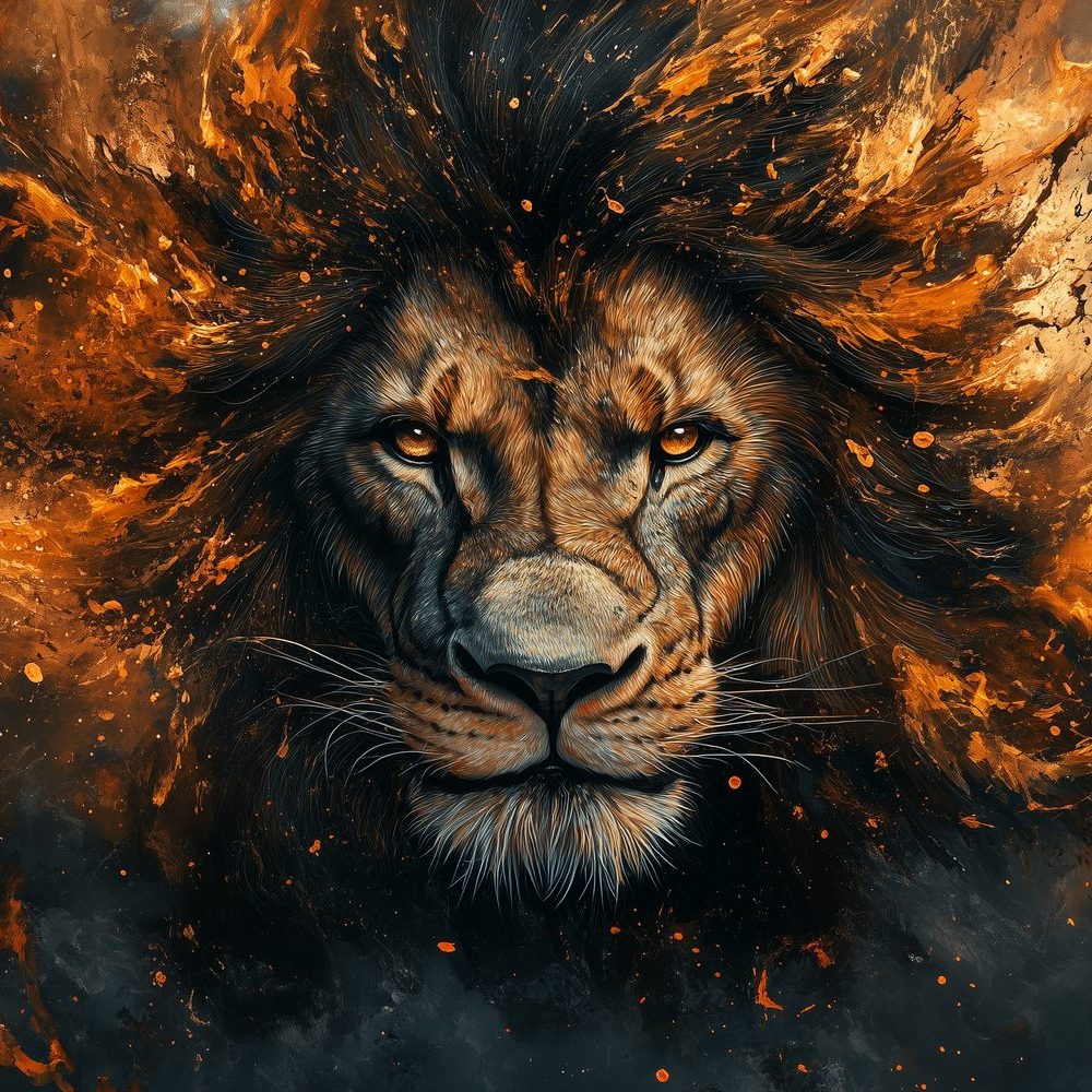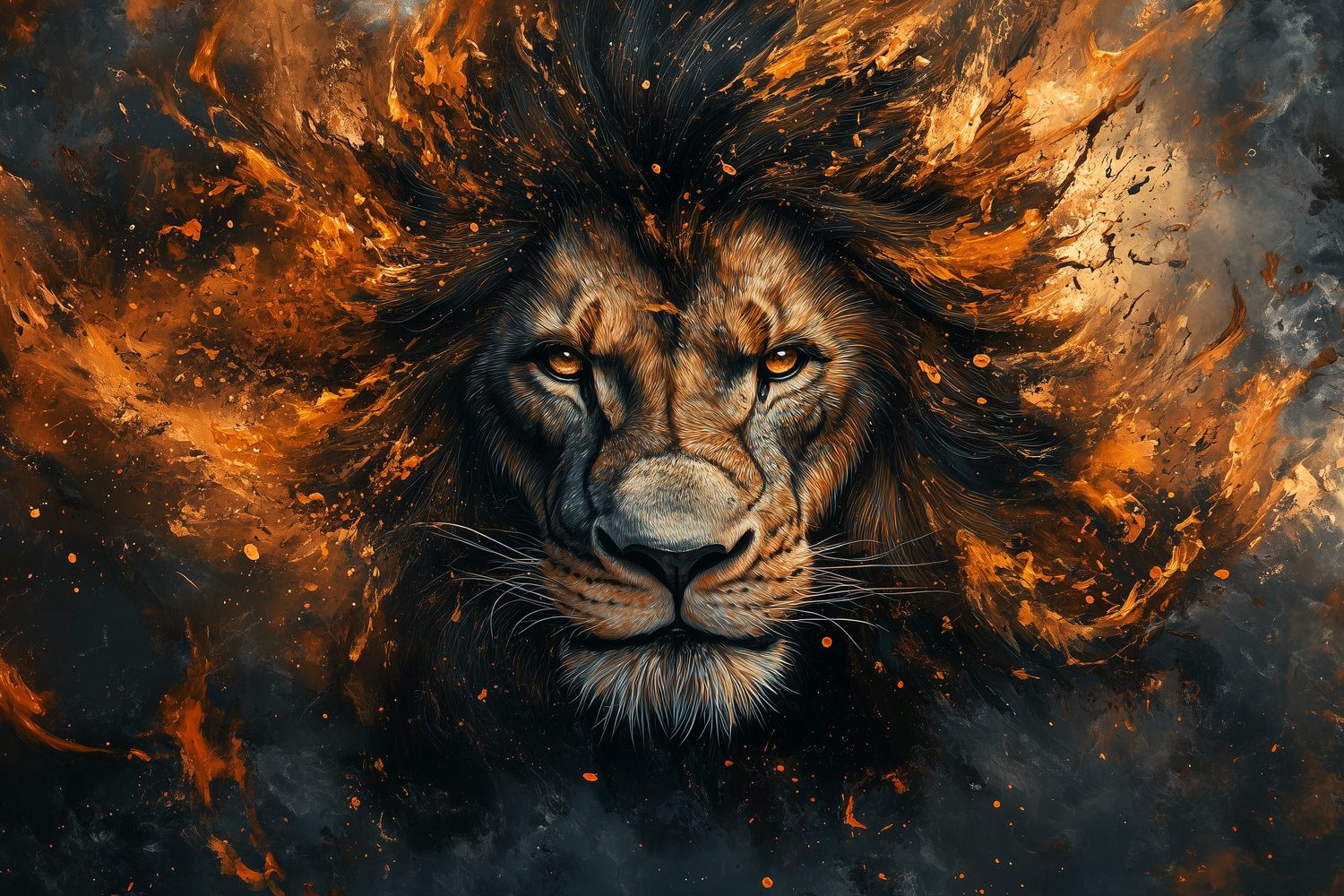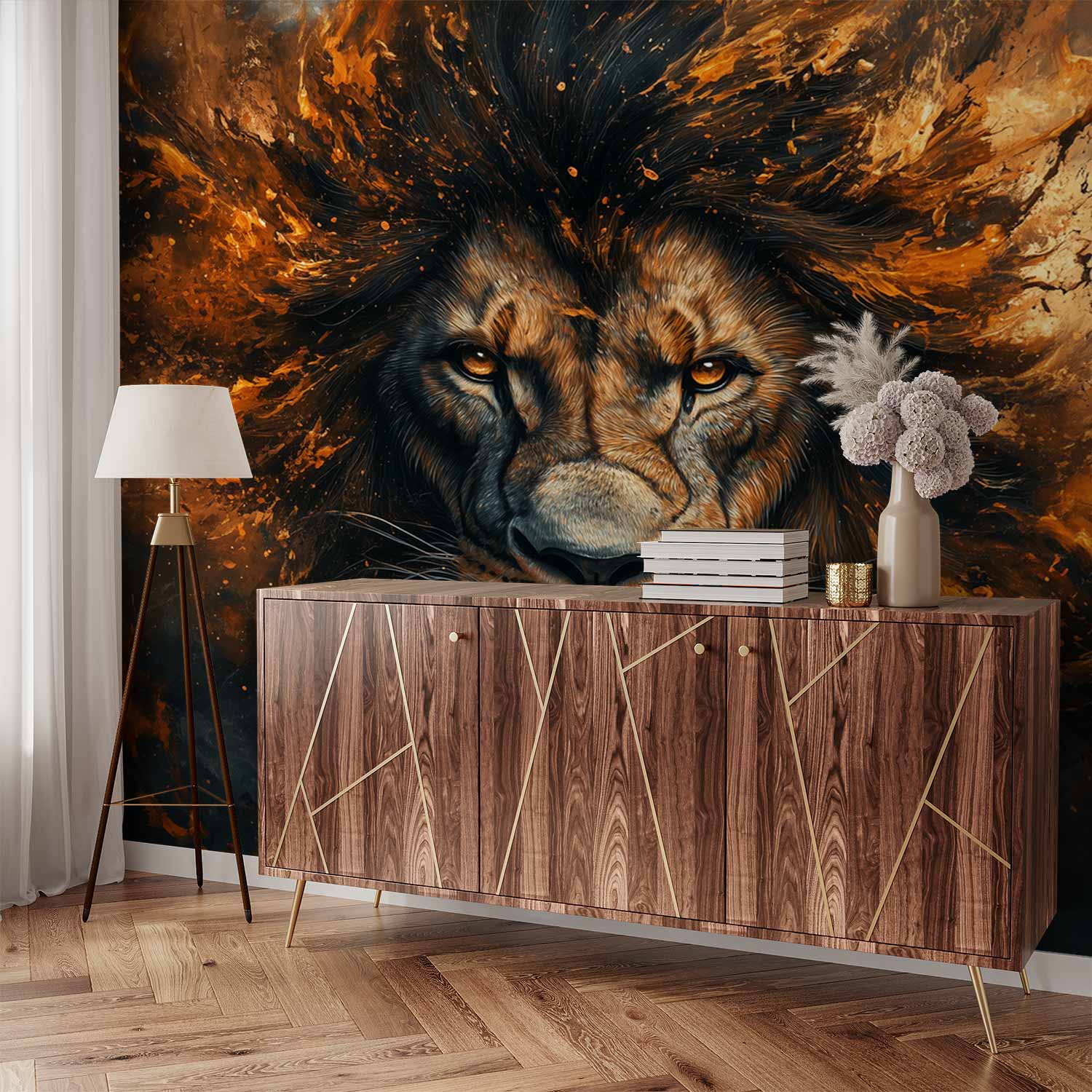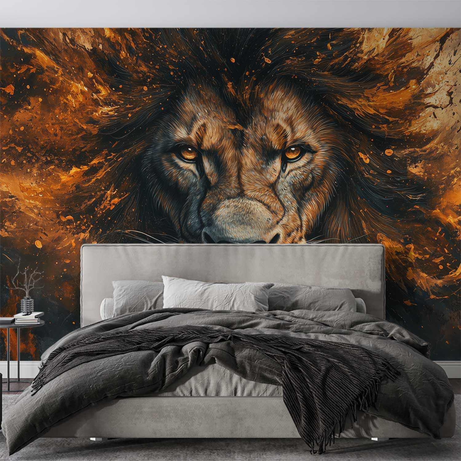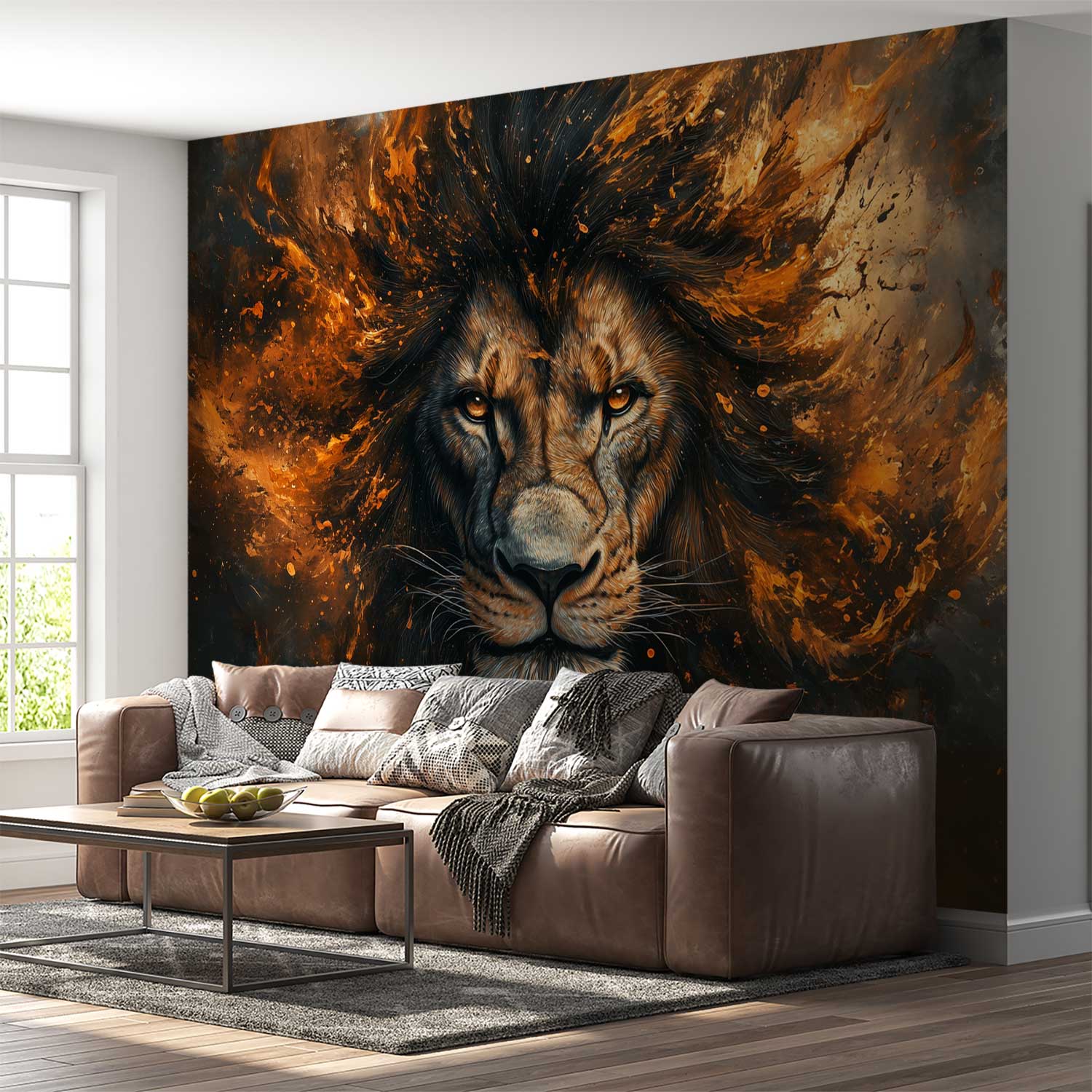 Terug naar collectie / Behang / Vurige Leeuw in Vlammen behang