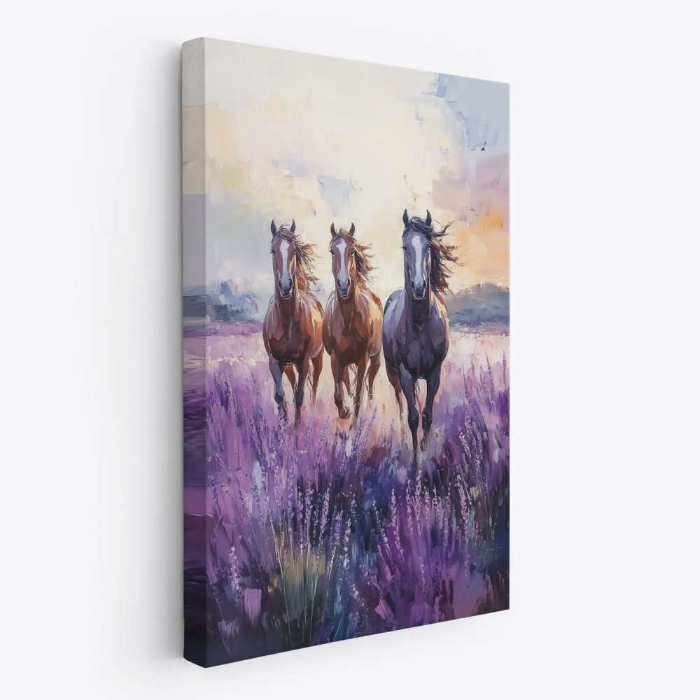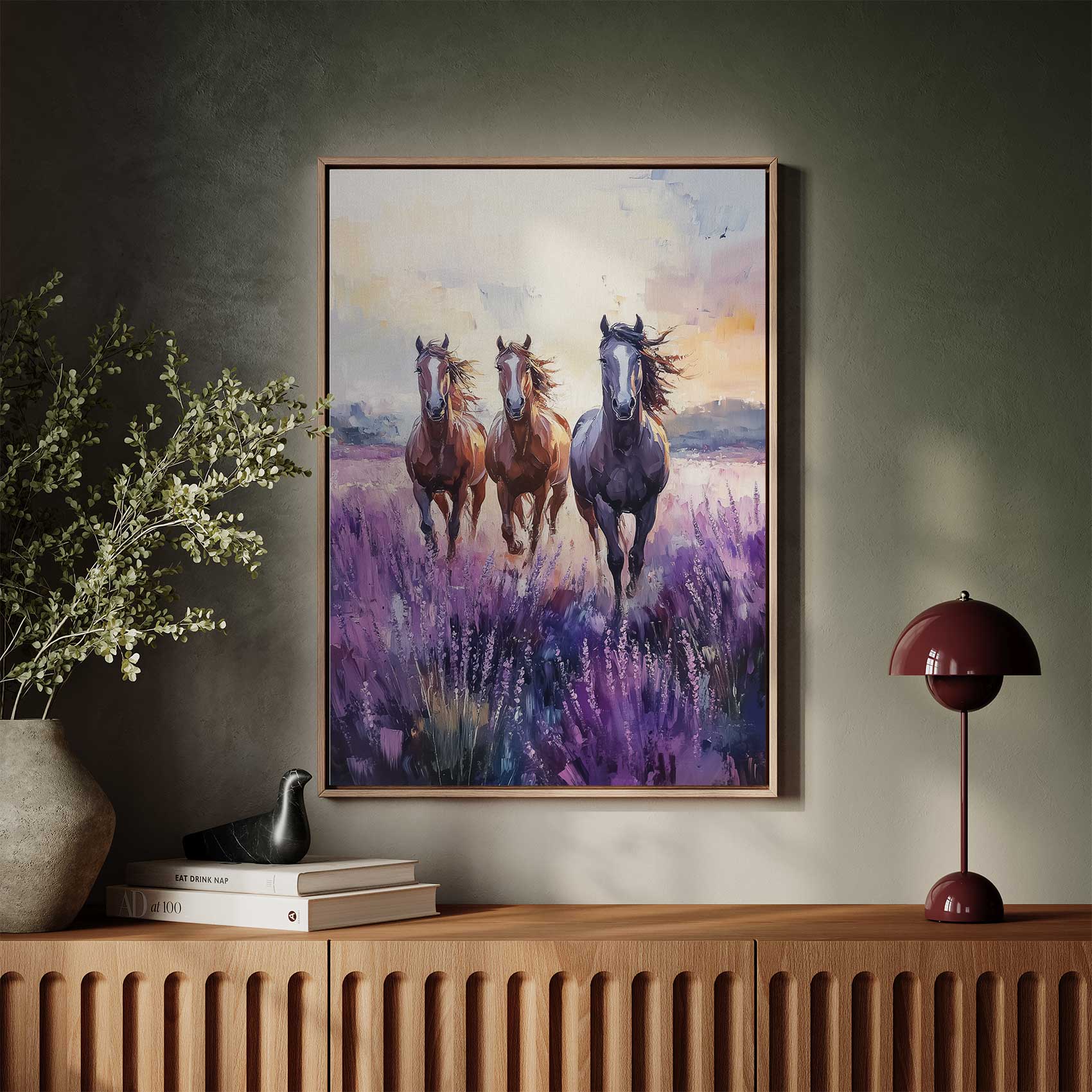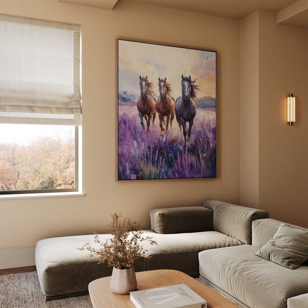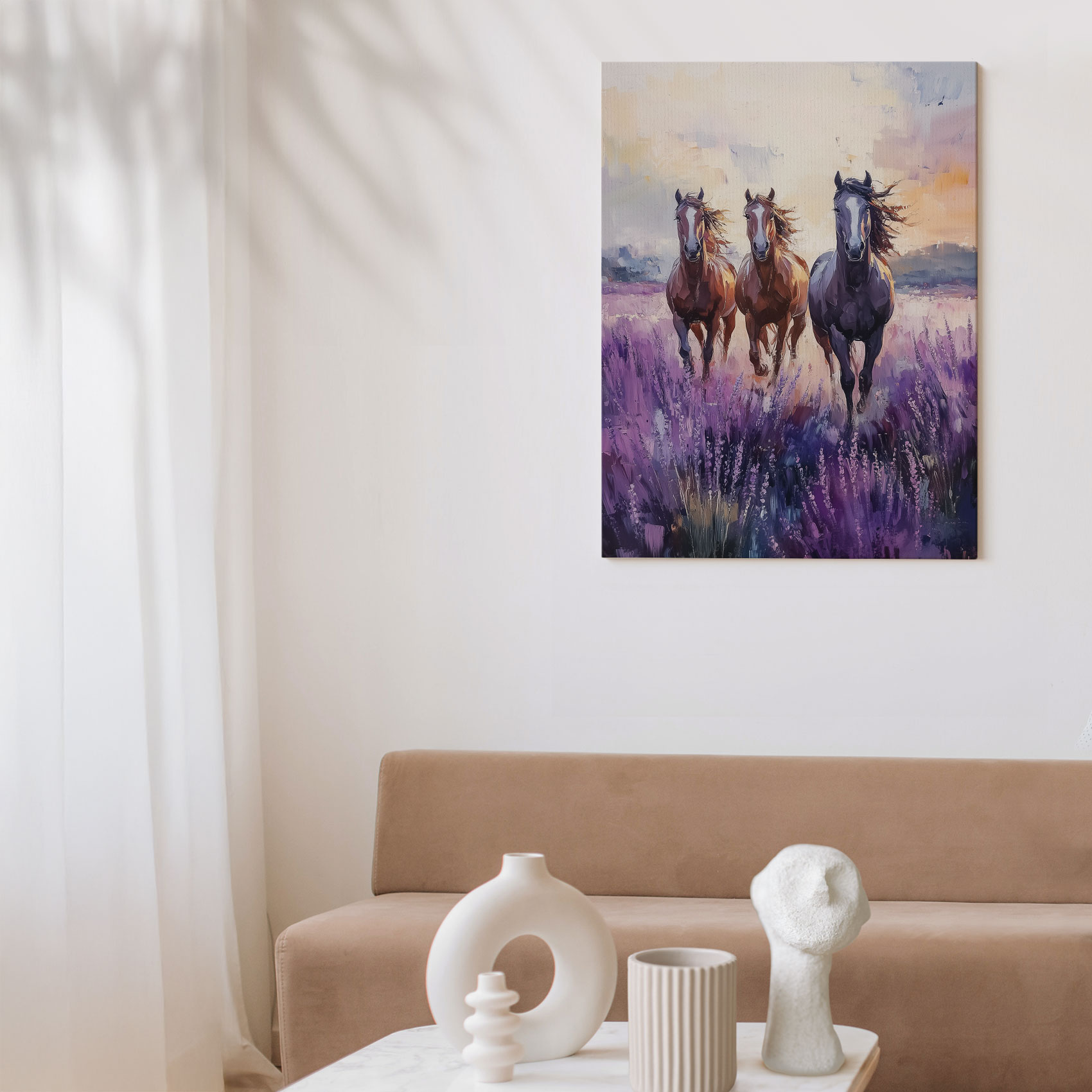Terug naar collectie / Schilderijen / Bloemen Schilderij / Vurige paarden in paarse velden