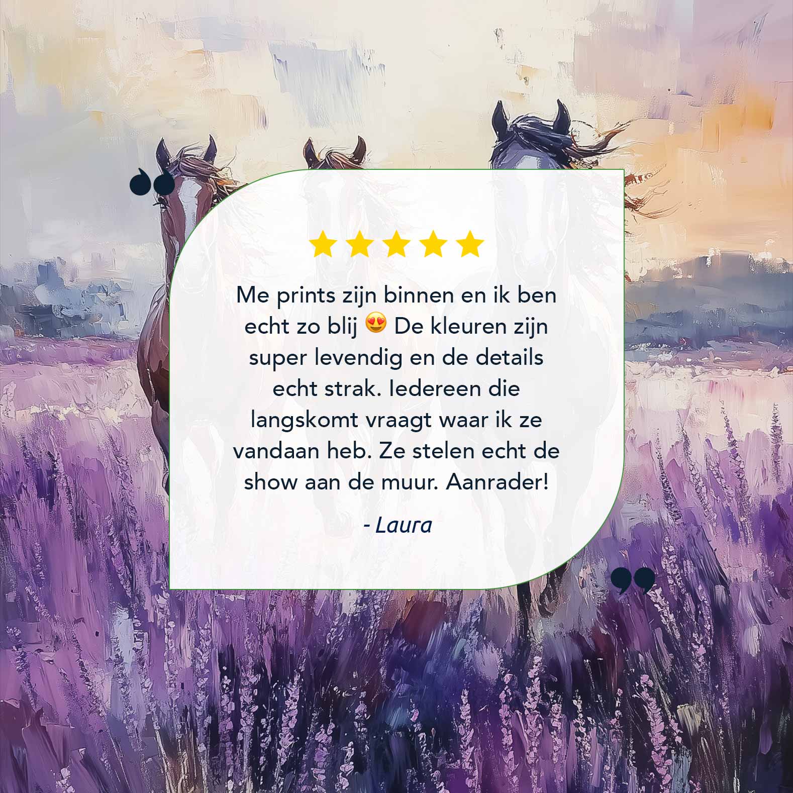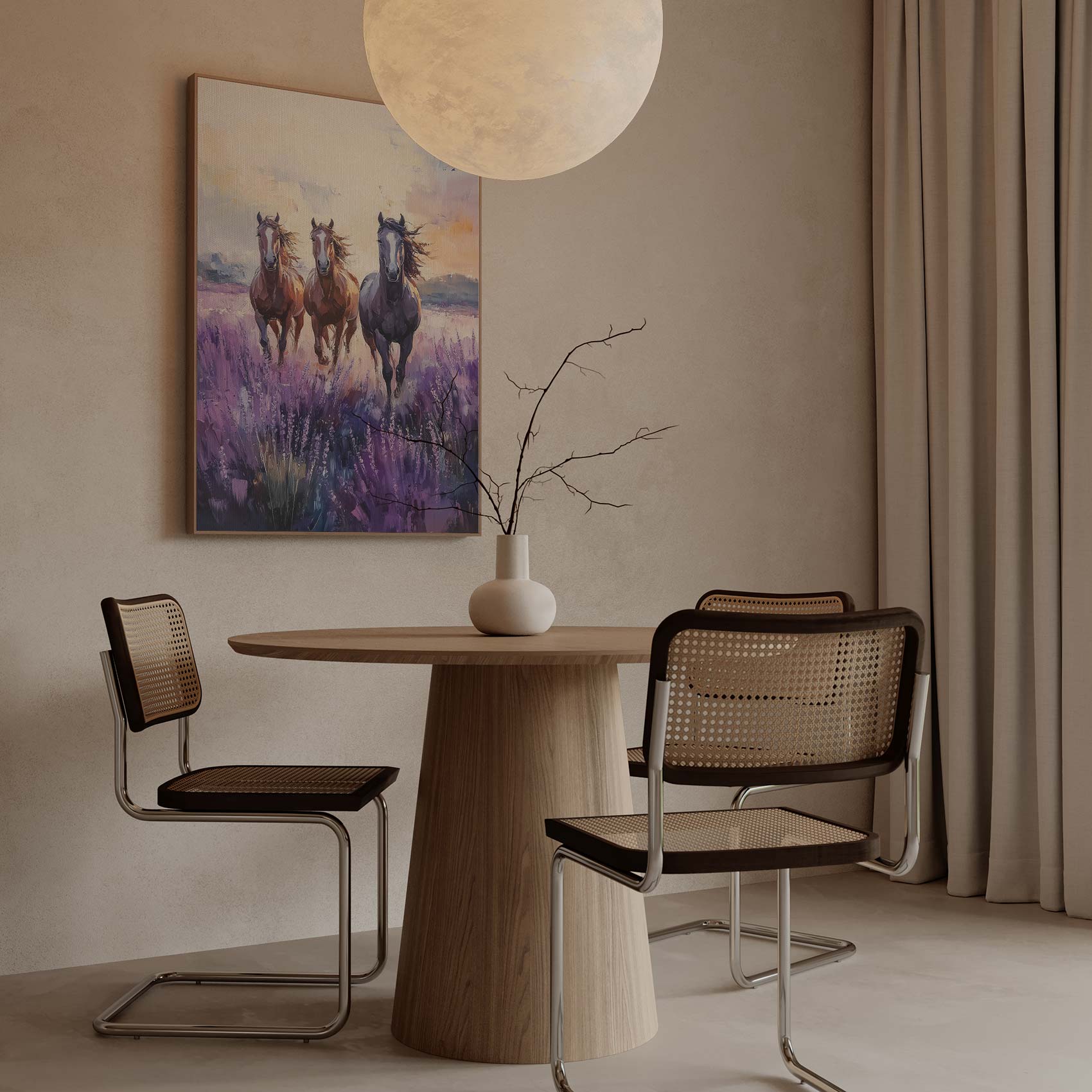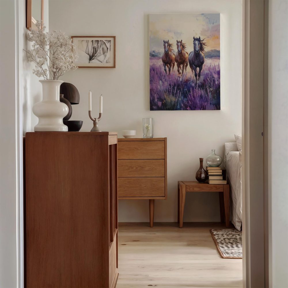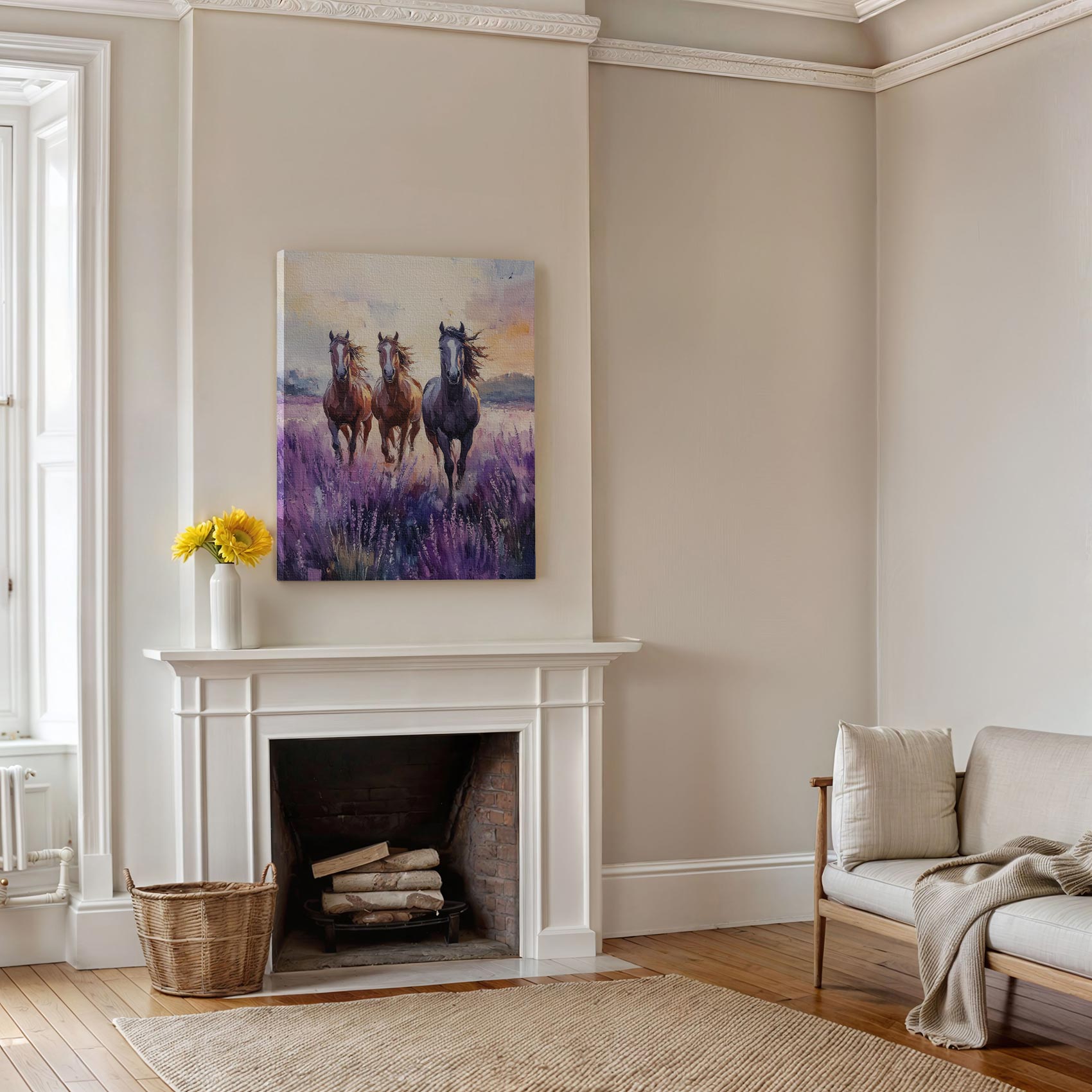Terug naar collectie / Schilderijen / Bloemen Schilderij / Vurige paarden in paarse velden
