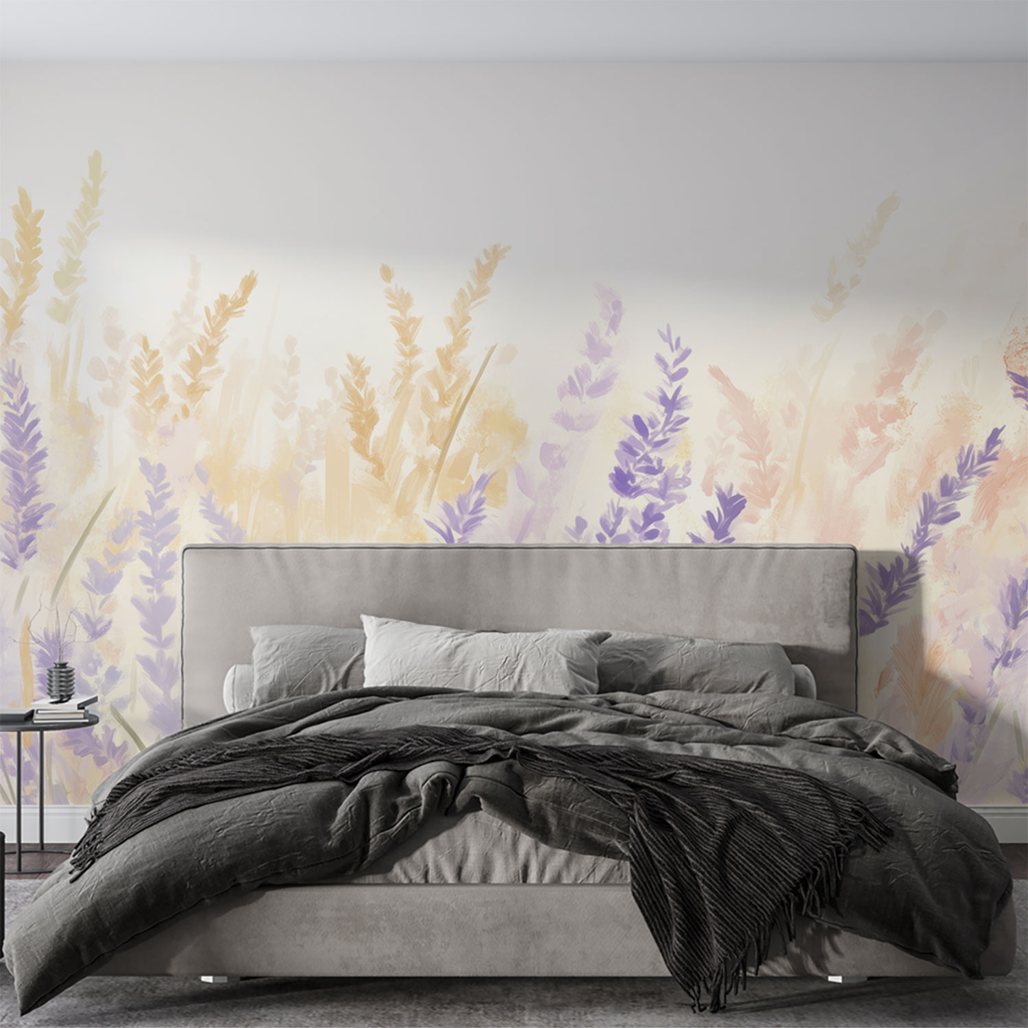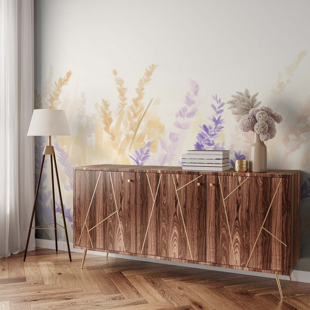 Terug naar collectie / Behang / Watercolor Lavendelveld behang