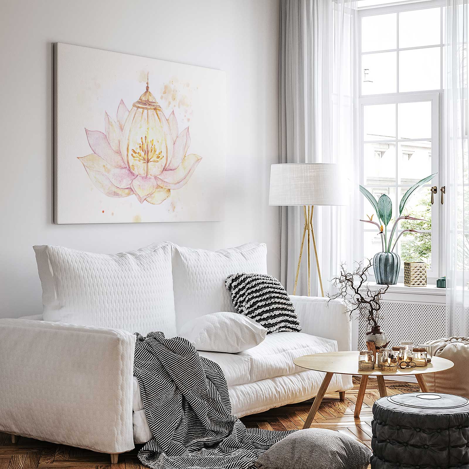Watercolor Lotus Bloem Schilderij