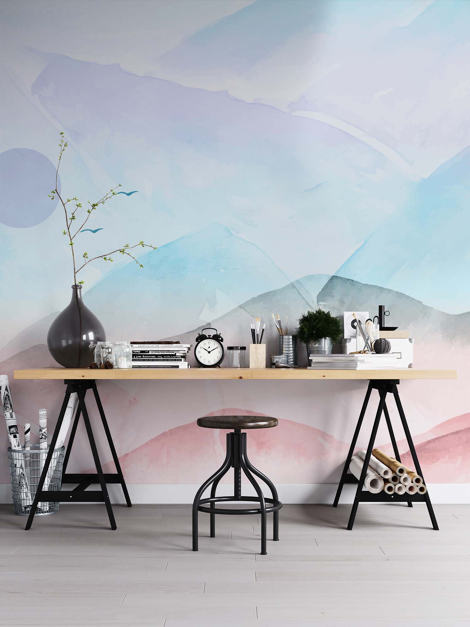 U ontvangt een staal van 15 × 20 cm op Variovlies behang, met dezelfde print en structuur als het uiteindelijke product. Zo kunt u thuis rustig beoordelen of het ontwerp goed past.