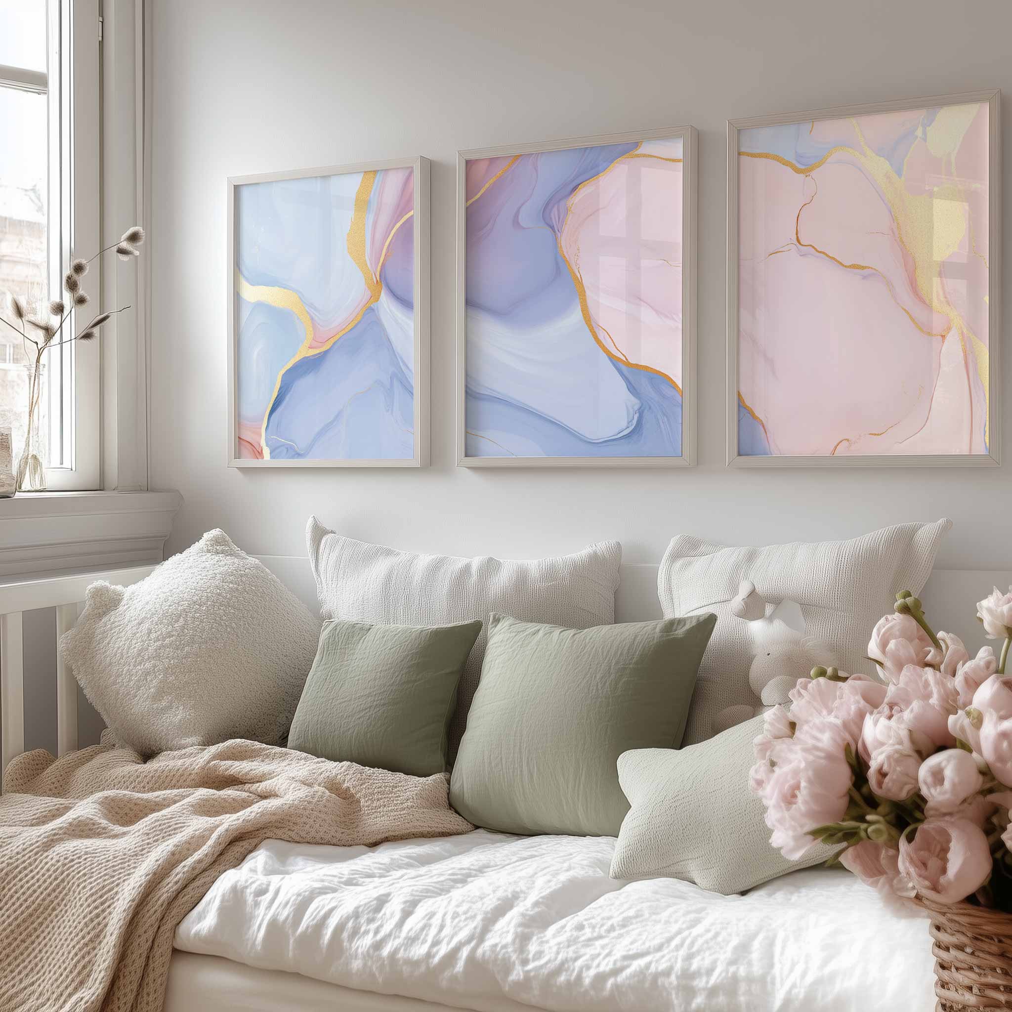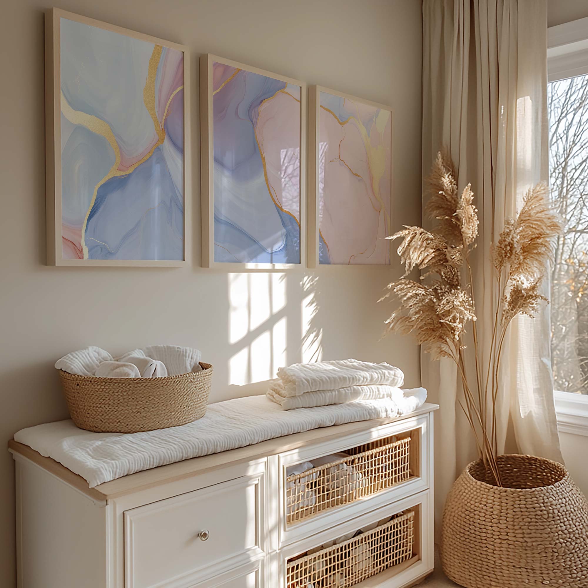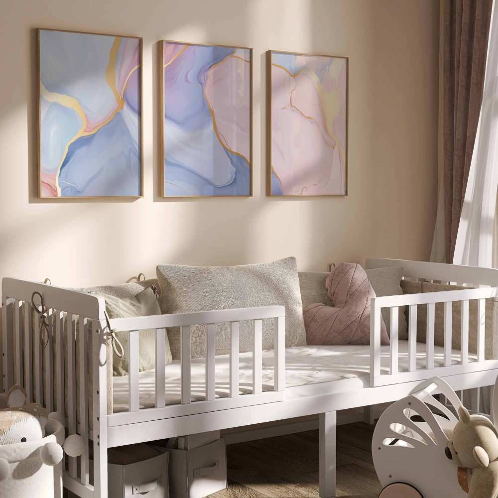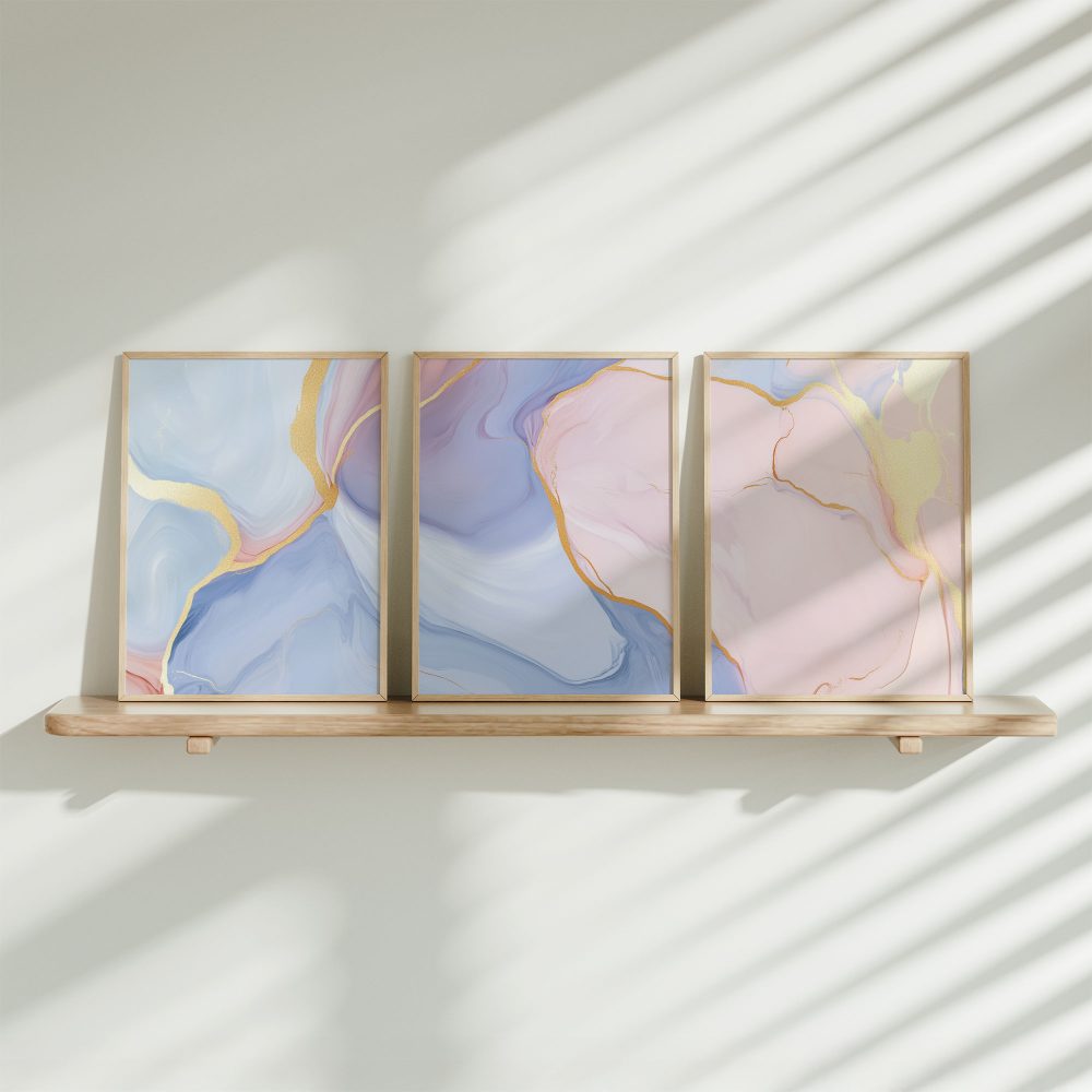 Terug naar collectie / Kinderkamer posters / Whimsical Marble Abstract in Blauw, Roze en Goud