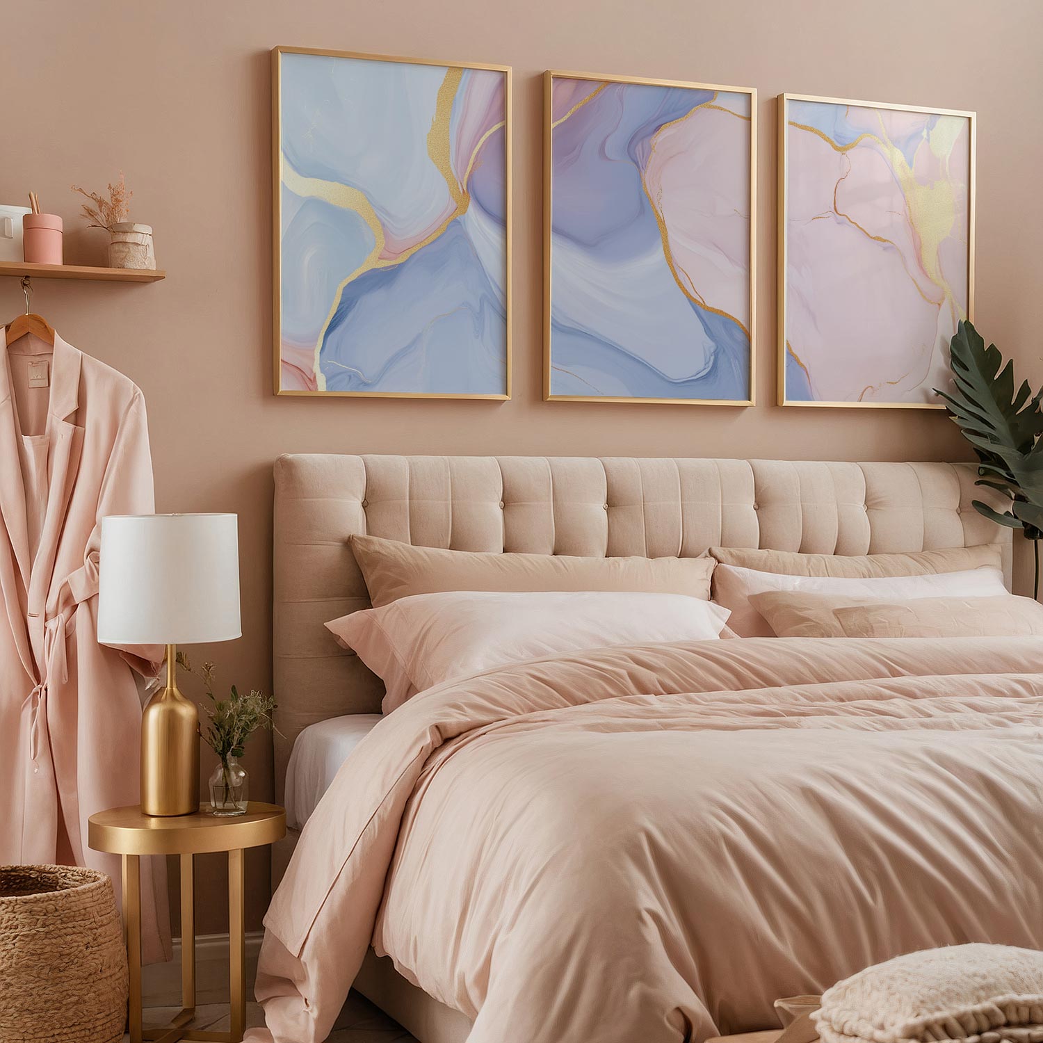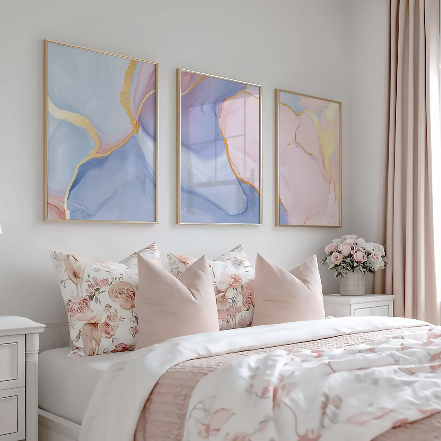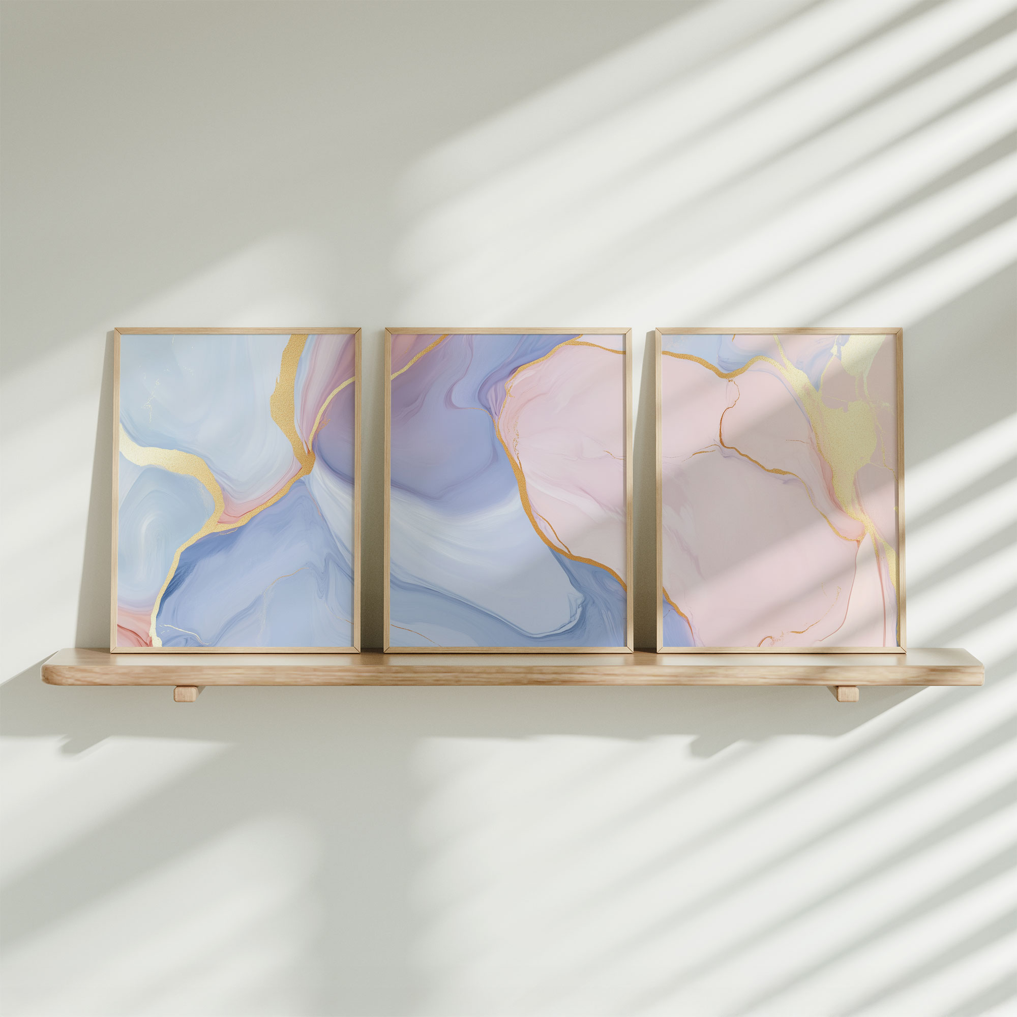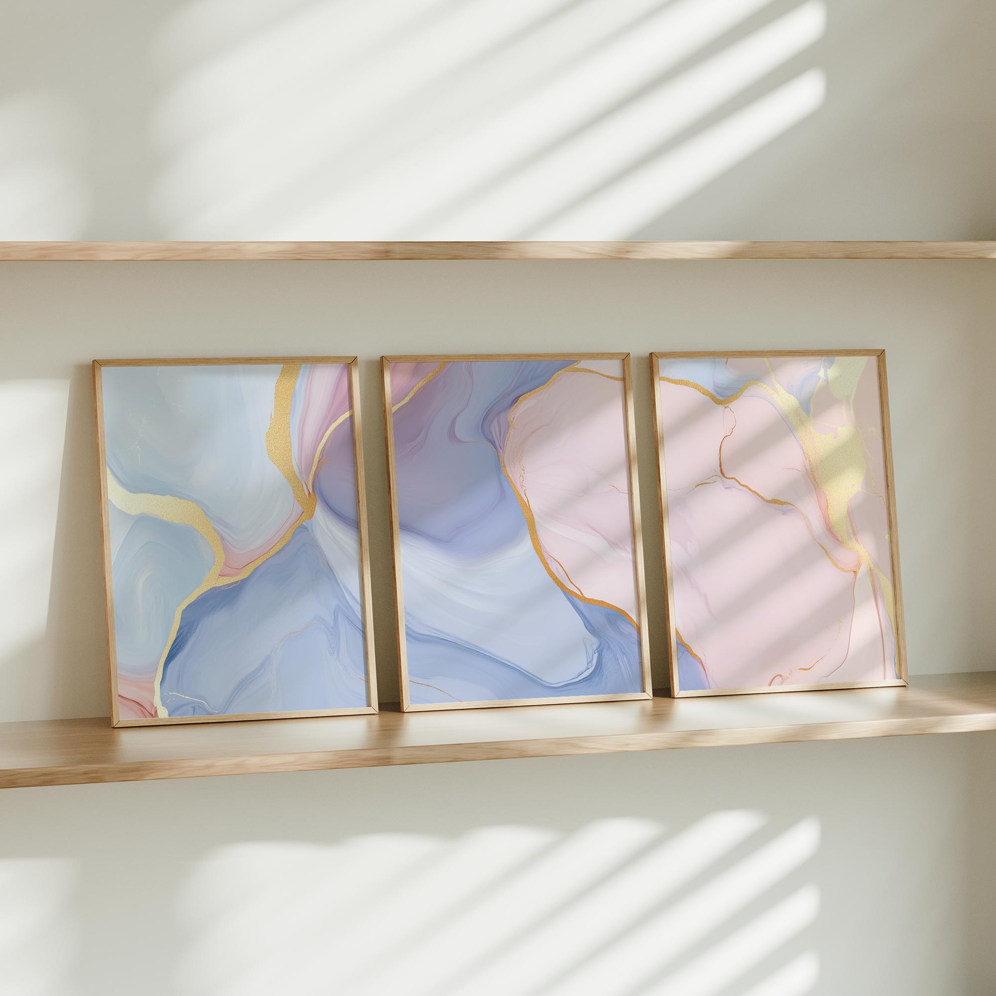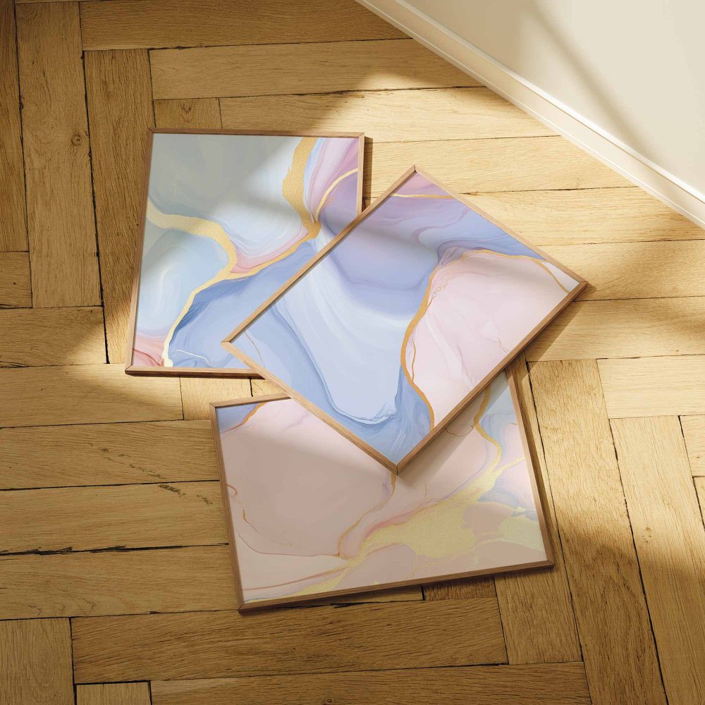 Whimsical Marble Abstract in Blauw, Roze en Goud