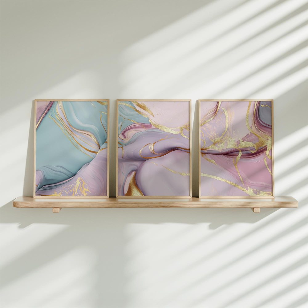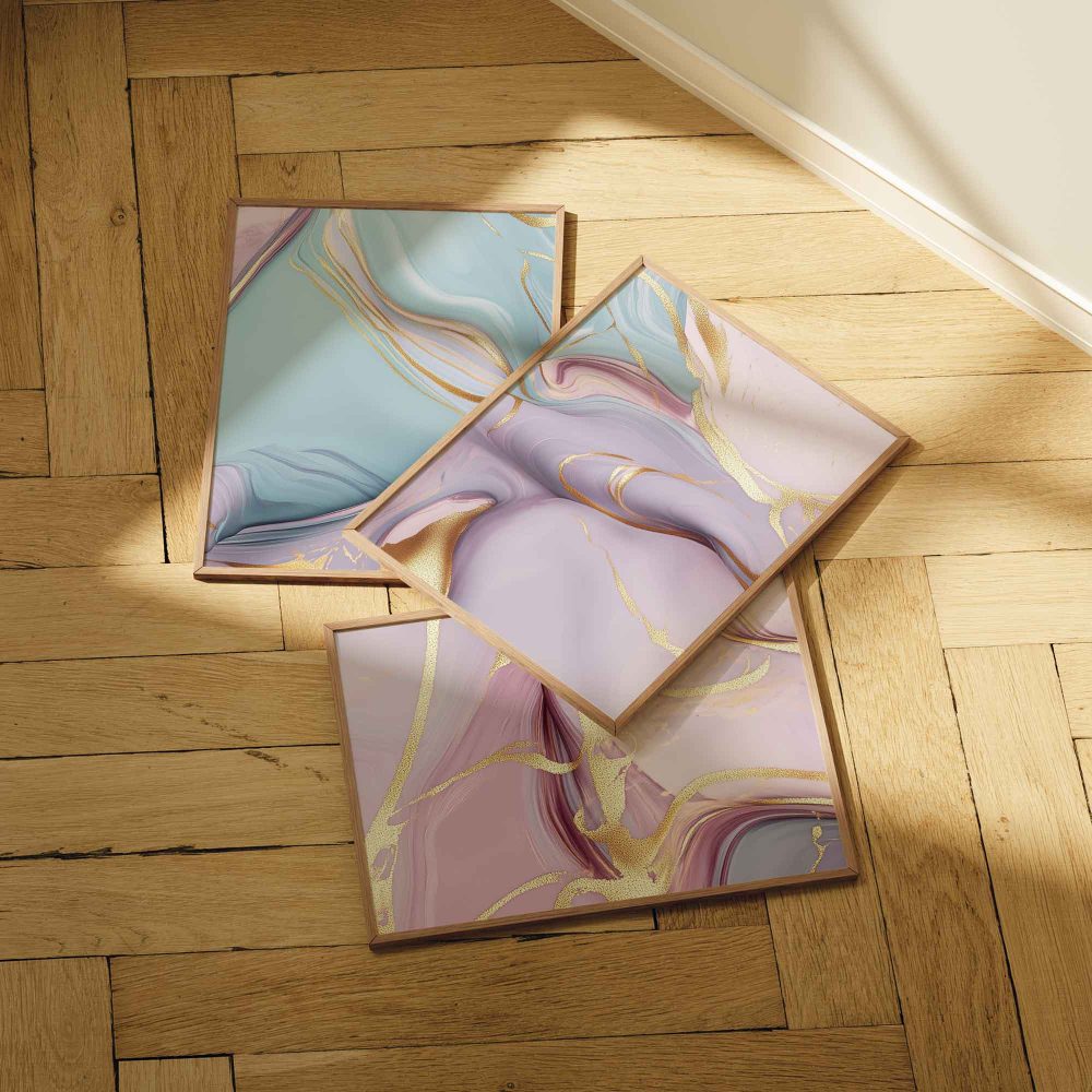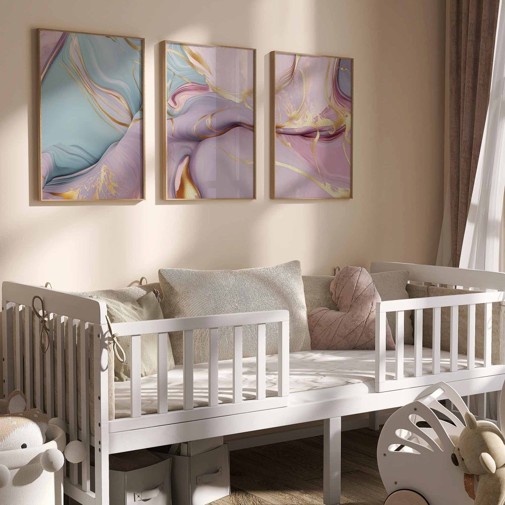 Terug naar collectie / Kinderkamer posters / Whimsical Marble Swirls in Blauw, Roze en Goud