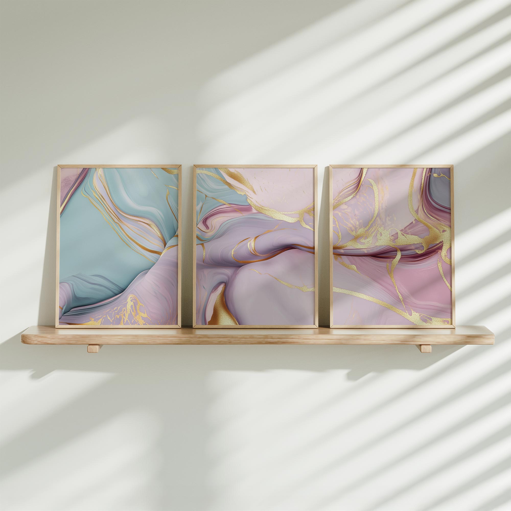 Whimsical Marble Swirls in Blauw, Roze en Goud
