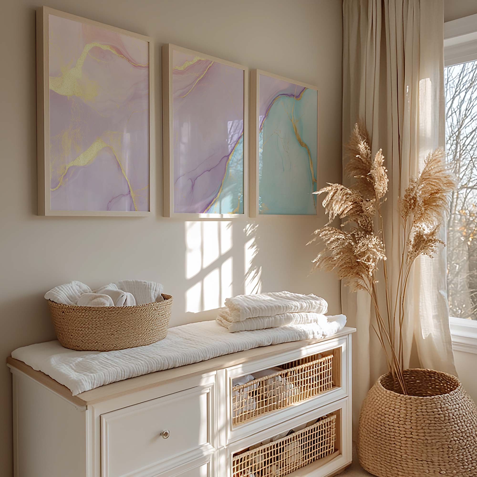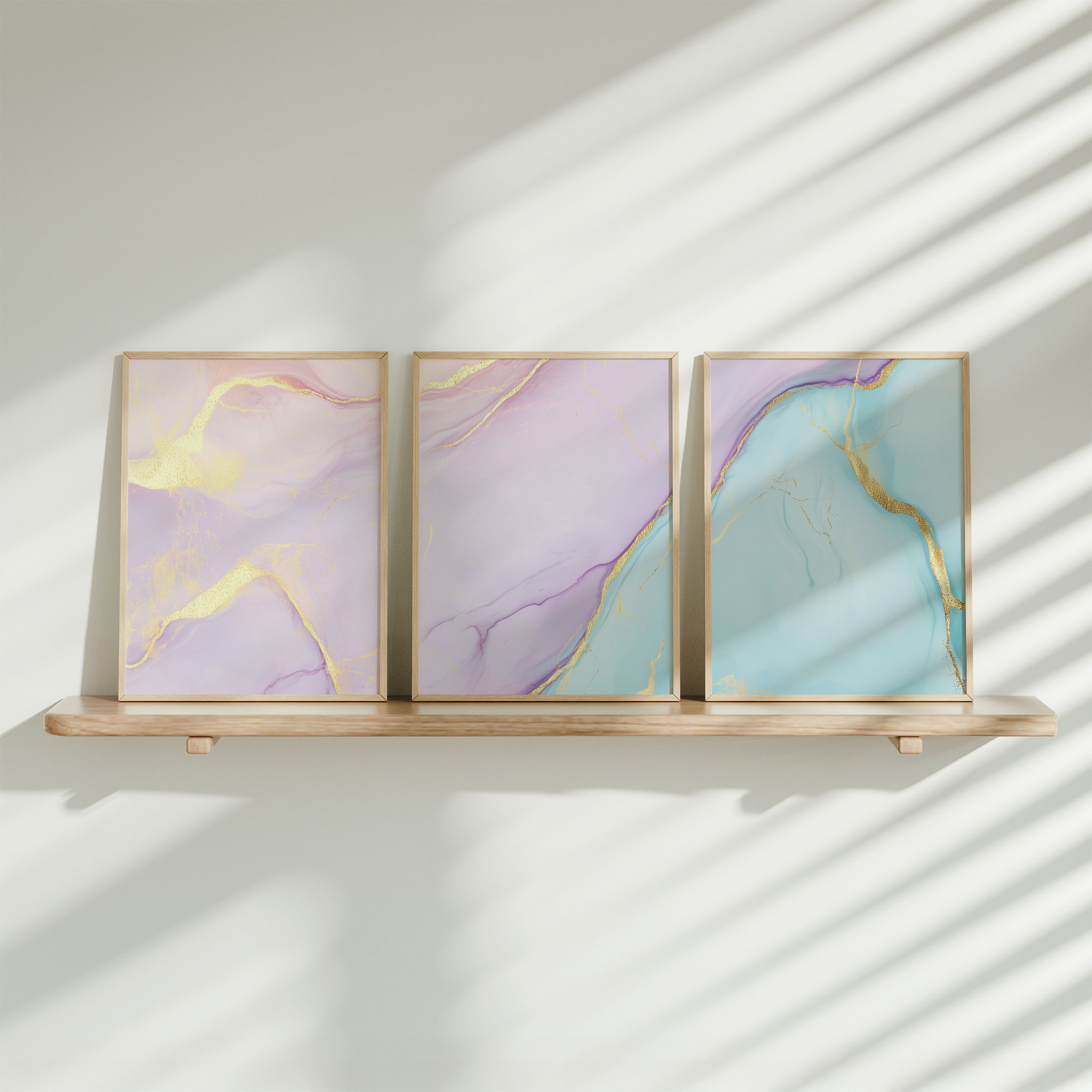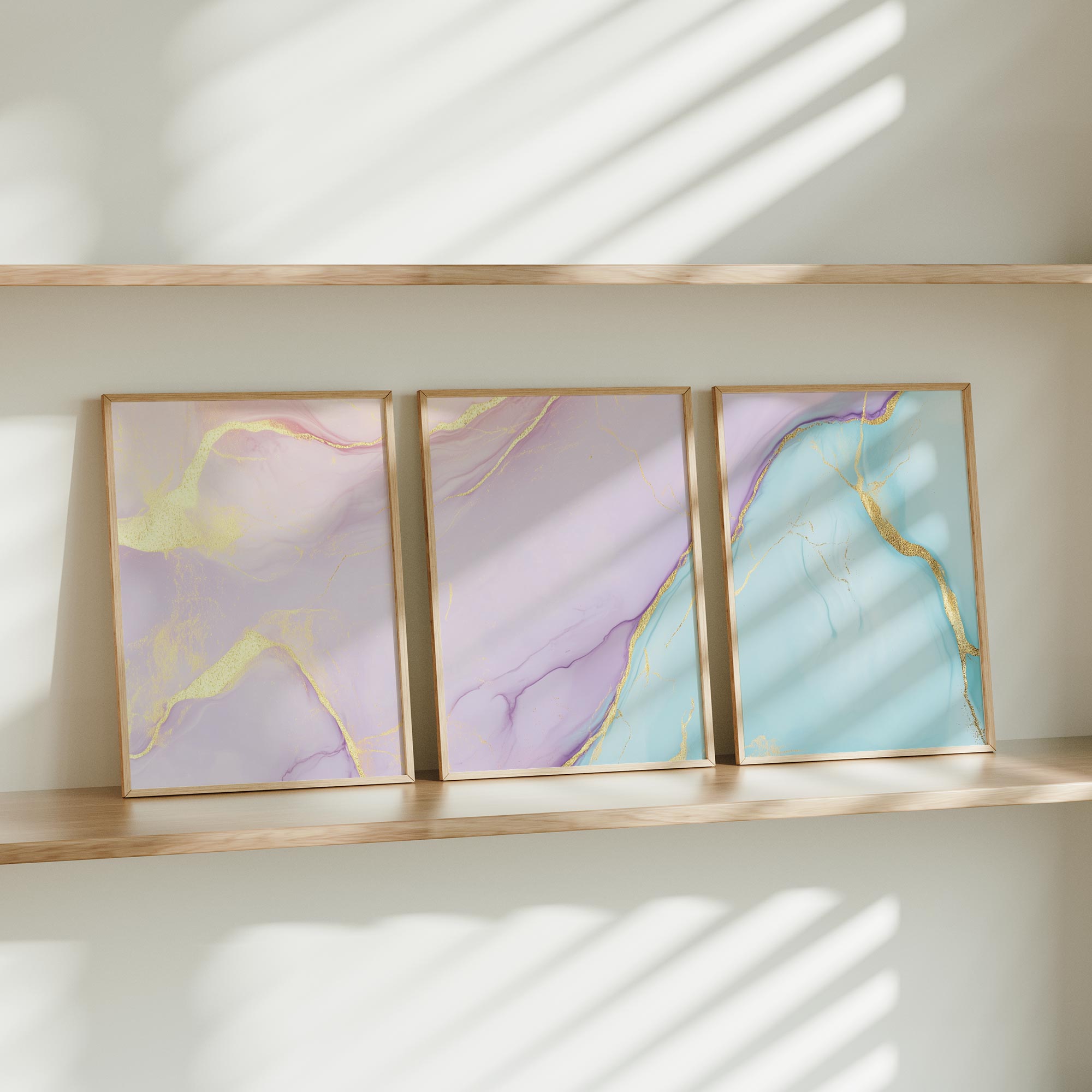 Terug naar collectie / Kinderkamer posters / Whimsical Marble Swirls in Roze, Blauw en Goud