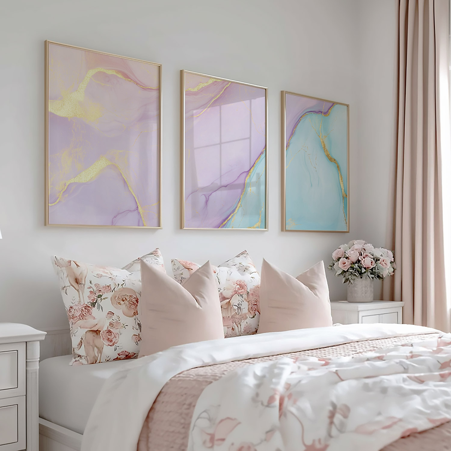 Whimsical Marble Swirls in Roze, Blauw en Goud