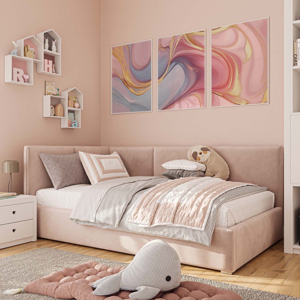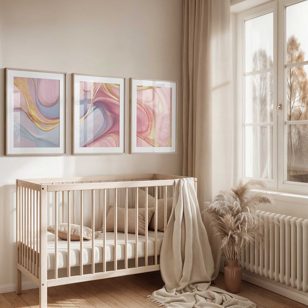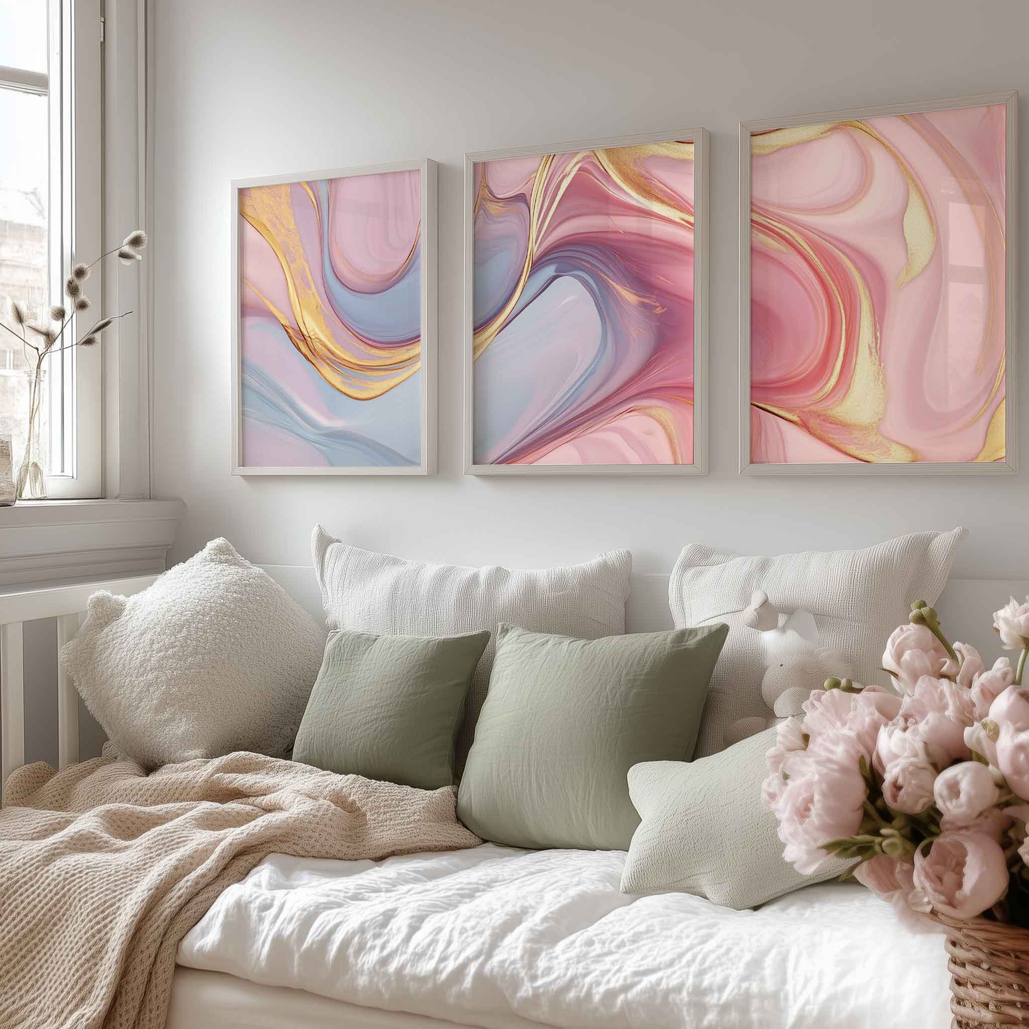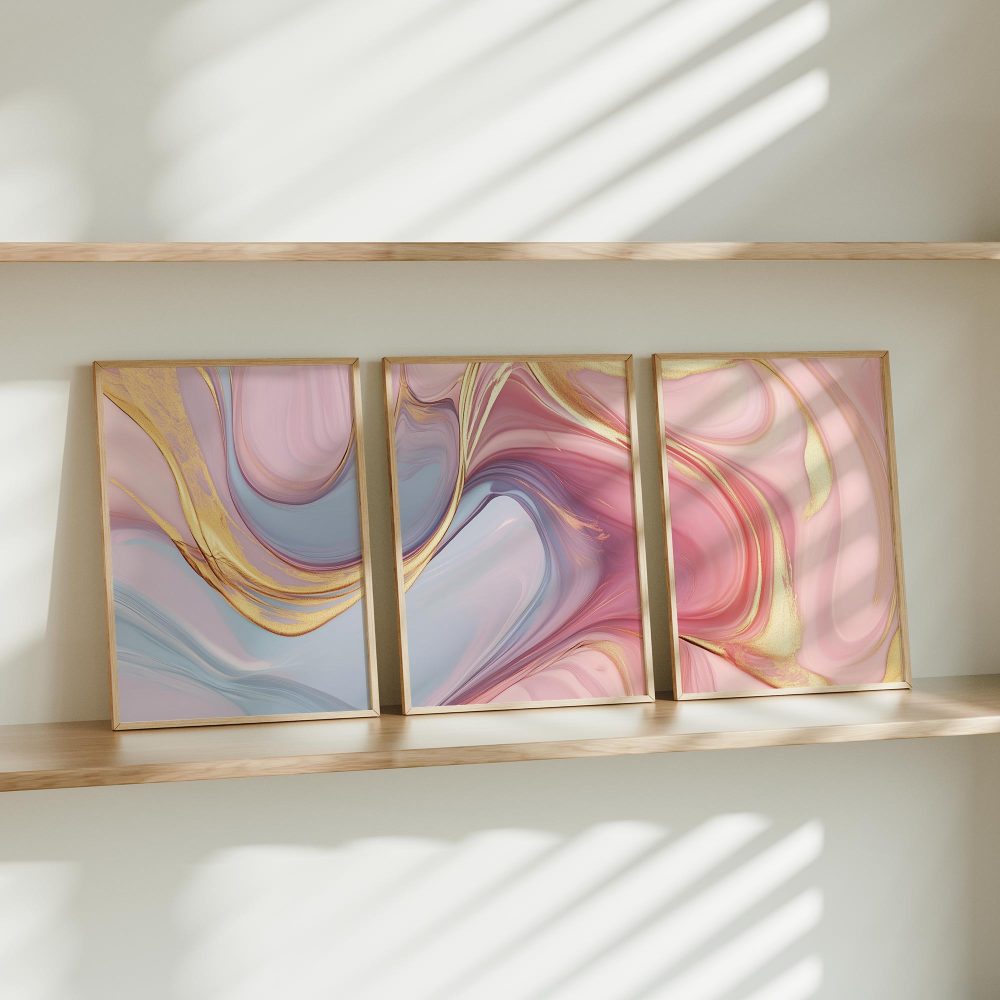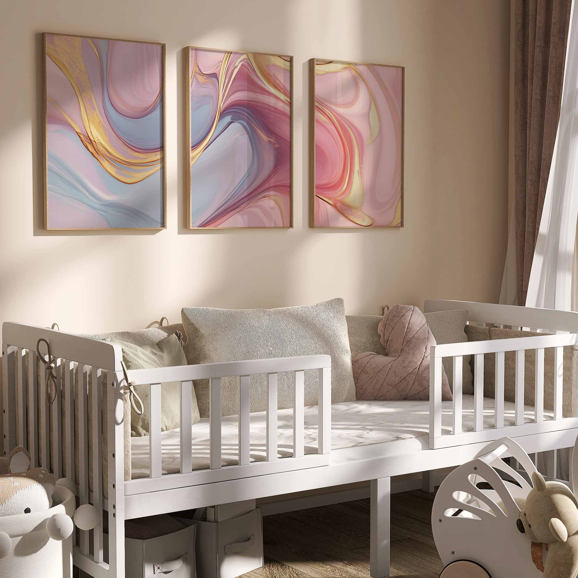 Terug naar collectie / Kinderkamer posters / Whimsical Roze & Goud Abstracte Swirl Wanddecoratie