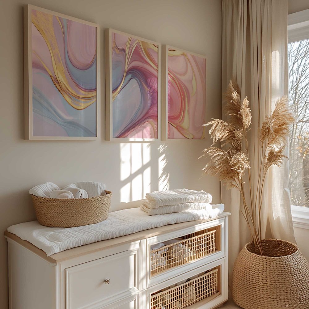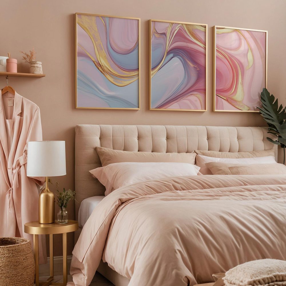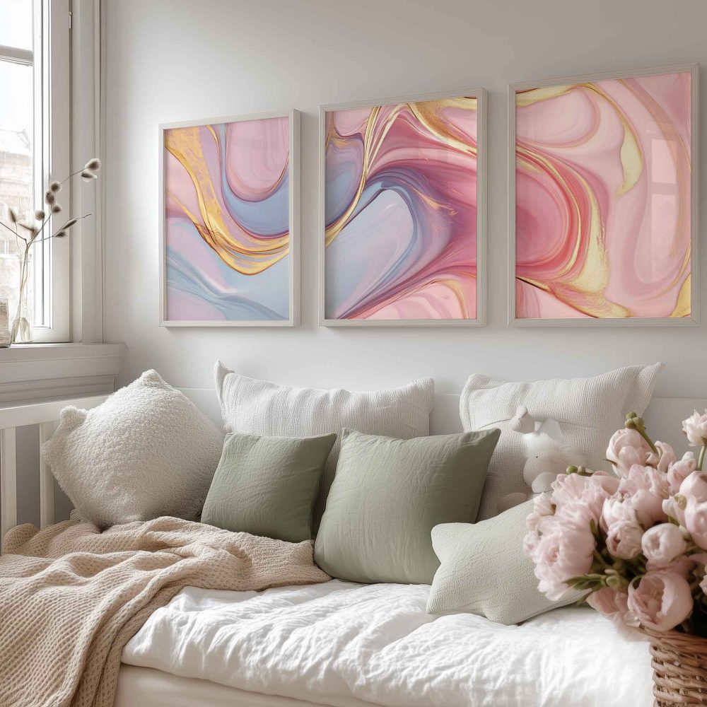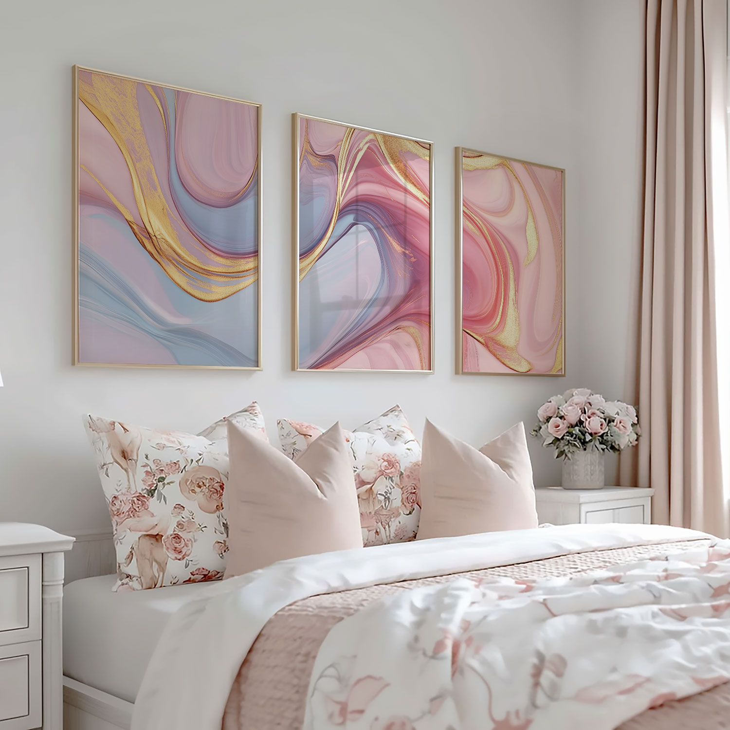 Whimsical Roze & Goud Abstracte Swirl Wanddecoratie