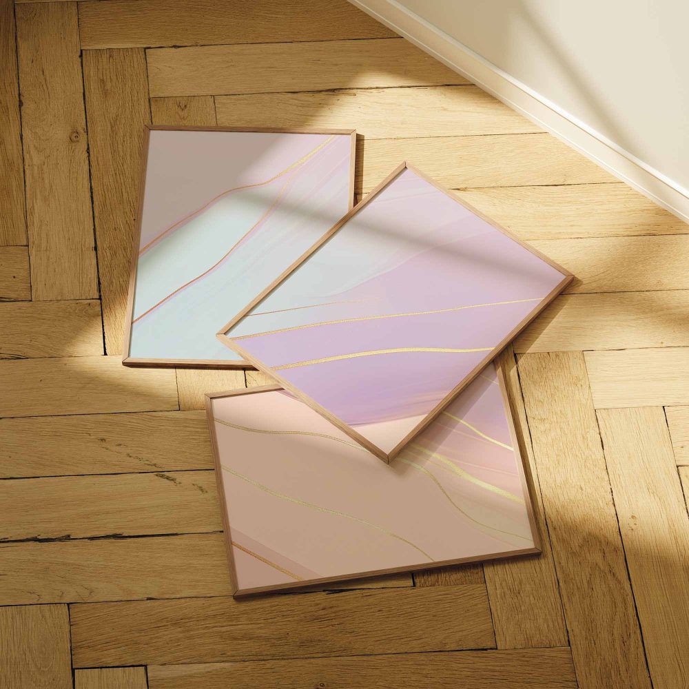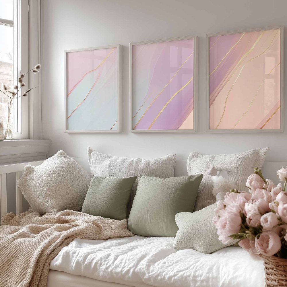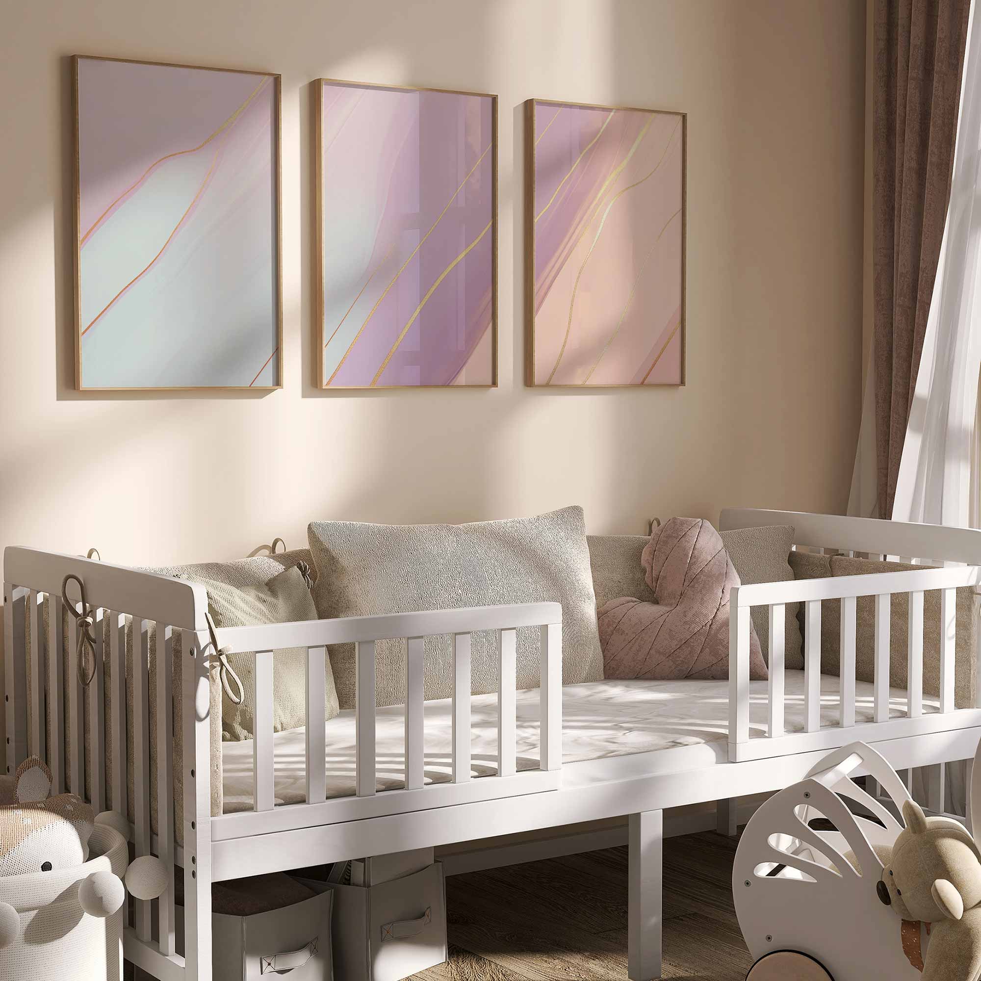 Terug naar collectie / Kinderkamer posters / Whimsical Roze & Paars Abstract met Gouden Accenten