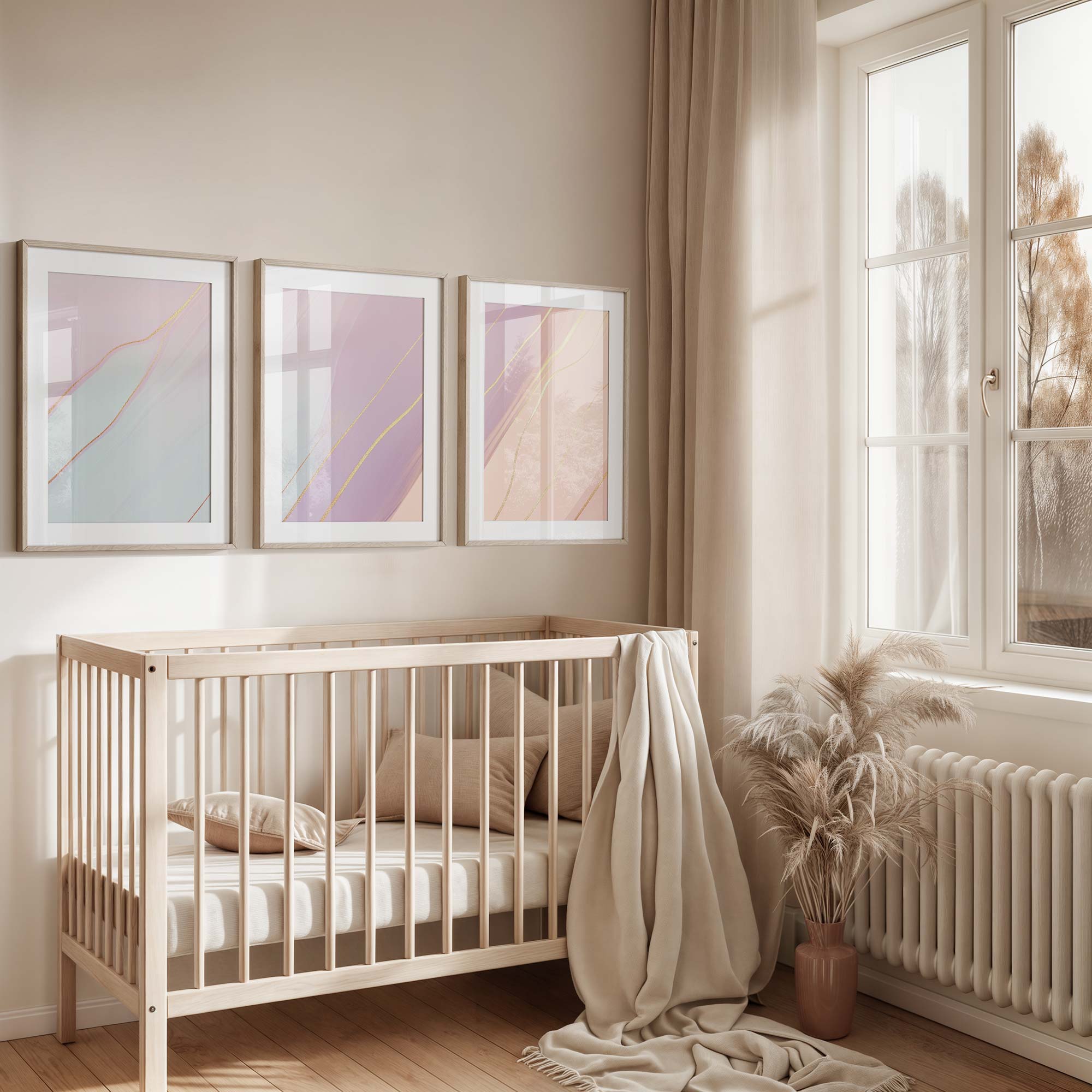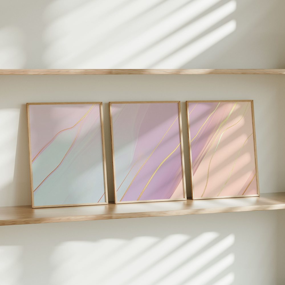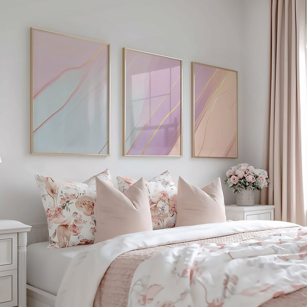 Terug naar collectie / Kinderkamer posters / Whimsical Roze & Paars Abstract met Gouden Accenten