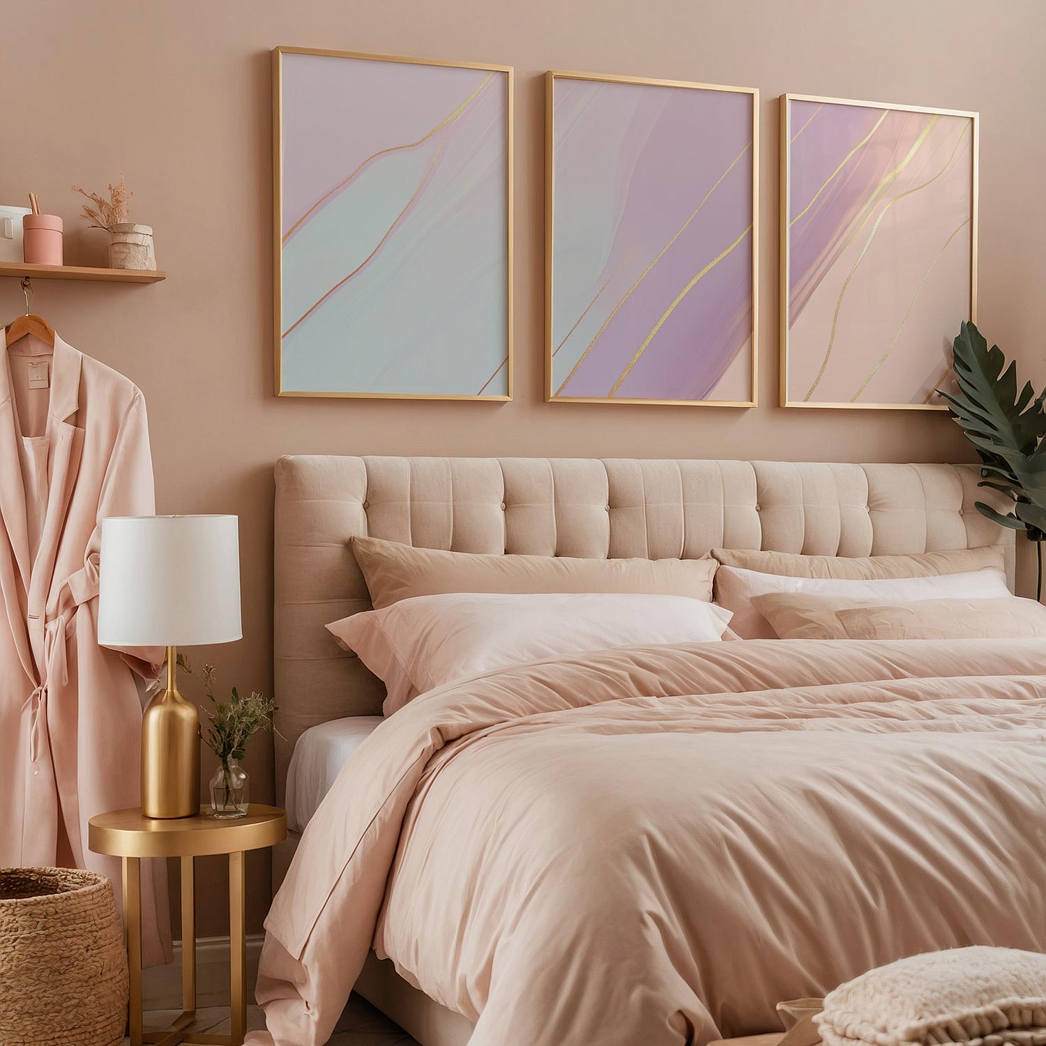 Whimsical Roze & Paars Abstract met Gouden Accenten