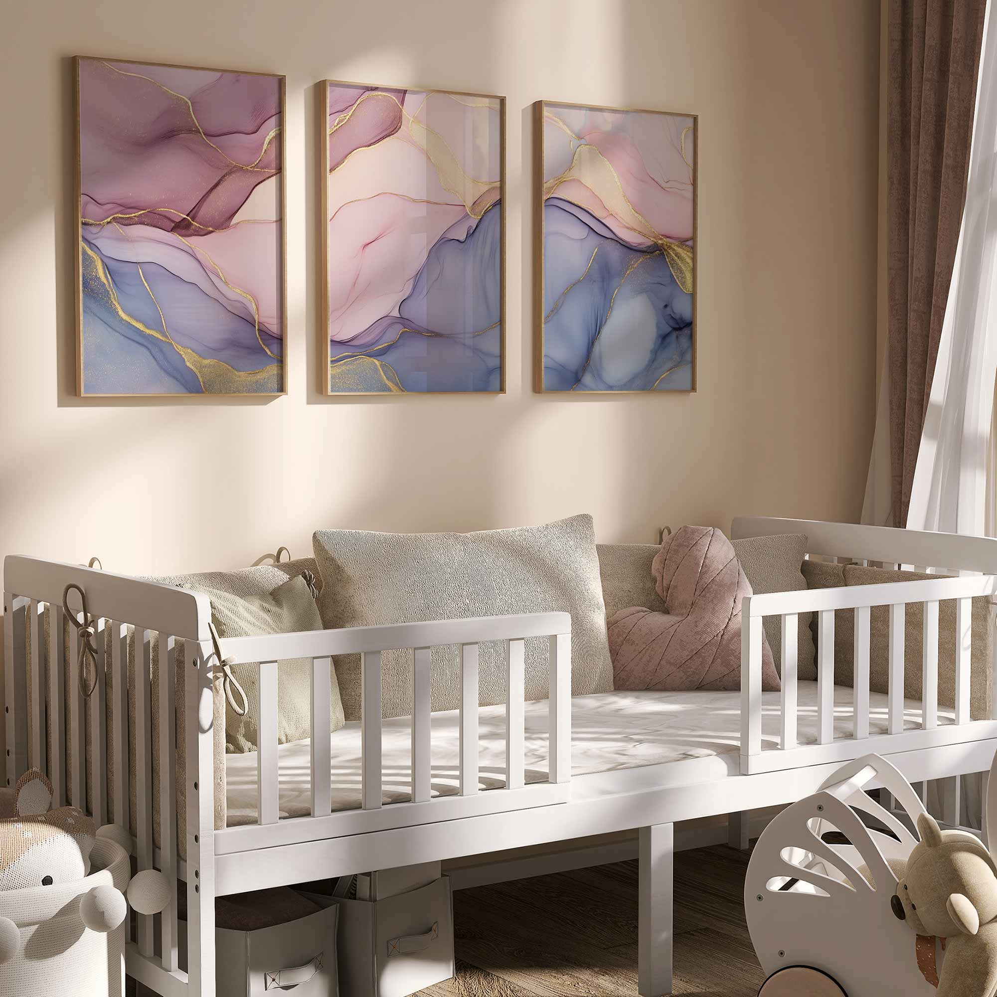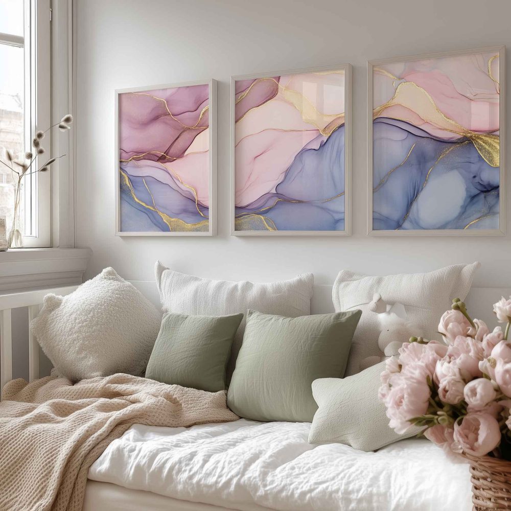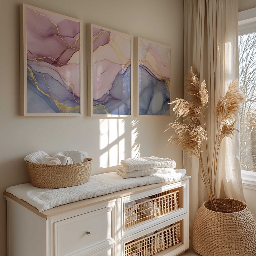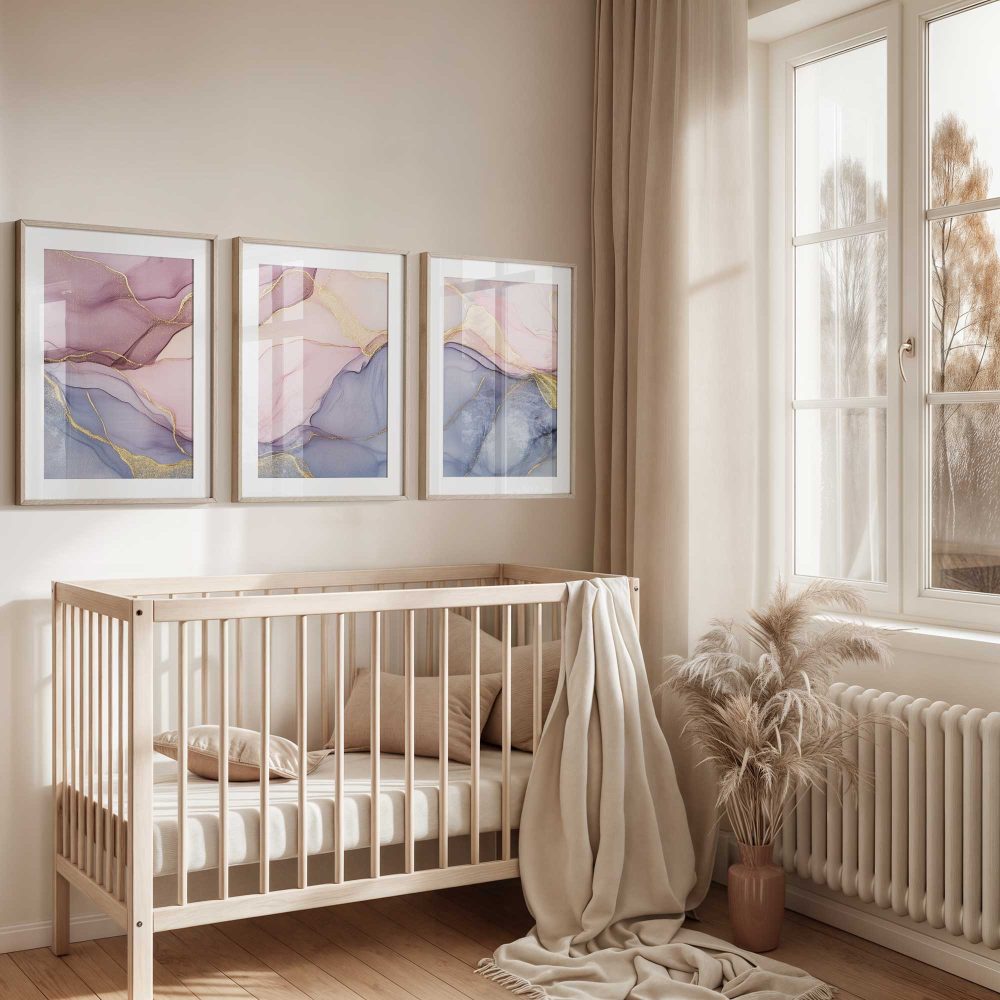 Terug naar collectie / Kinderkamer posters / Whimsical Swirls in Pink, Purple & Blue – Luxe Abstract Design