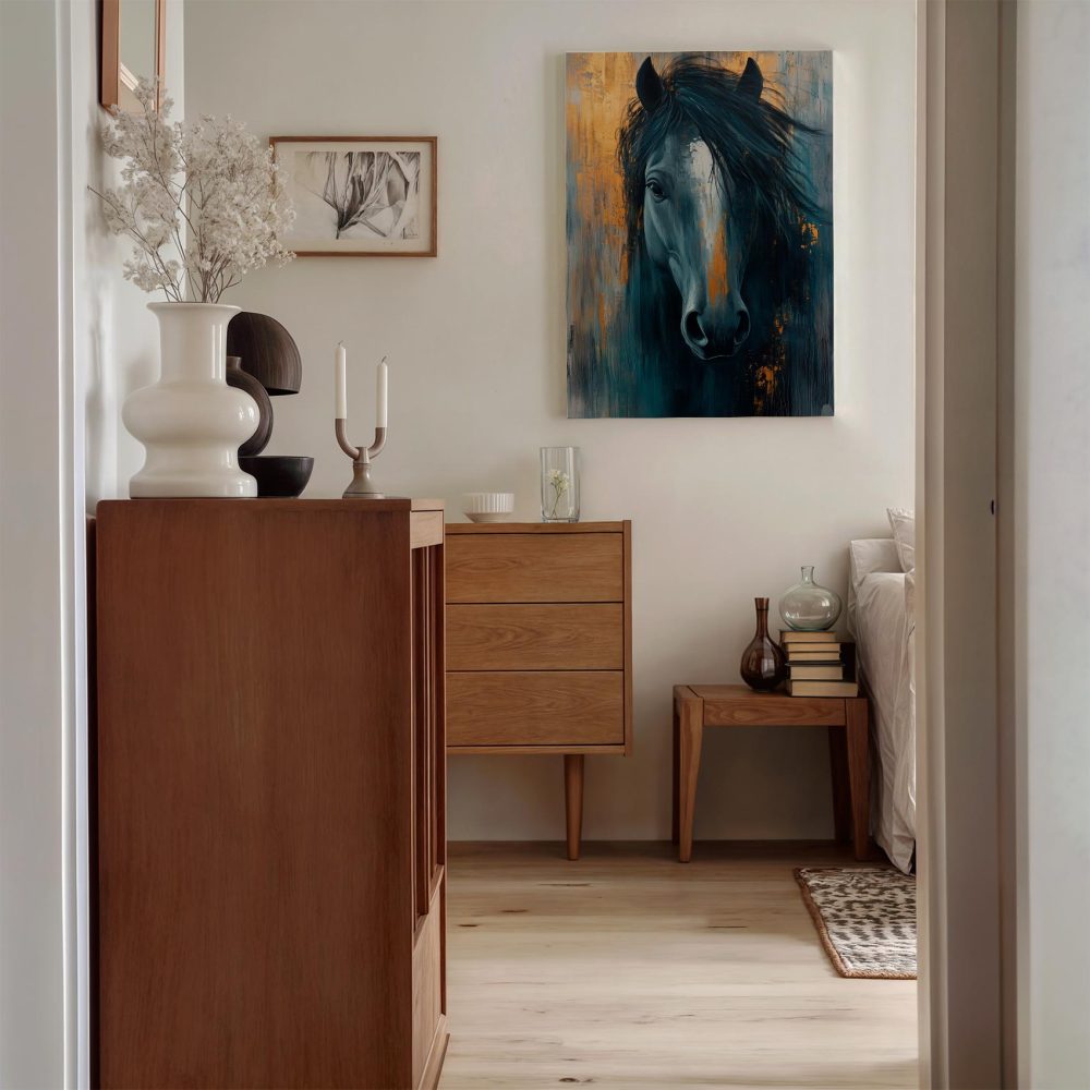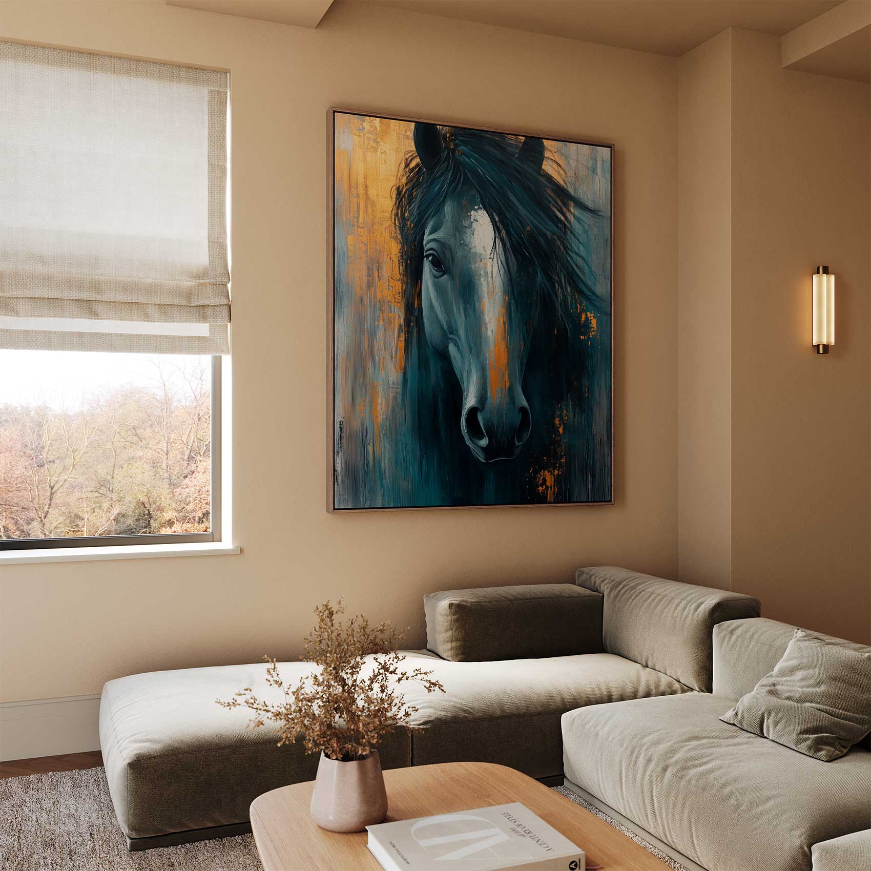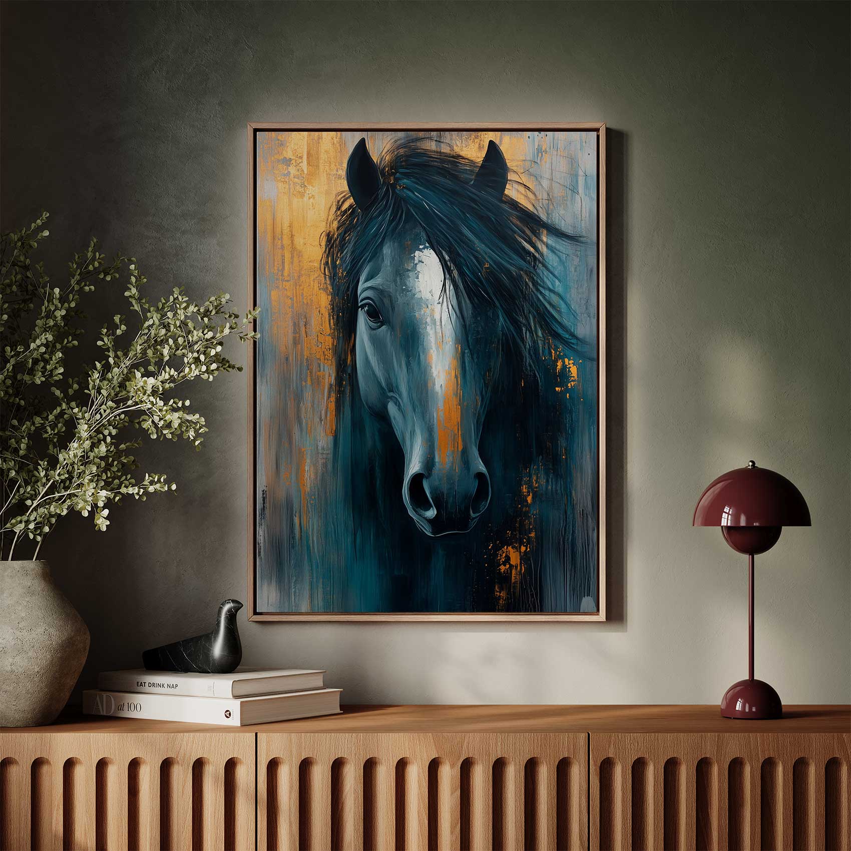 Terug naar collectie / Schilderijen / Dieren Schilderij / Wild Blauw Paardenportret
