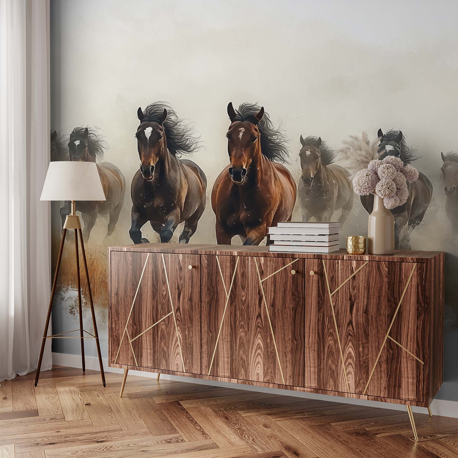 Wilde paarden in galop behang