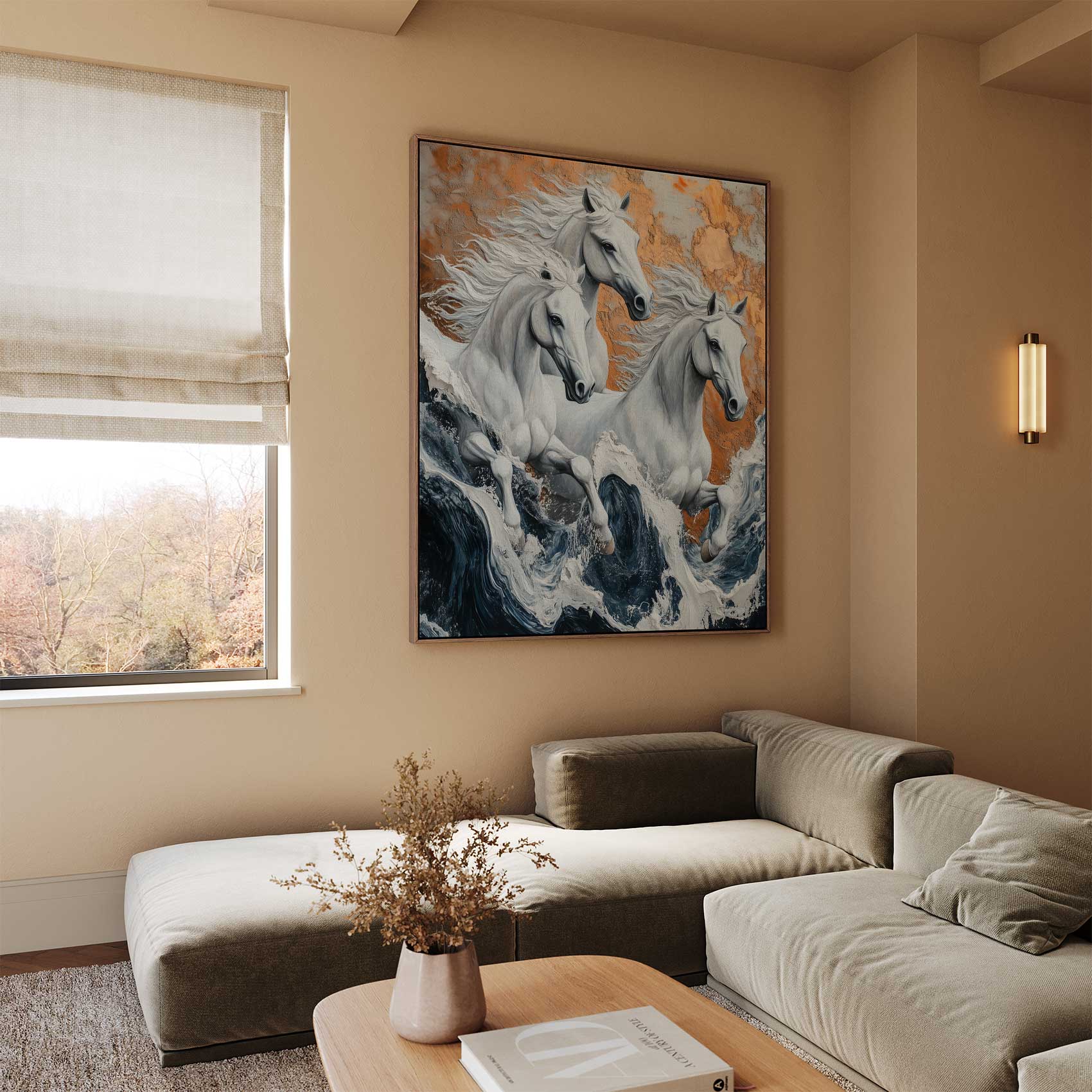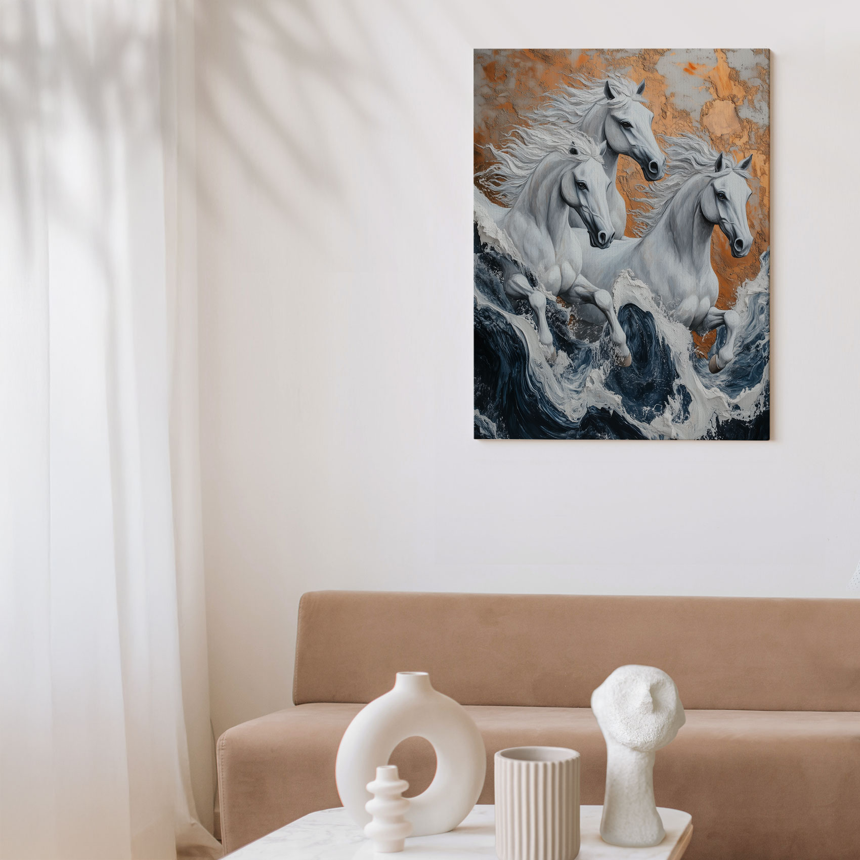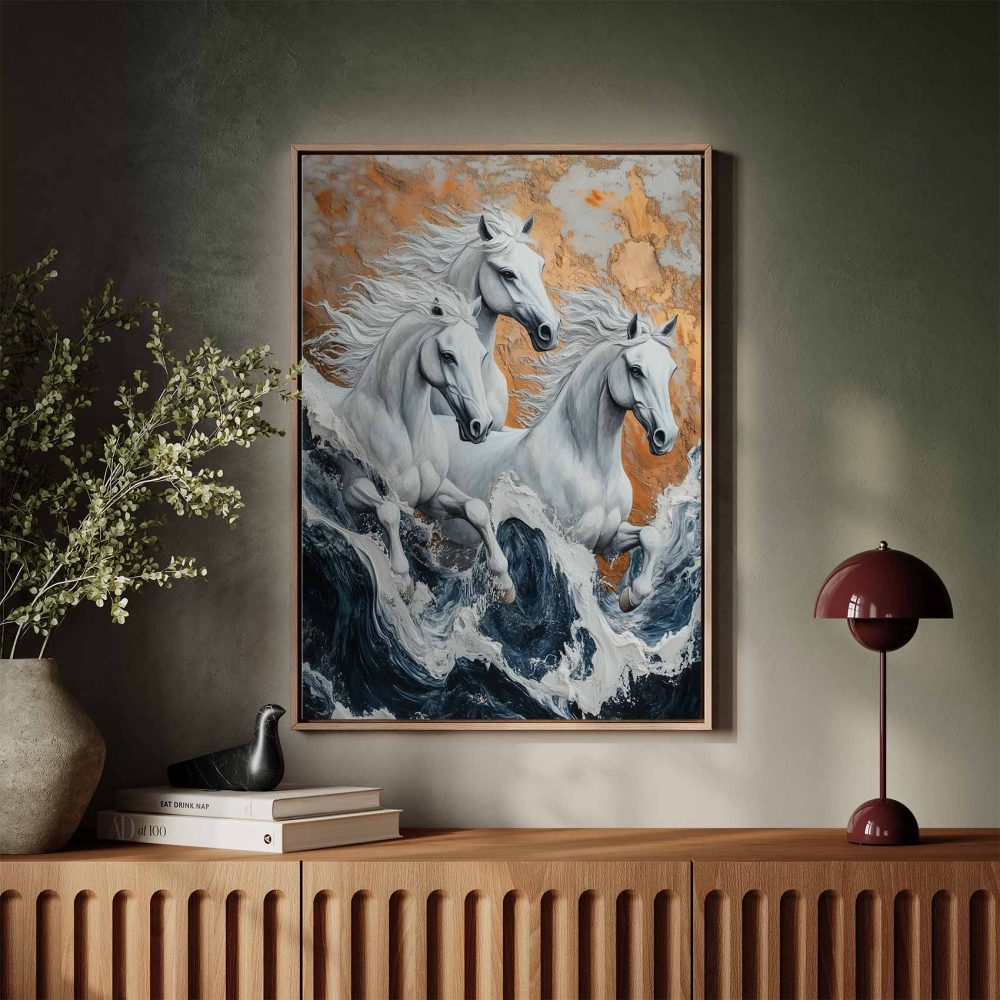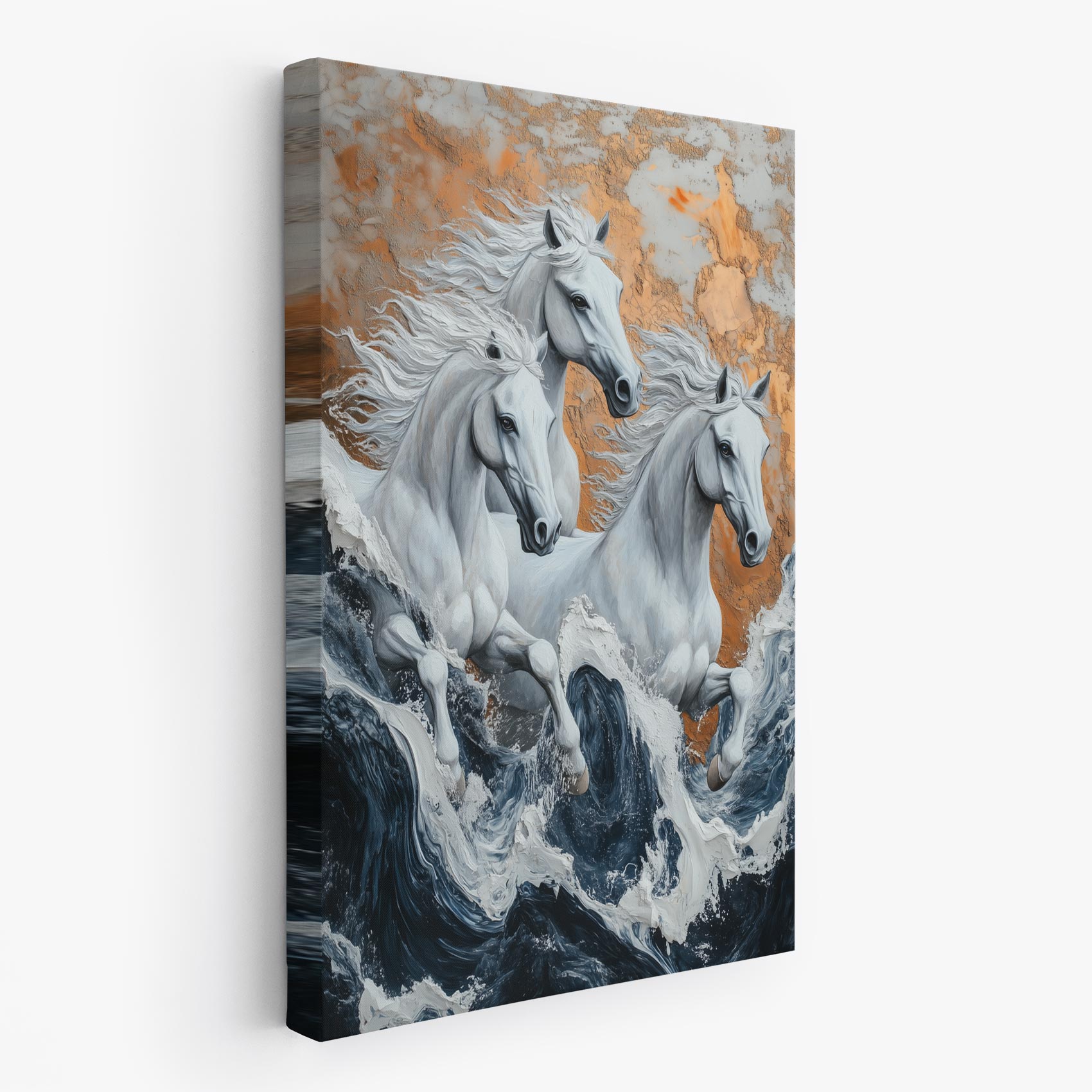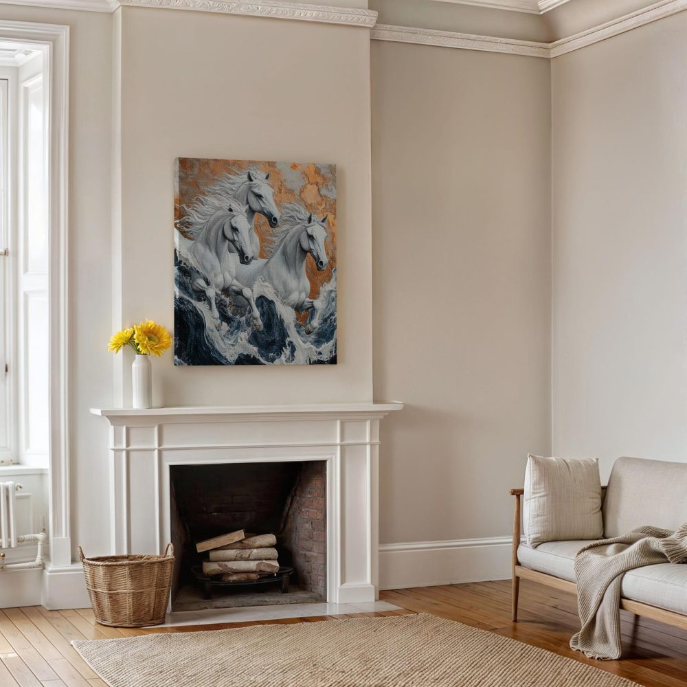 Terug naar collectie / Schilderijen / Dieren Schilderij / Wilde paarden in stormzee