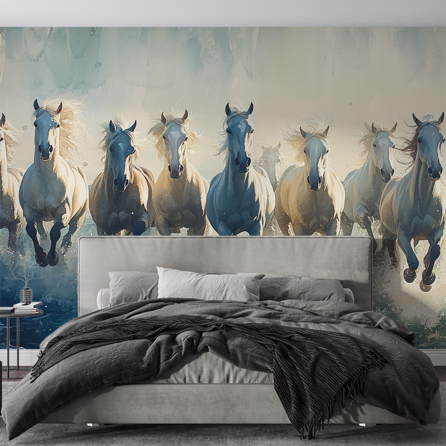 Wilde paarden in volle galop behang