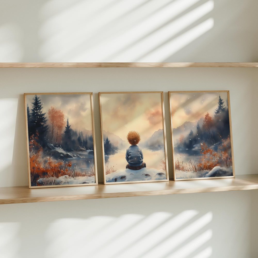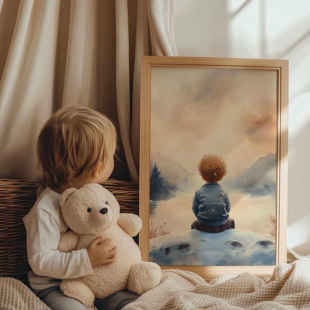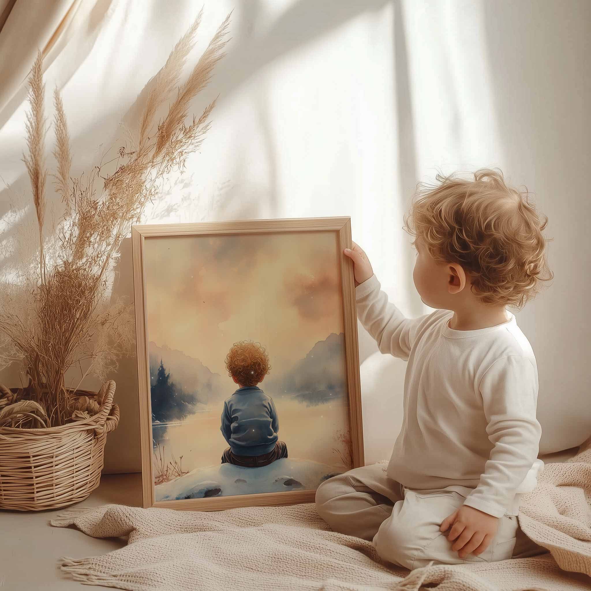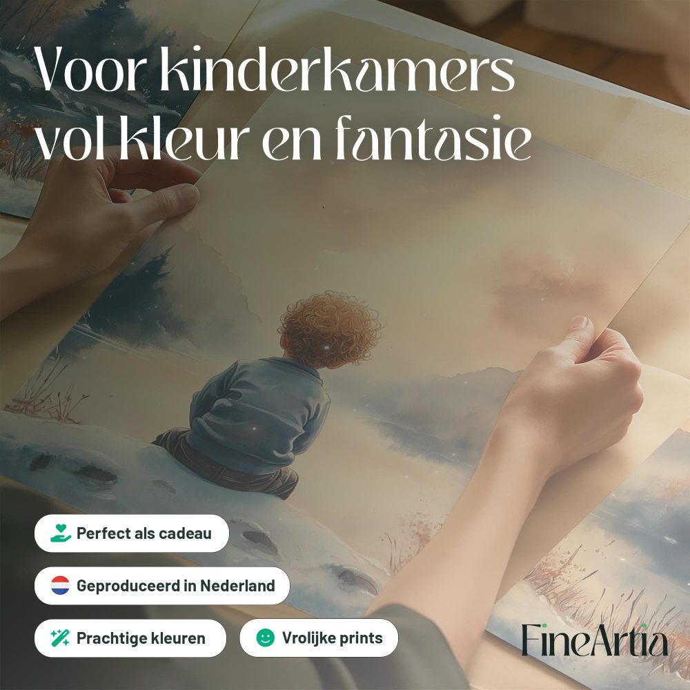 Terug naar collectie / Kinderkamer posters / Wintertranquilliteit: Kind aan Sneeuwmeer