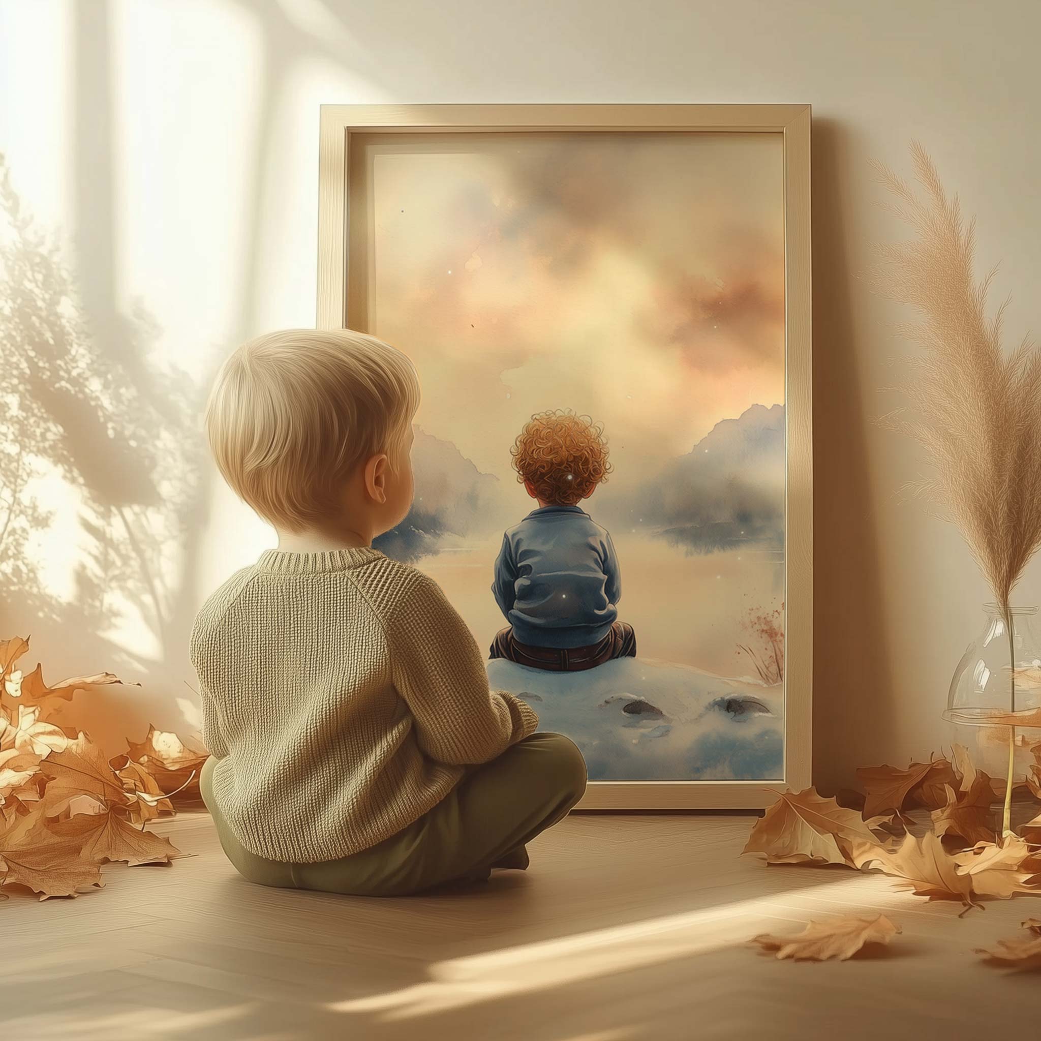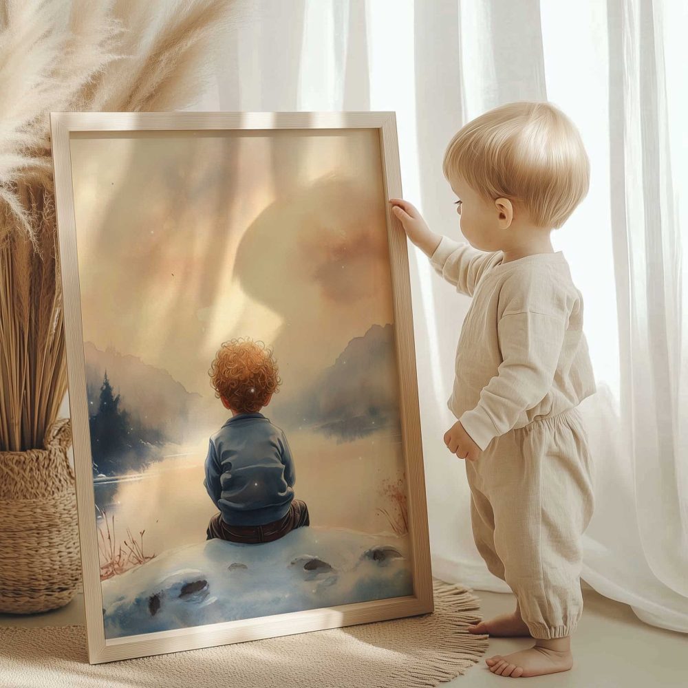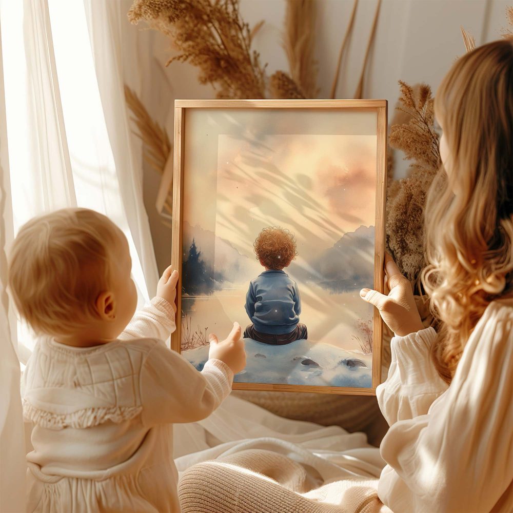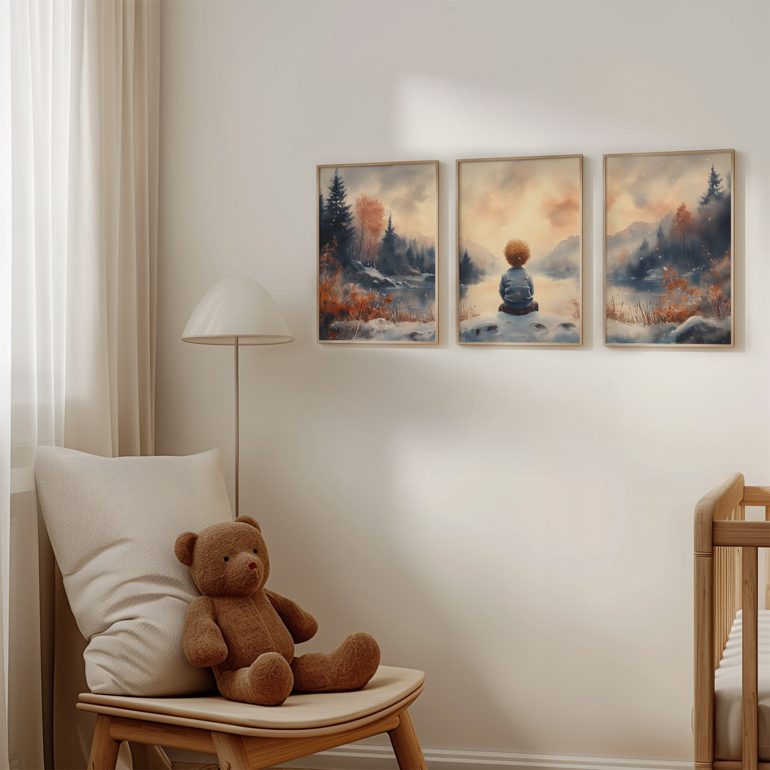 Terug naar collectie / Kinderkamer posters / Wintertranquilliteit: Kind aan Sneeuwmeer