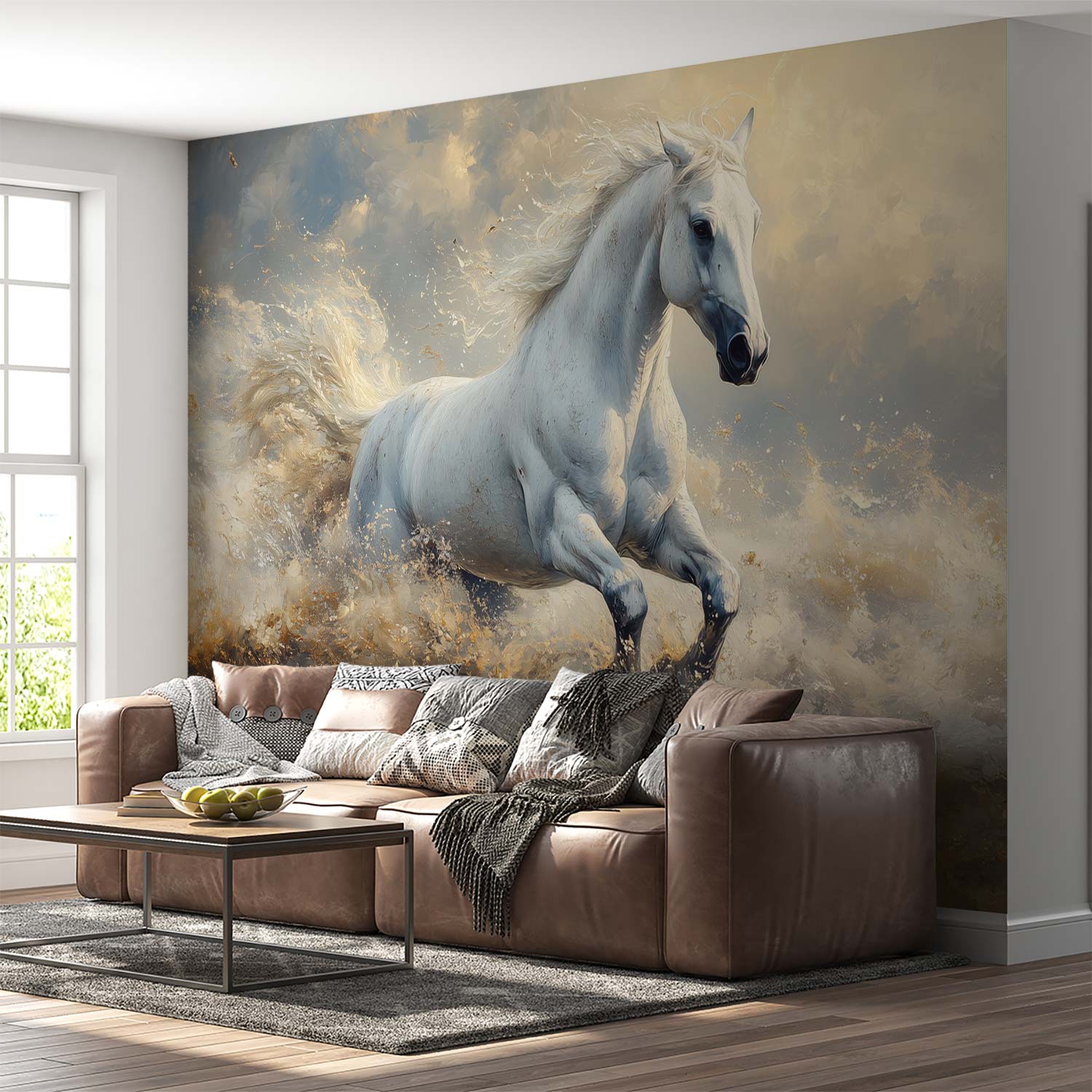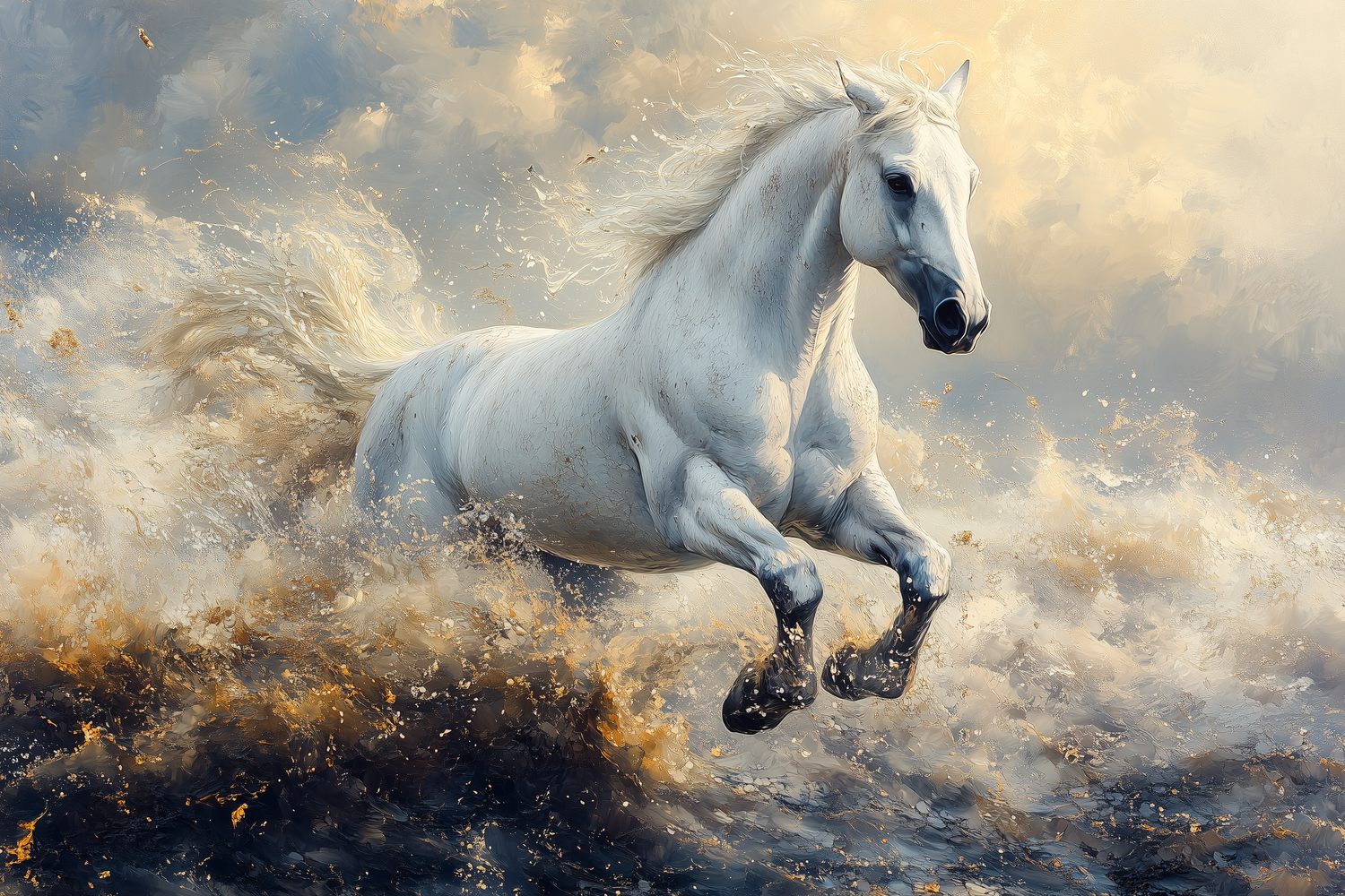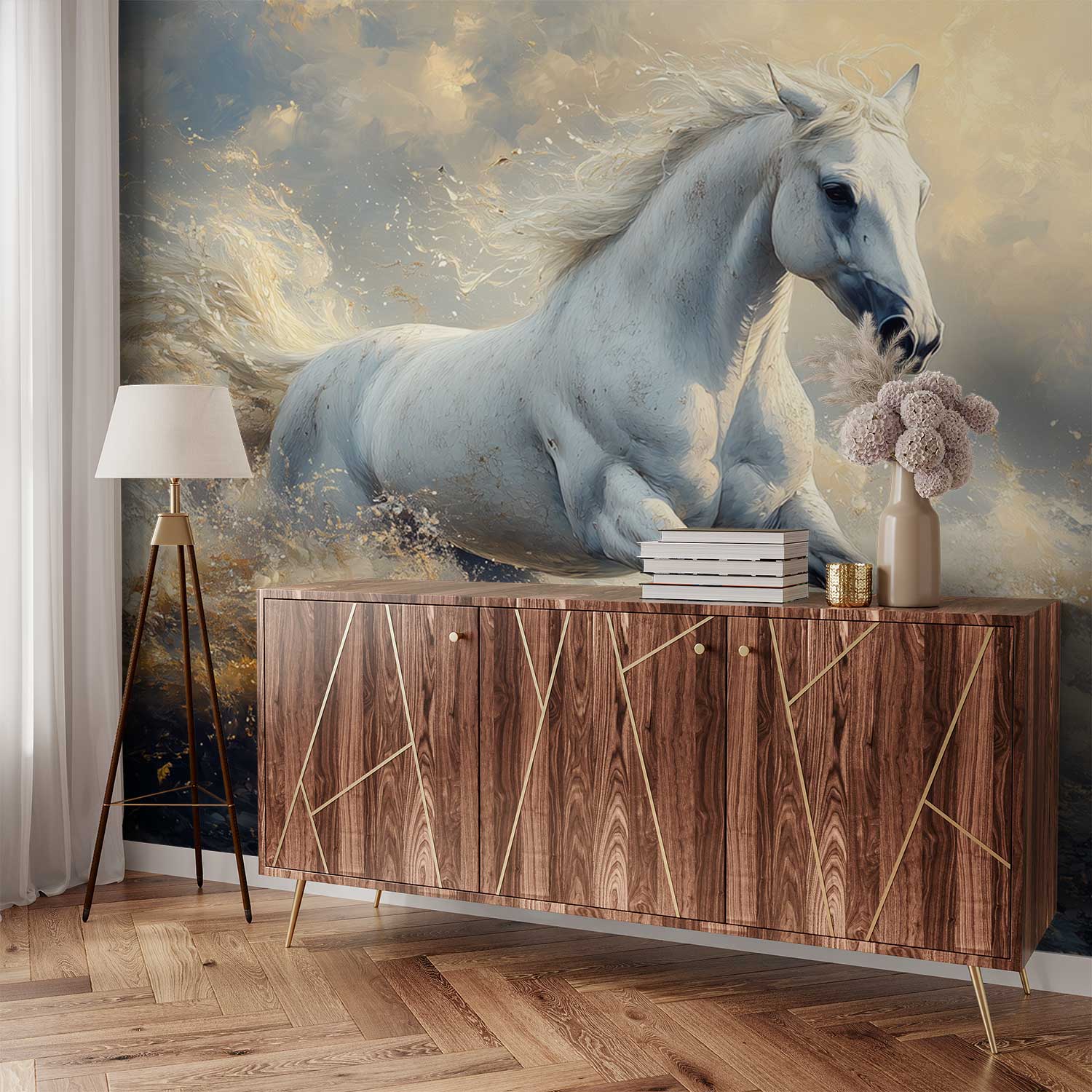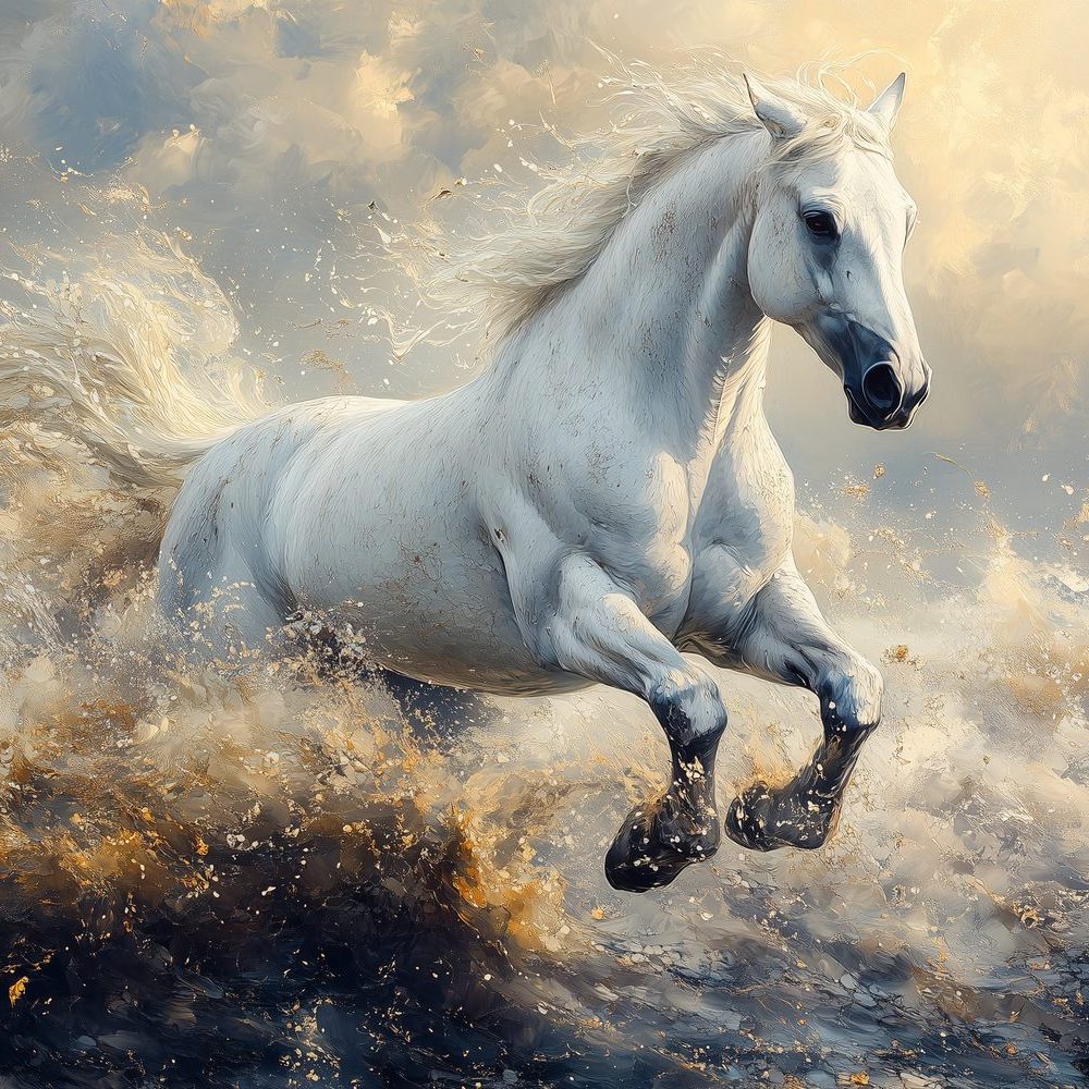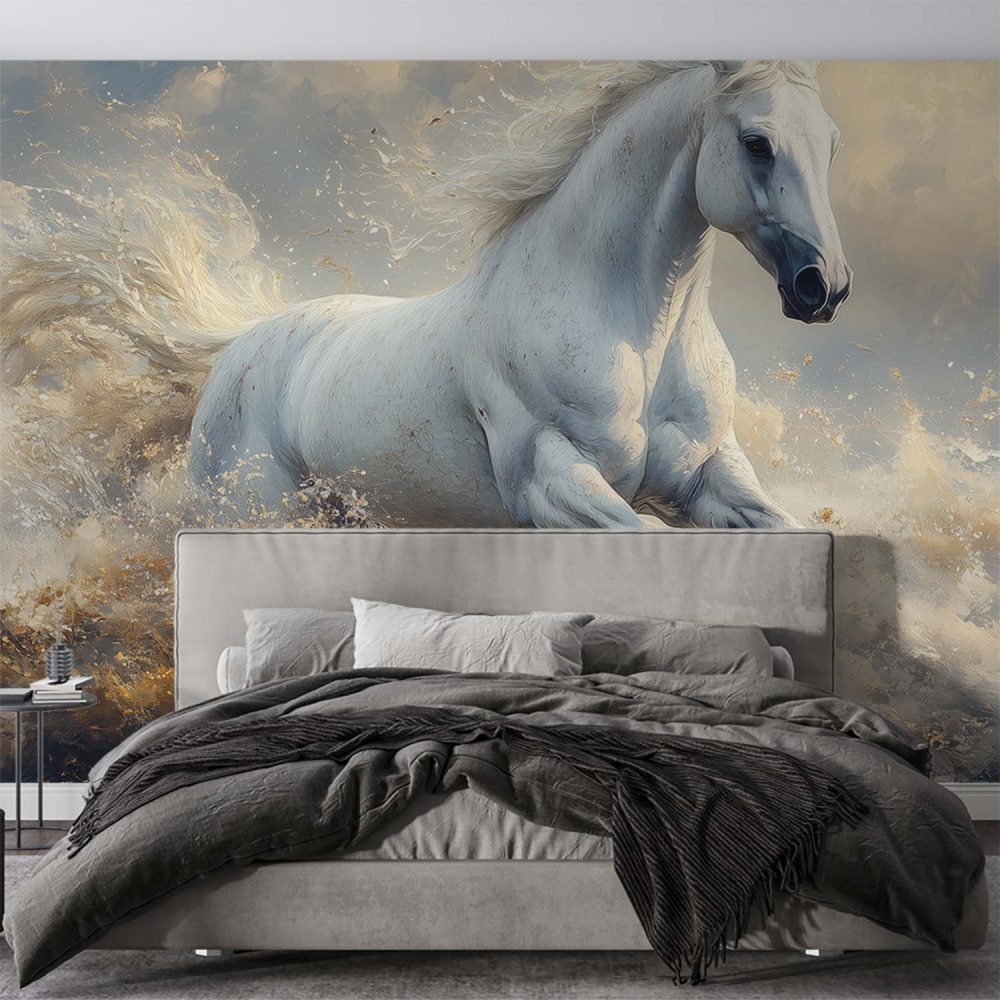 Terug naar collectie / Behang / Wit Paard Galoppeert Door Water behang