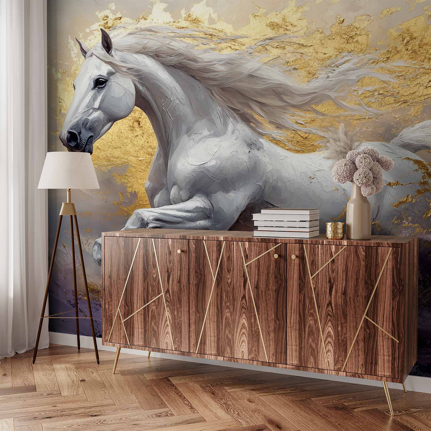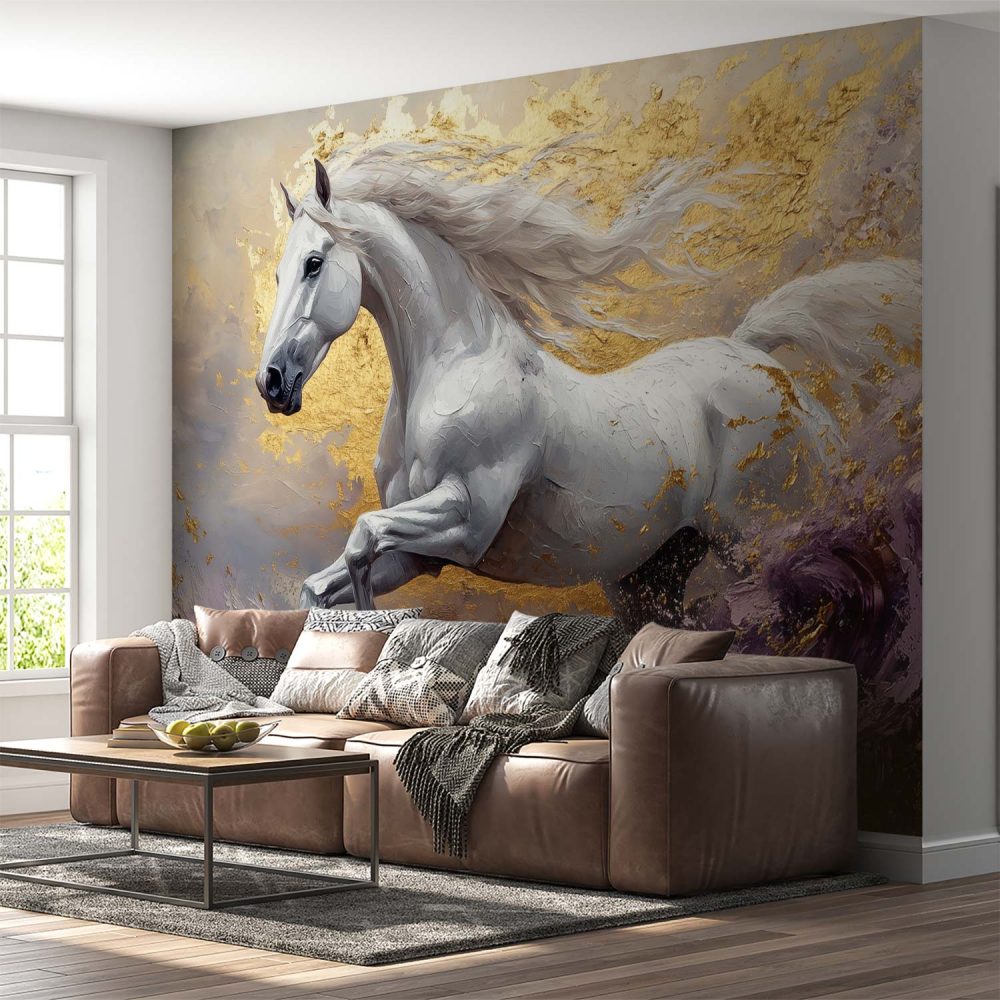 Wit Paard in Beweging behang