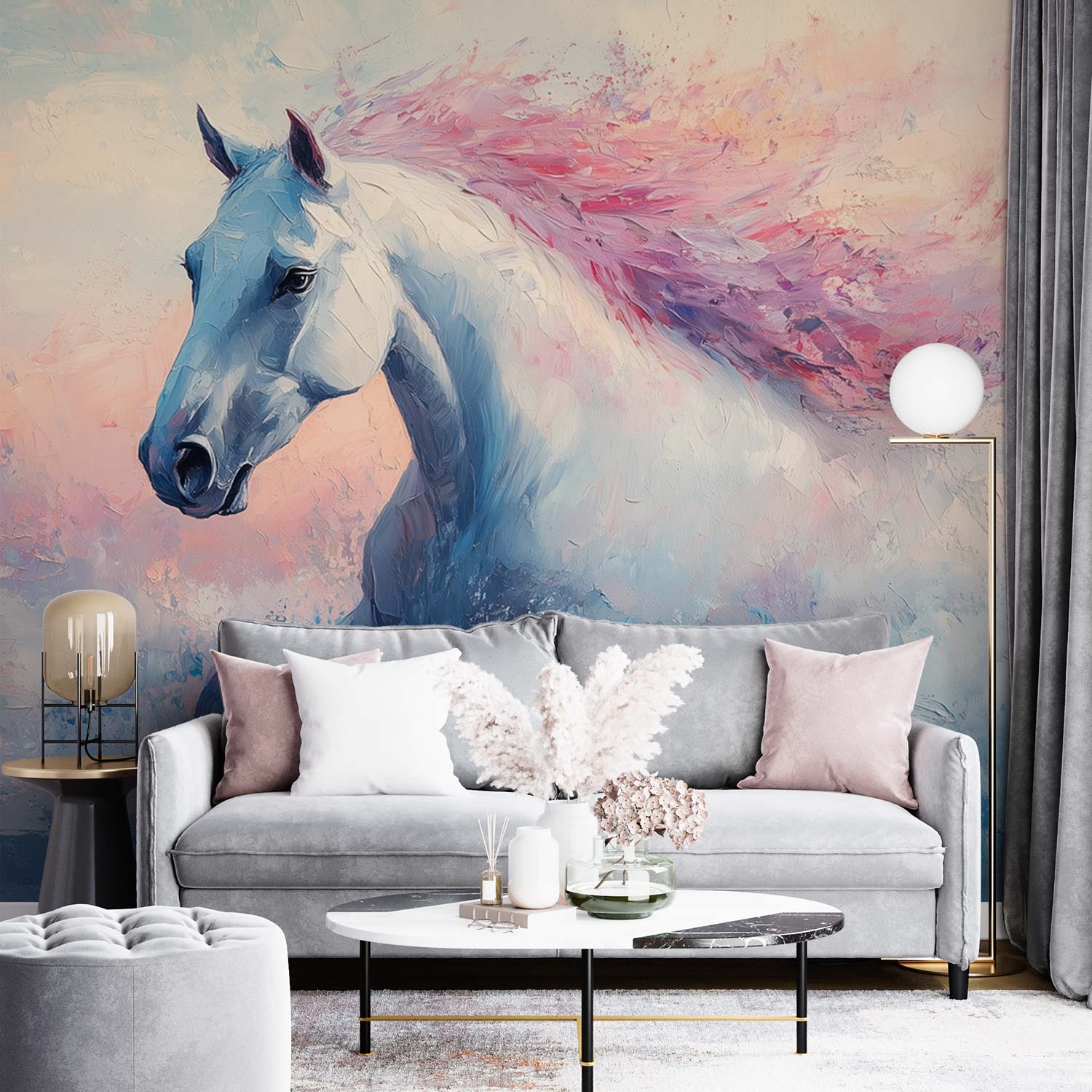 Terug naar collectie / Behang / Abstract behang / Wit Paard in Volle Galop behang