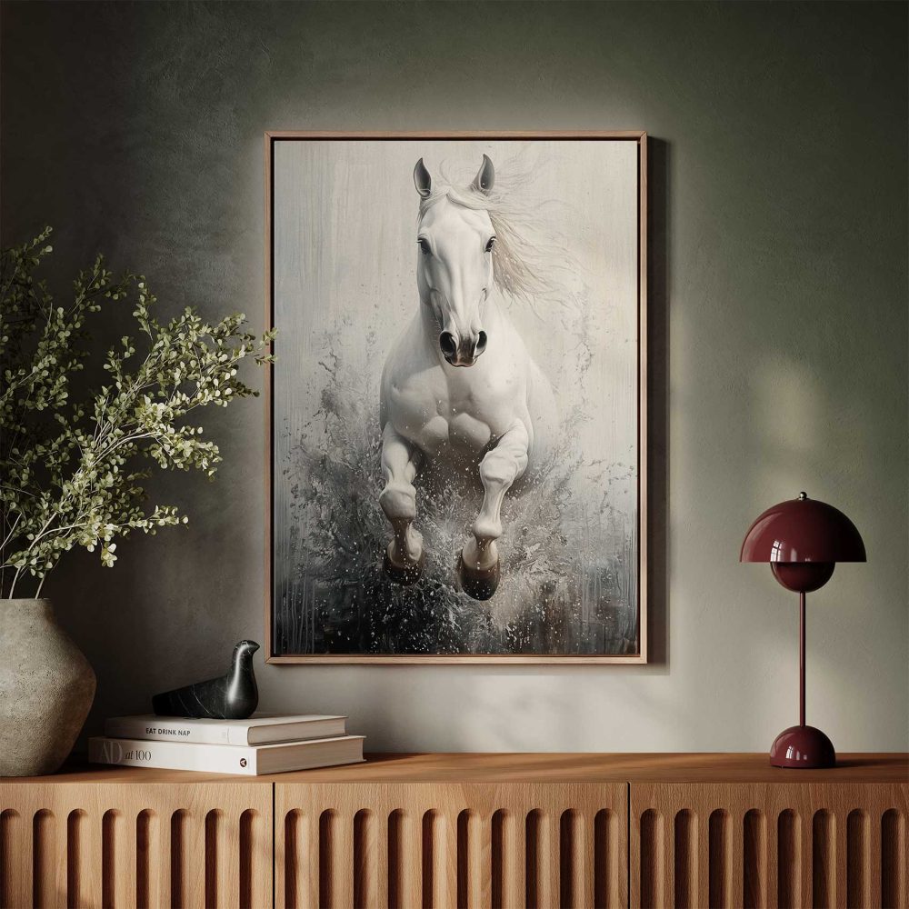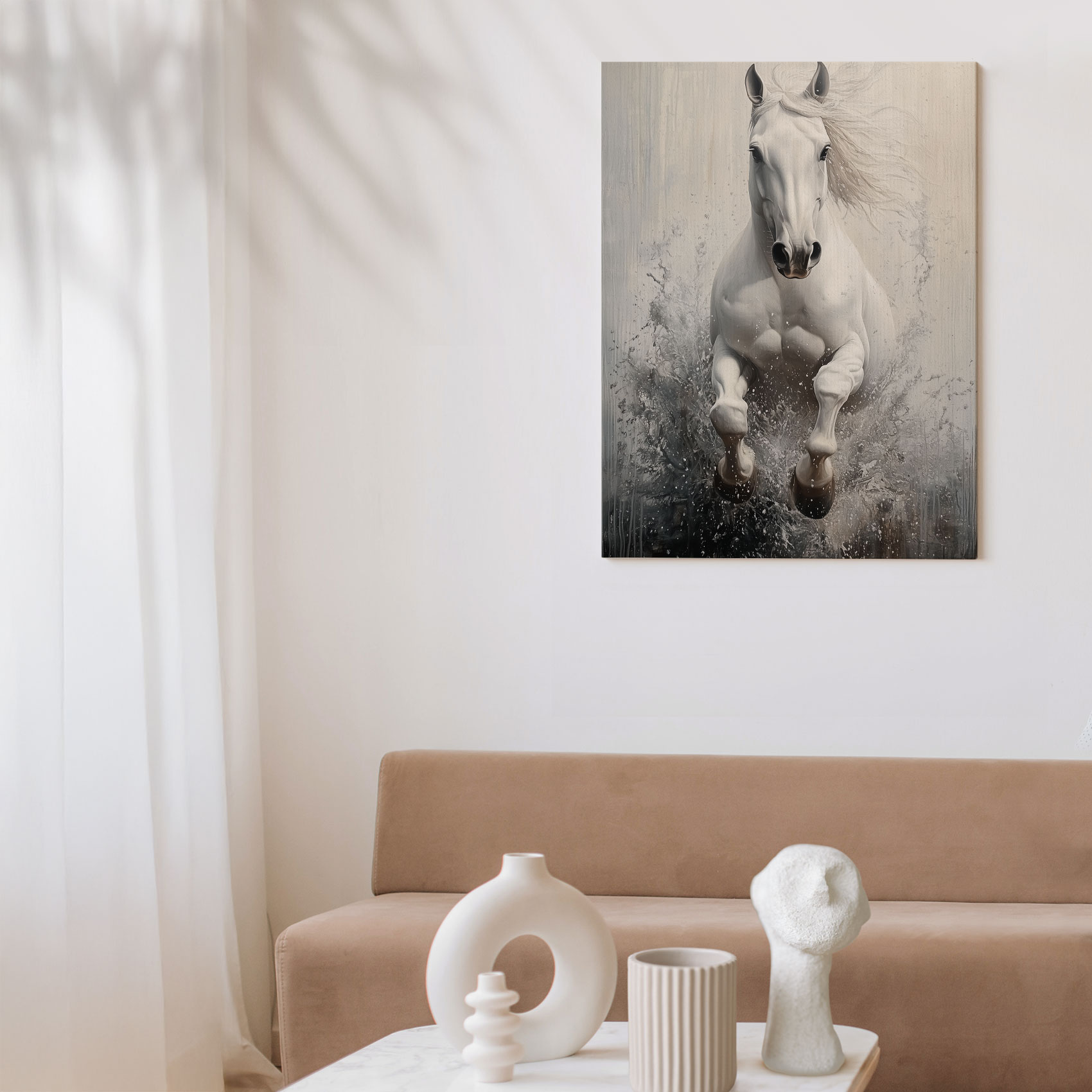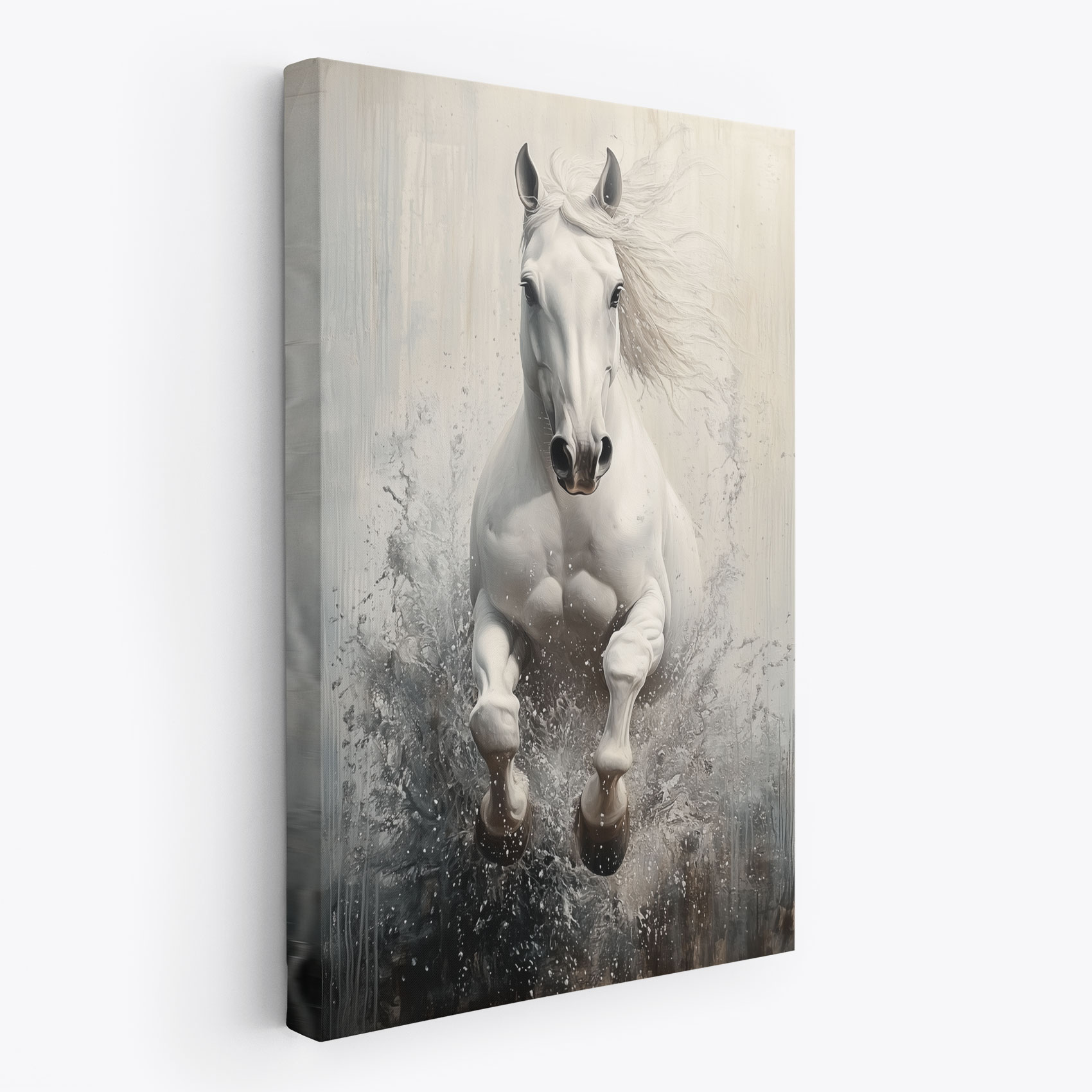 Terug naar collectie / Schilderijen / Abstract Schilderij / Wit Paard in Volle Sprong