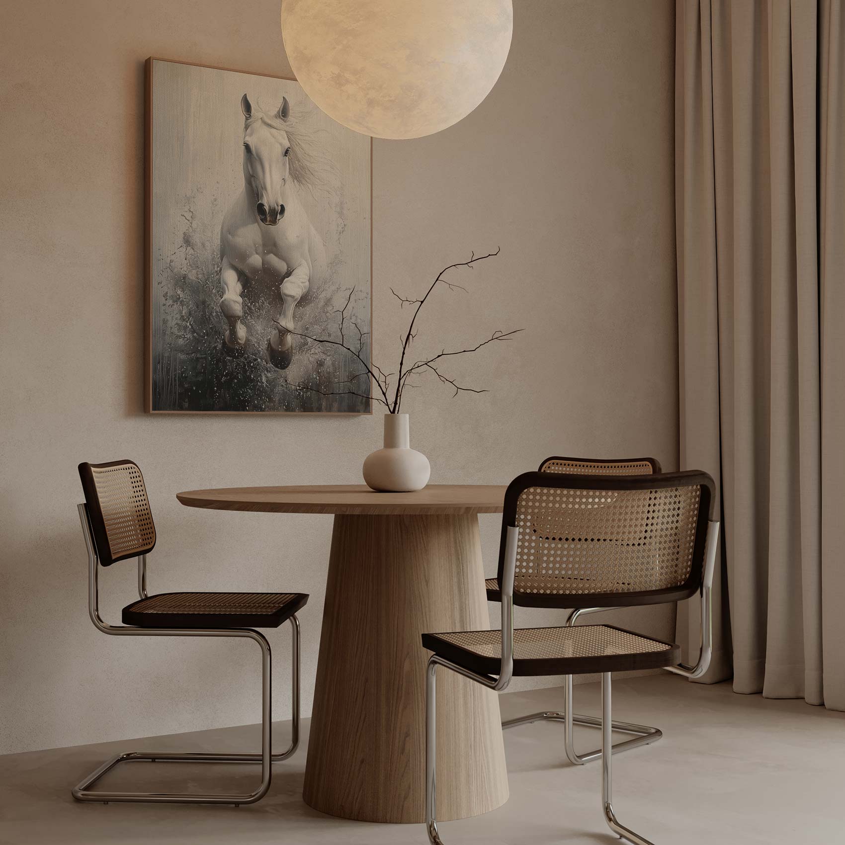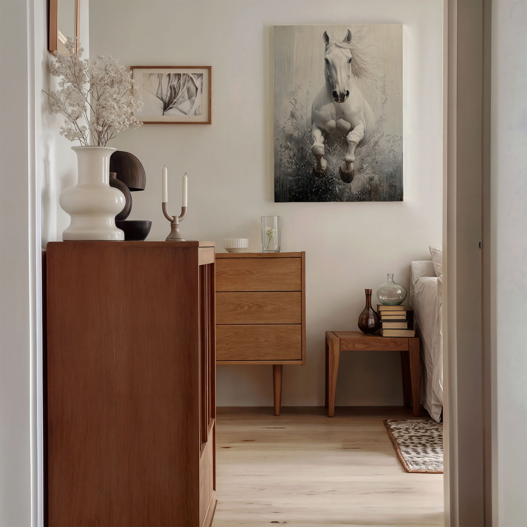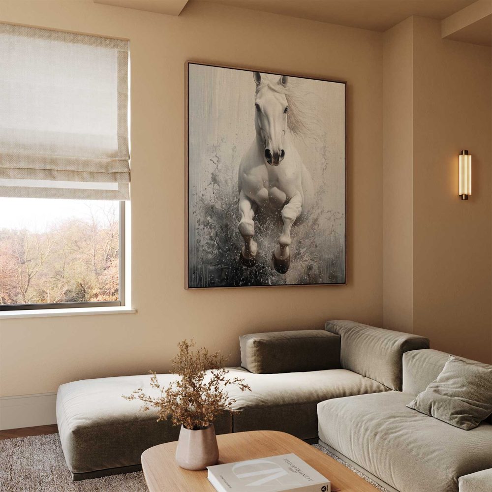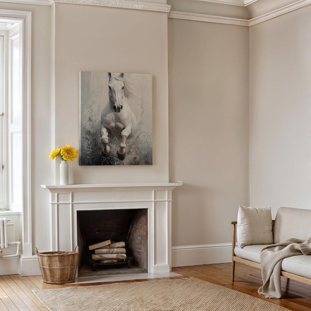 Terug naar collectie / Schilderijen / Abstract Schilderij / Wit Paard in Volle Sprong