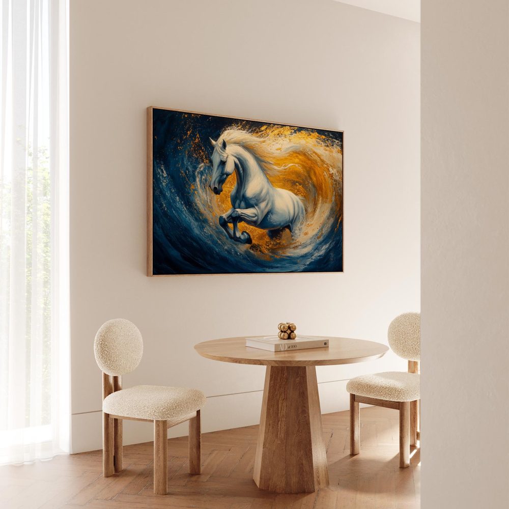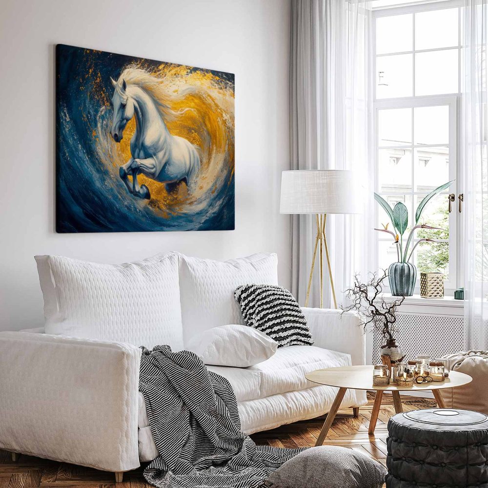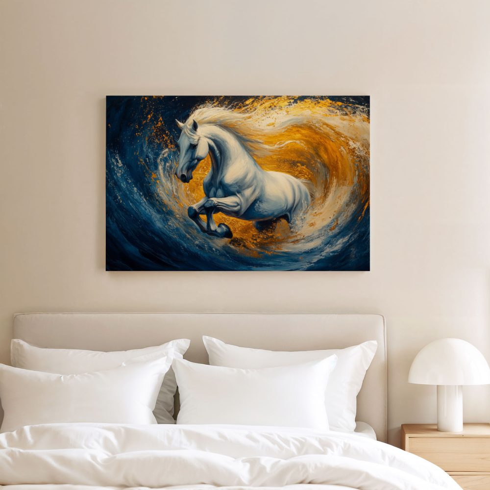 Wit paard in woeste zee