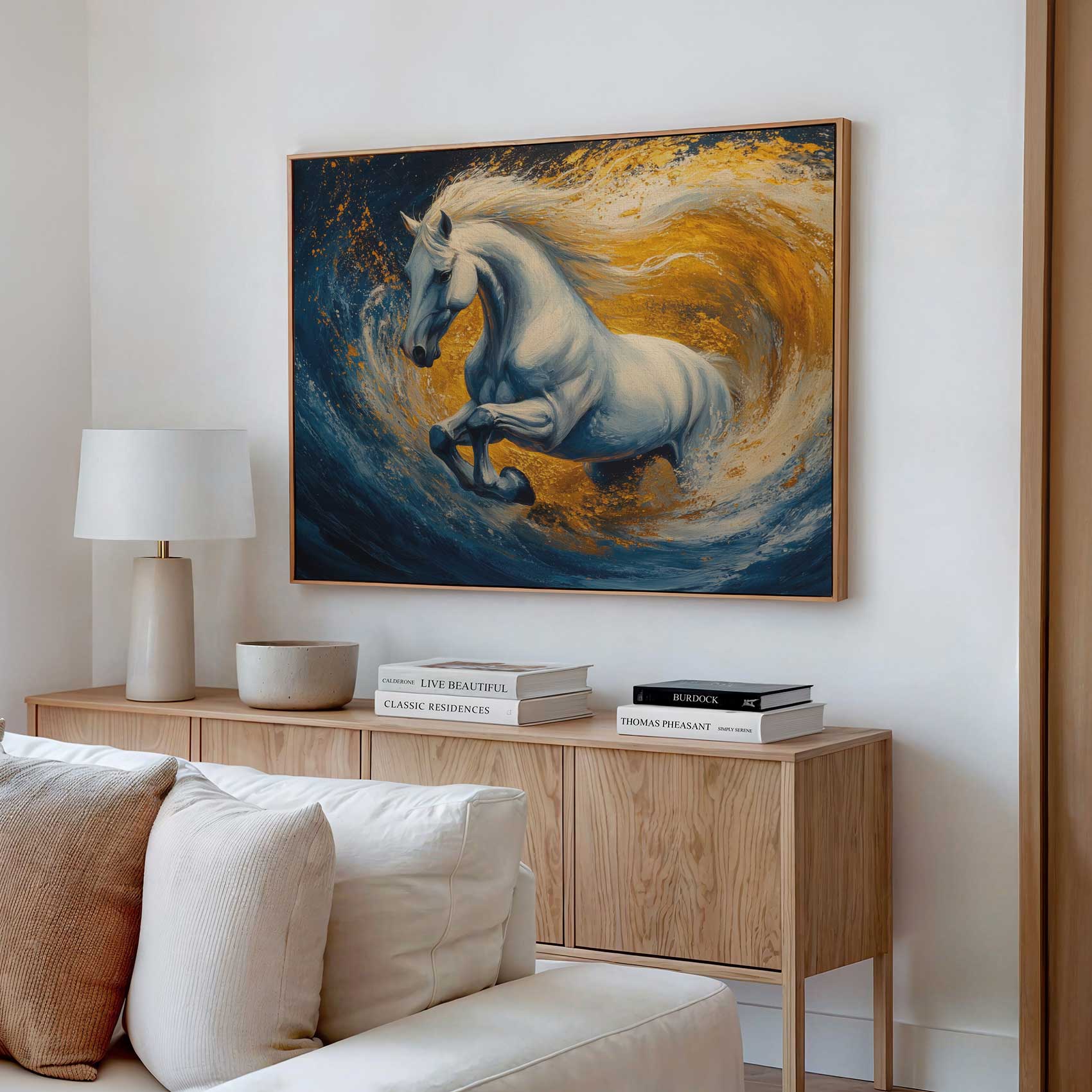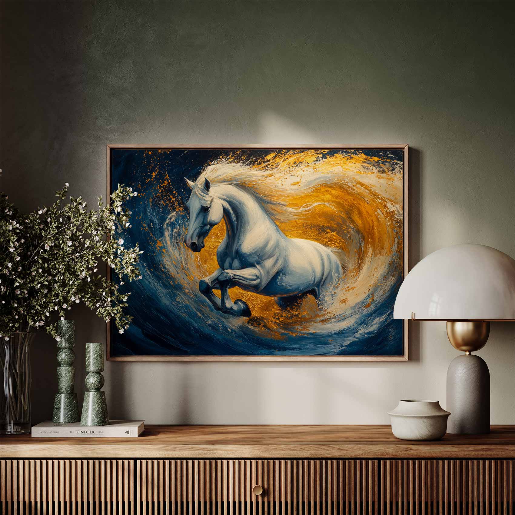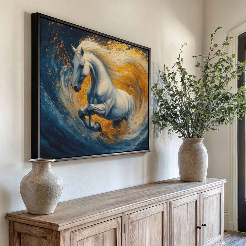 Wit paard in woeste zee