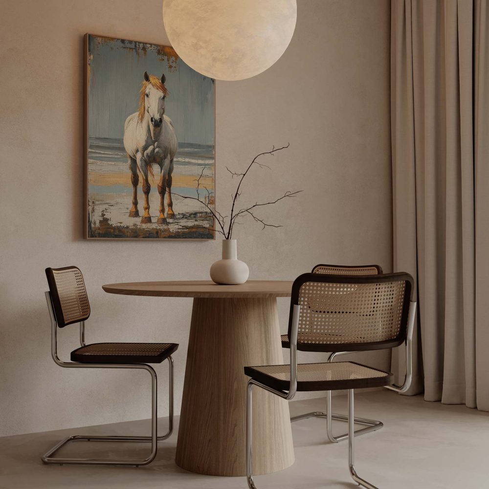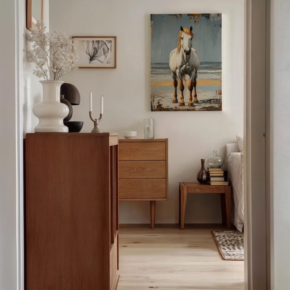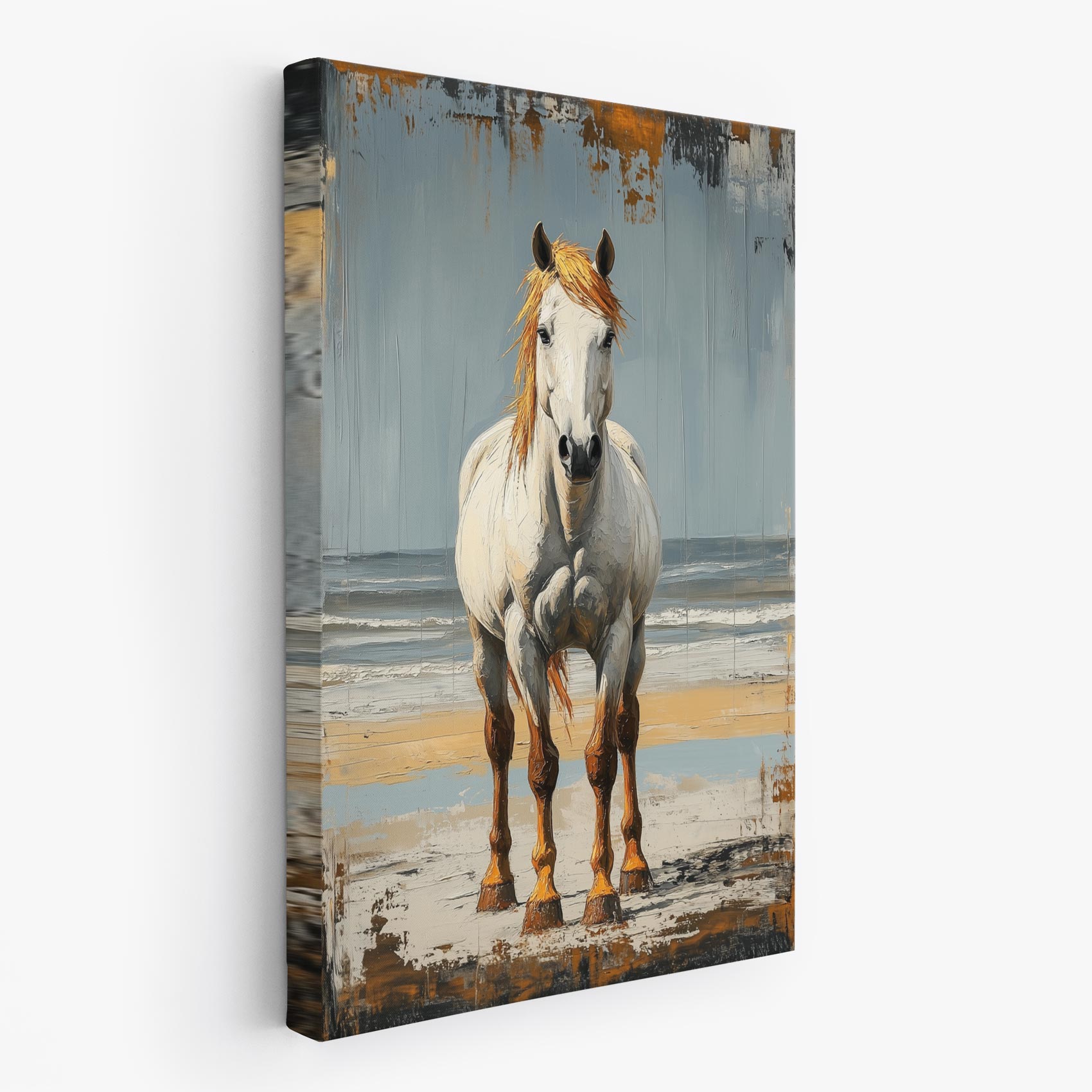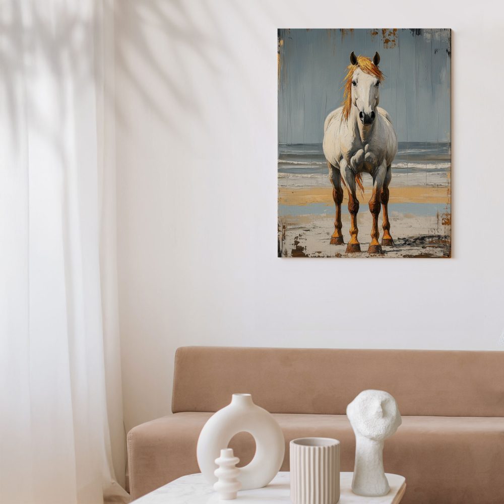 Wit paard op strand